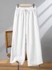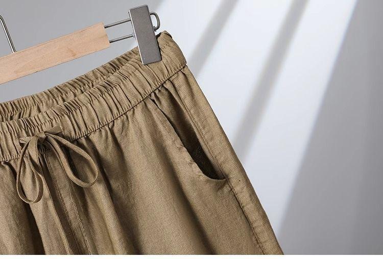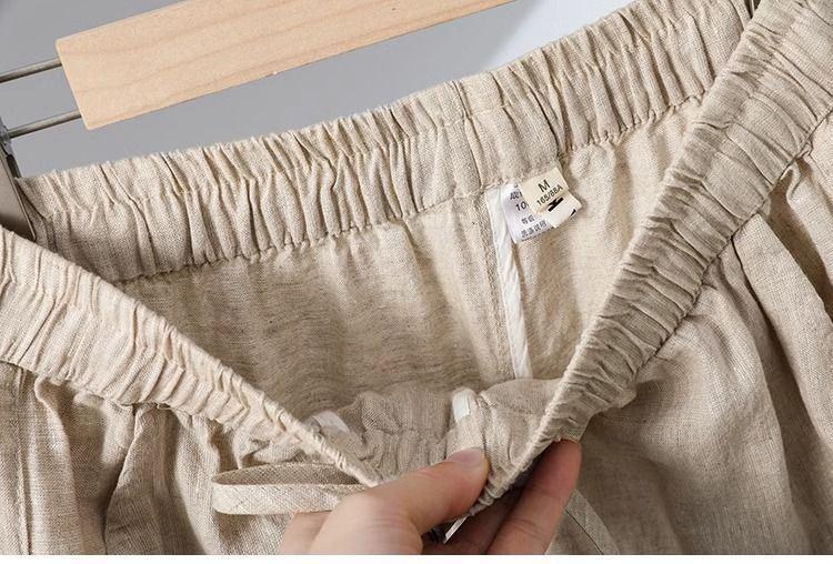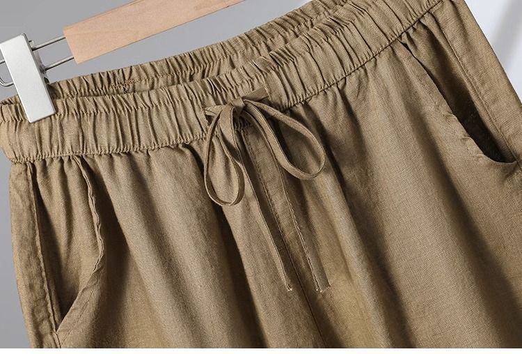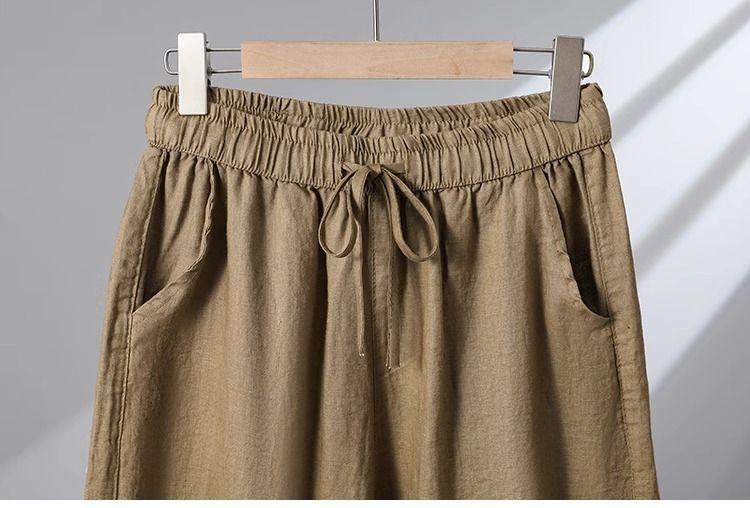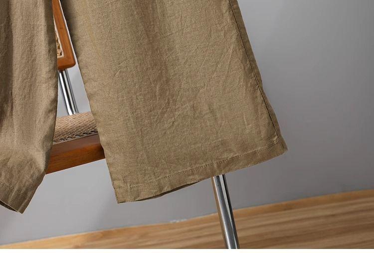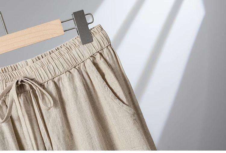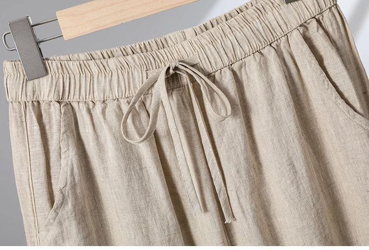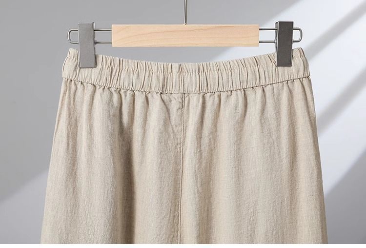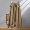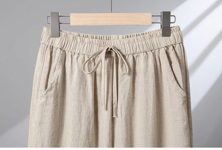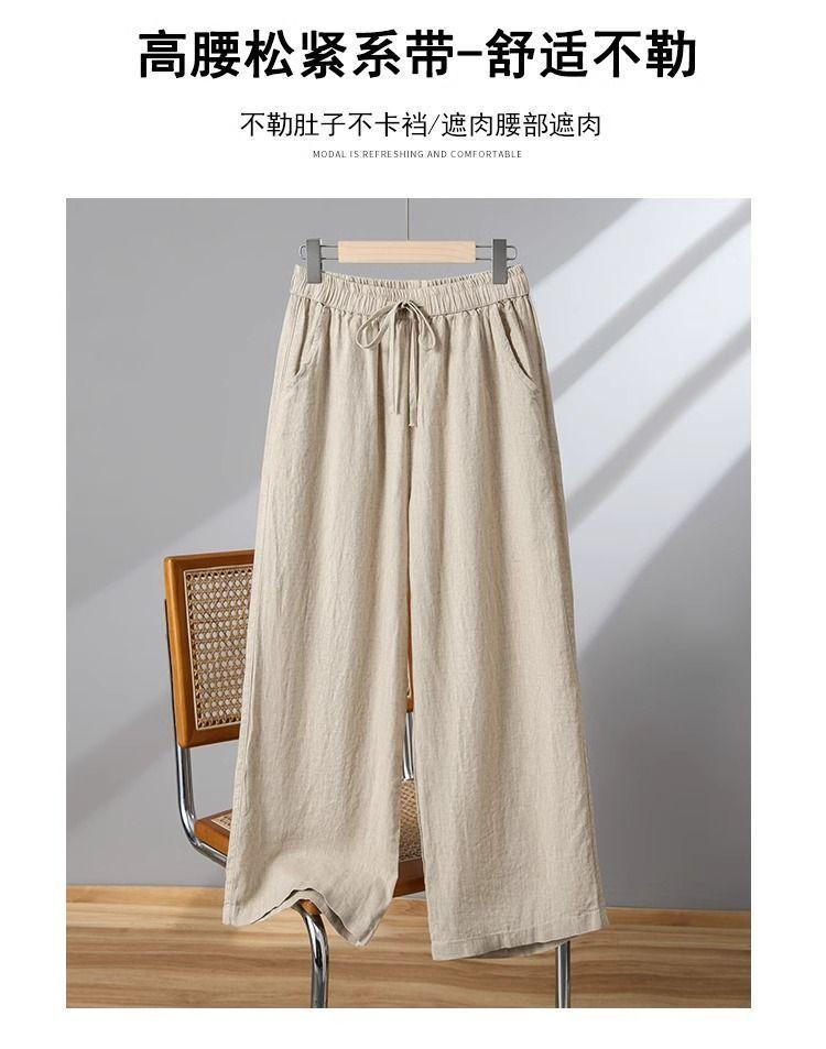 Pantalones retro de algodón y lino 2025 nuevos de nueve puntos de pierna ancha para mujer, verano, nuevos pantalones casuales sueltos, pantalones casuales rectos