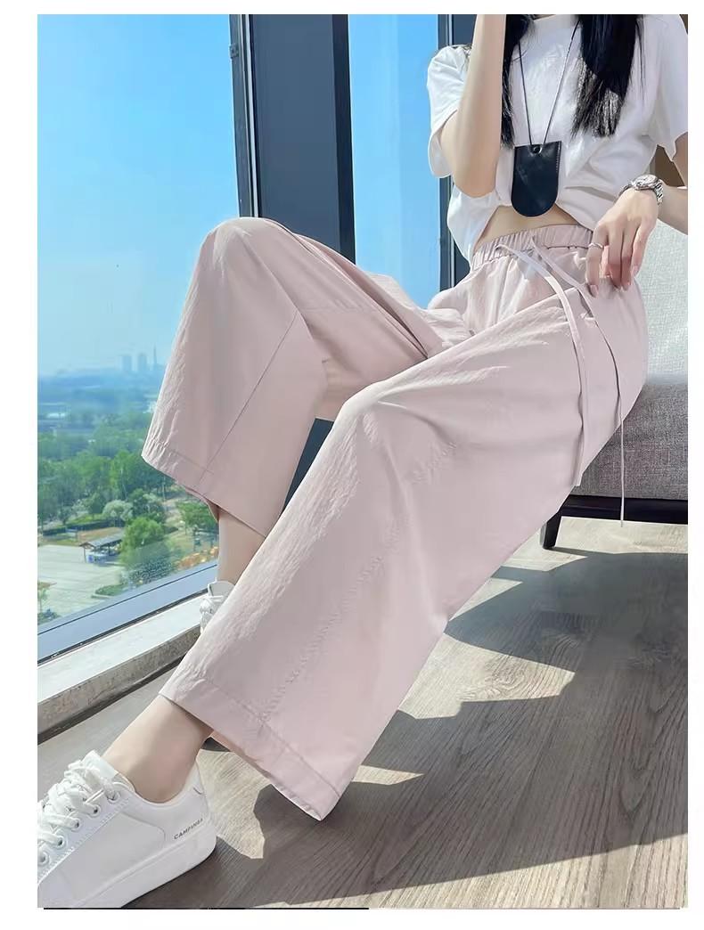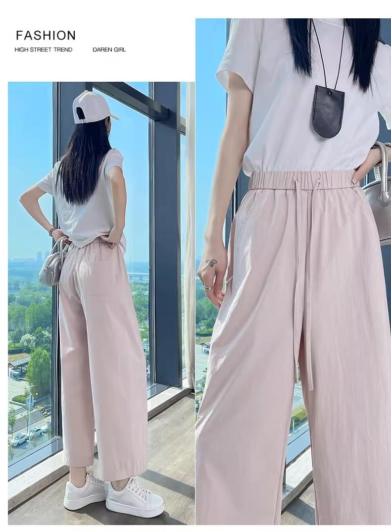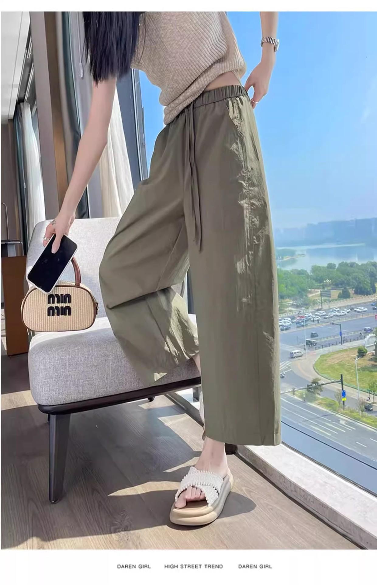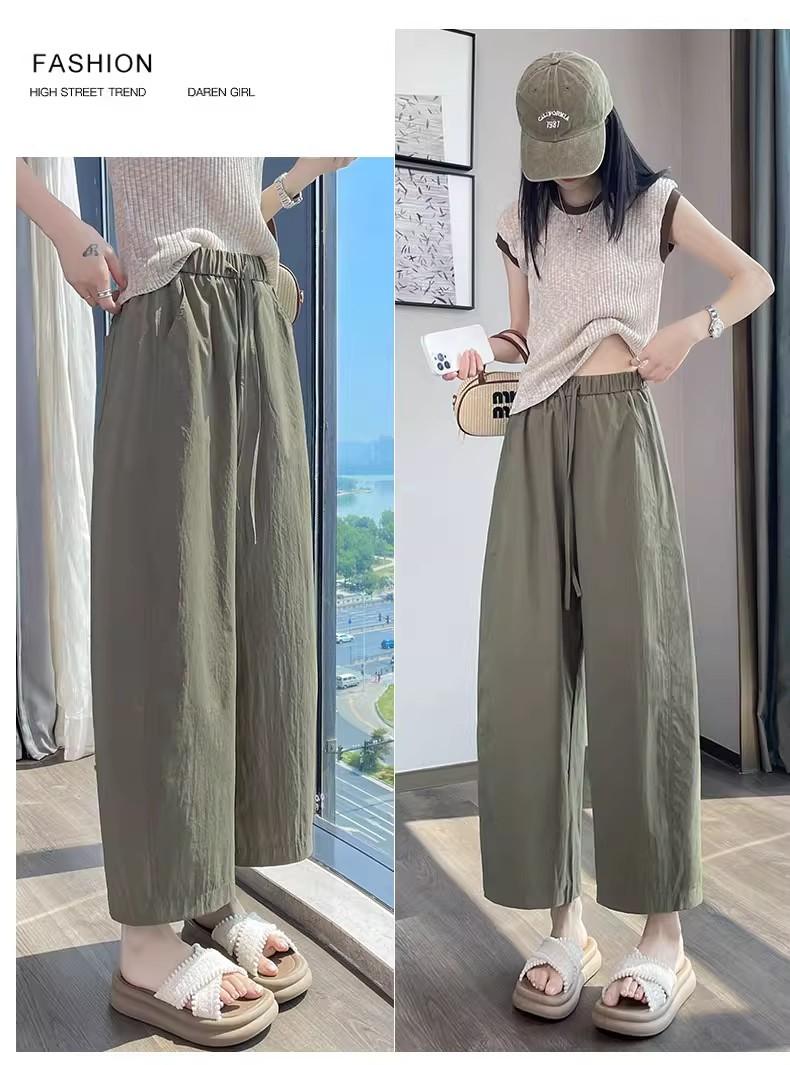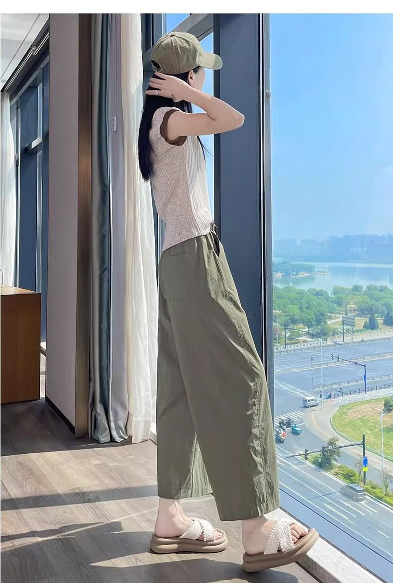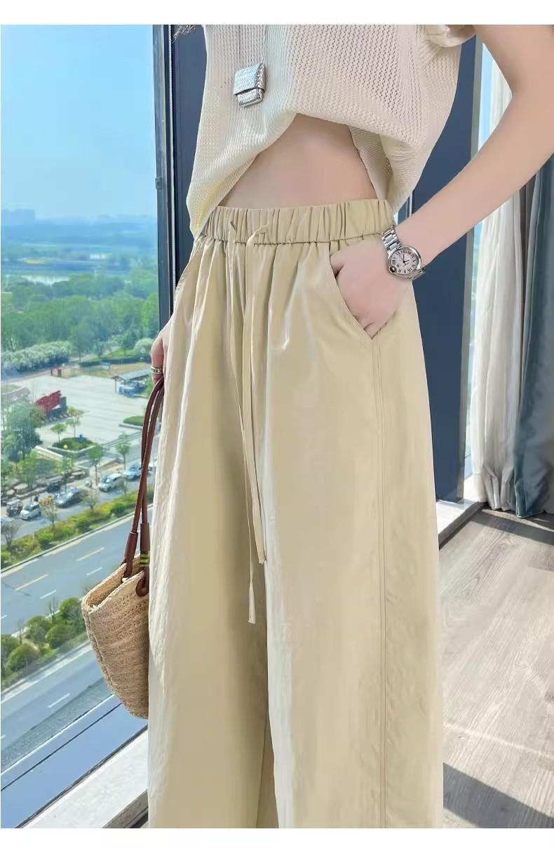 Pantalones de Seda de Hielo para Mujer, Pantalones Deportivos Casuales Finos de Verano de Secado Rápido, Pantalones Sueltos Rectos Estrechos Recortados de Pierna Ancha