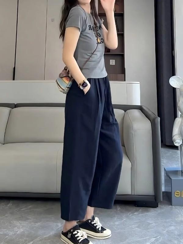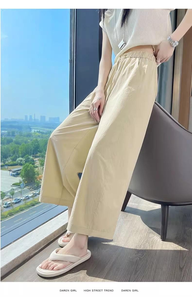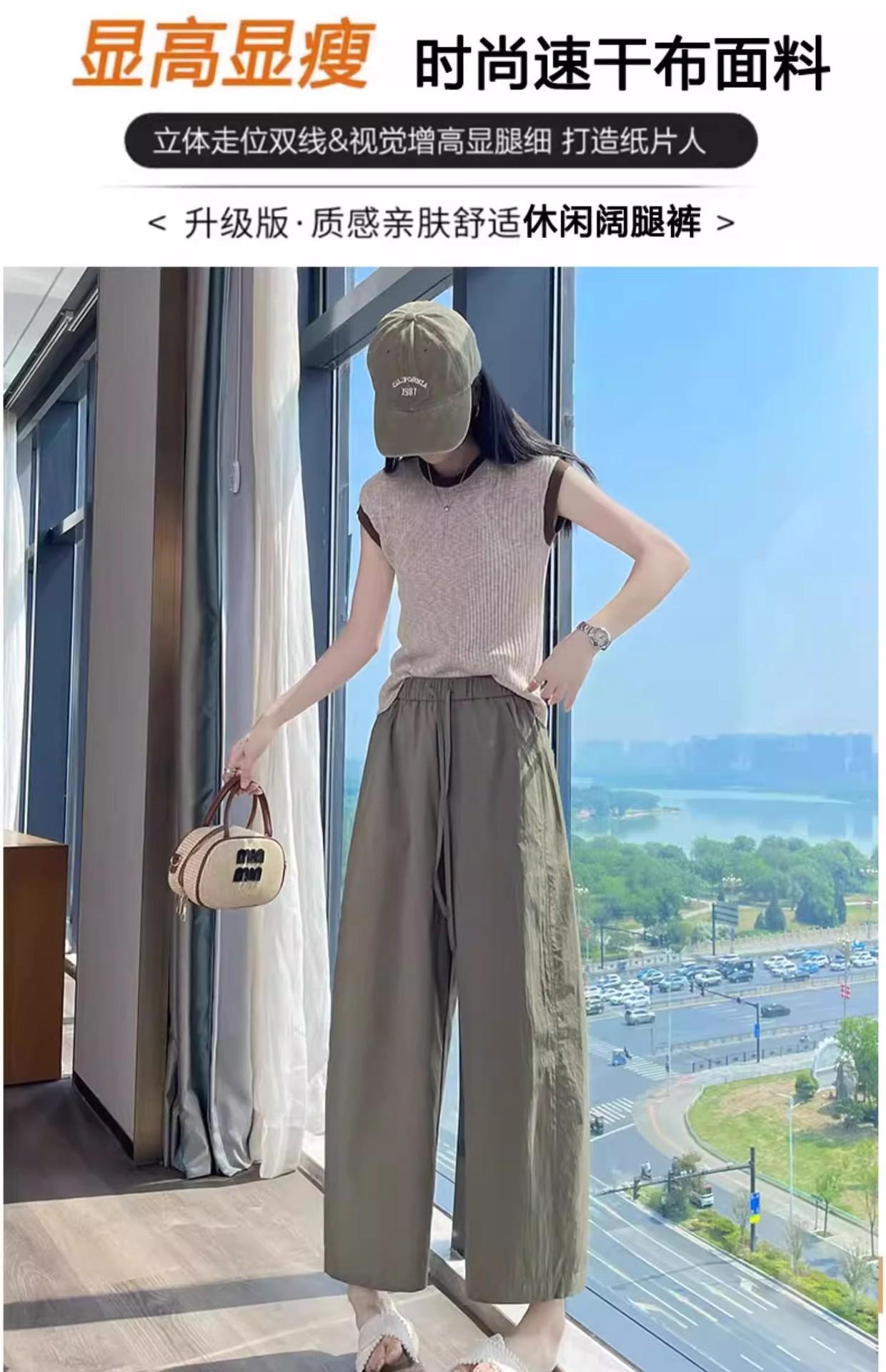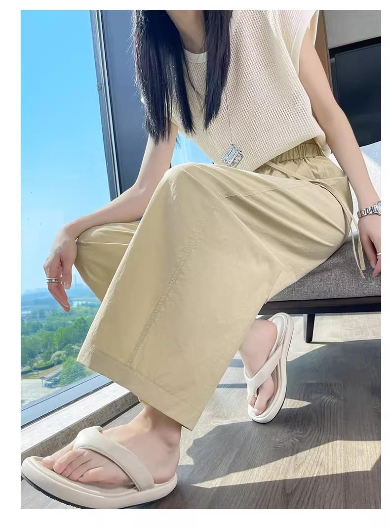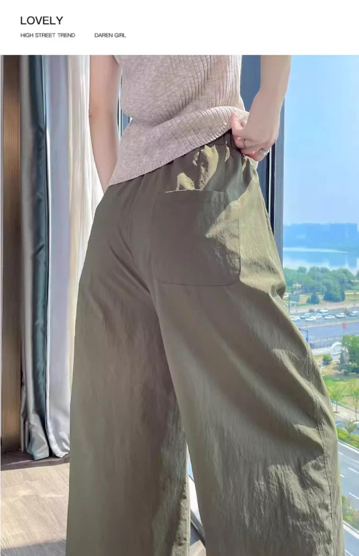 Pantalones de Seda de Hielo para Mujer, Pantalones Deportivos Casuales Finos de Verano de Secado Rápido, Pantalones Sueltos Rectos Estrechos Recortados de Pierna Ancha