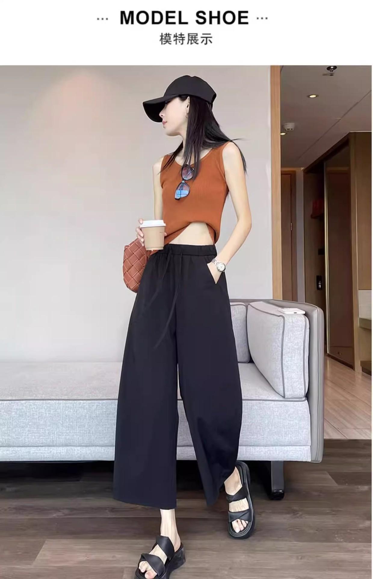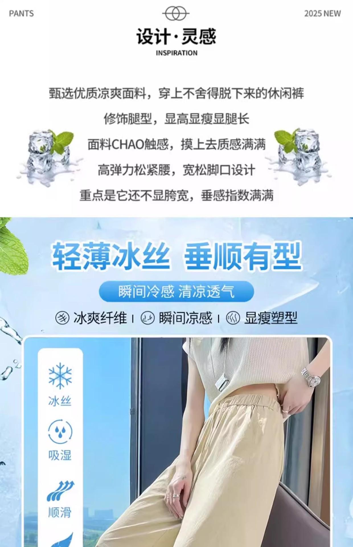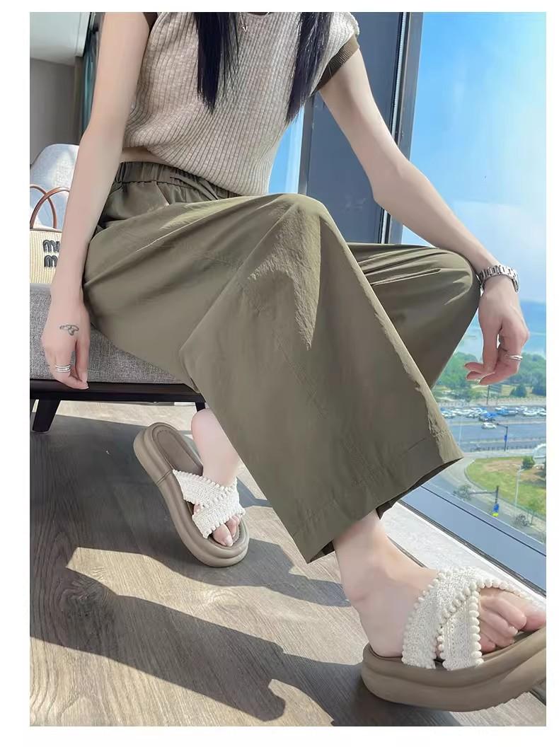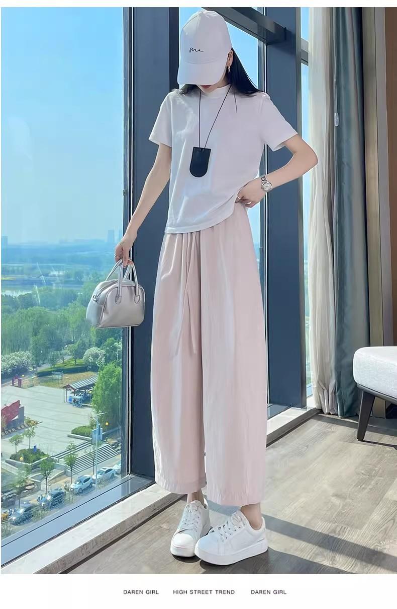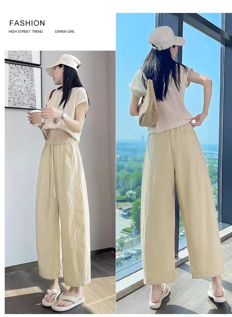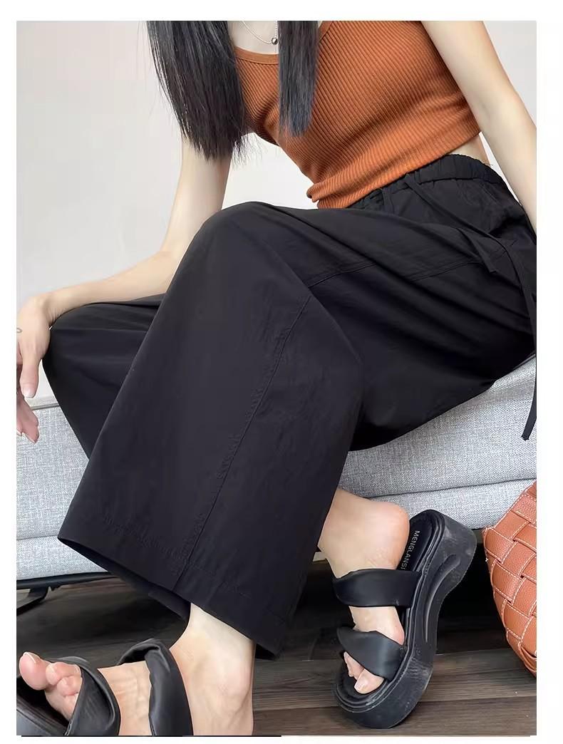 Pantalones de Seda de Hielo para Mujer, Pantalones Deportivos Casuales Finos de Verano de Secado Rápido, Pantalones Sueltos Rectos Estrechos Recortados de Pierna Ancha