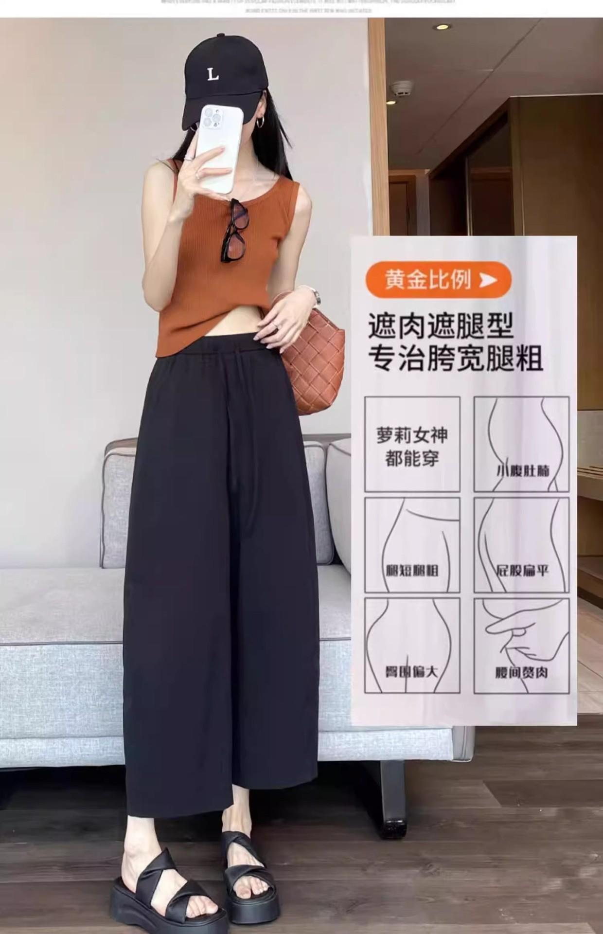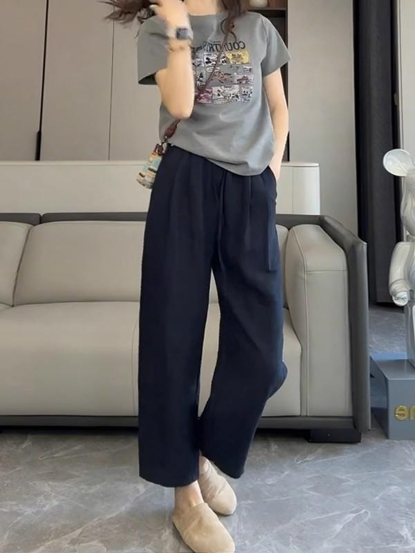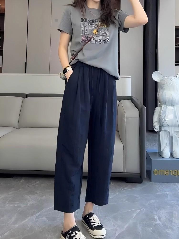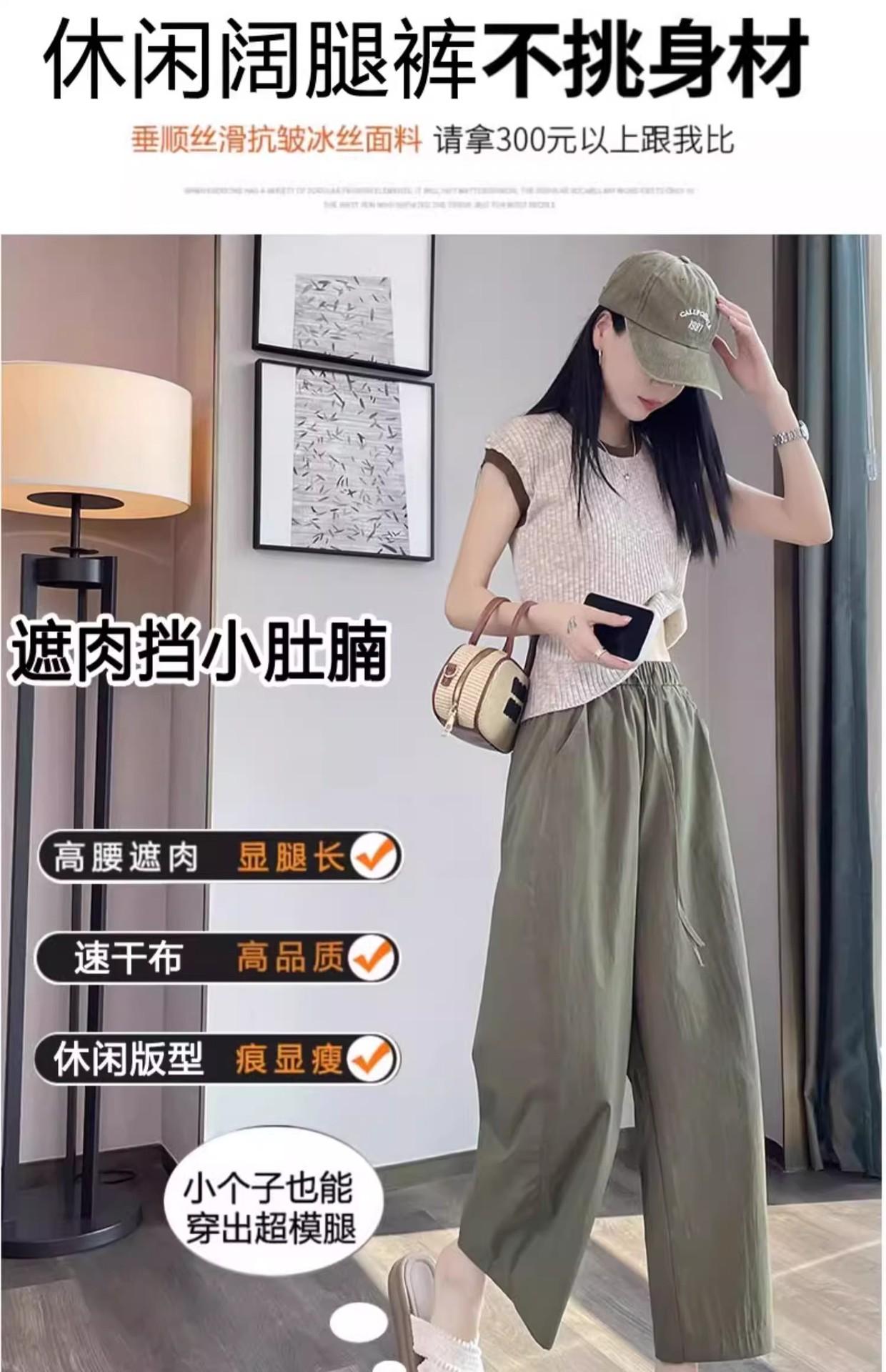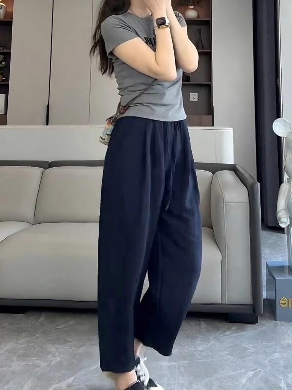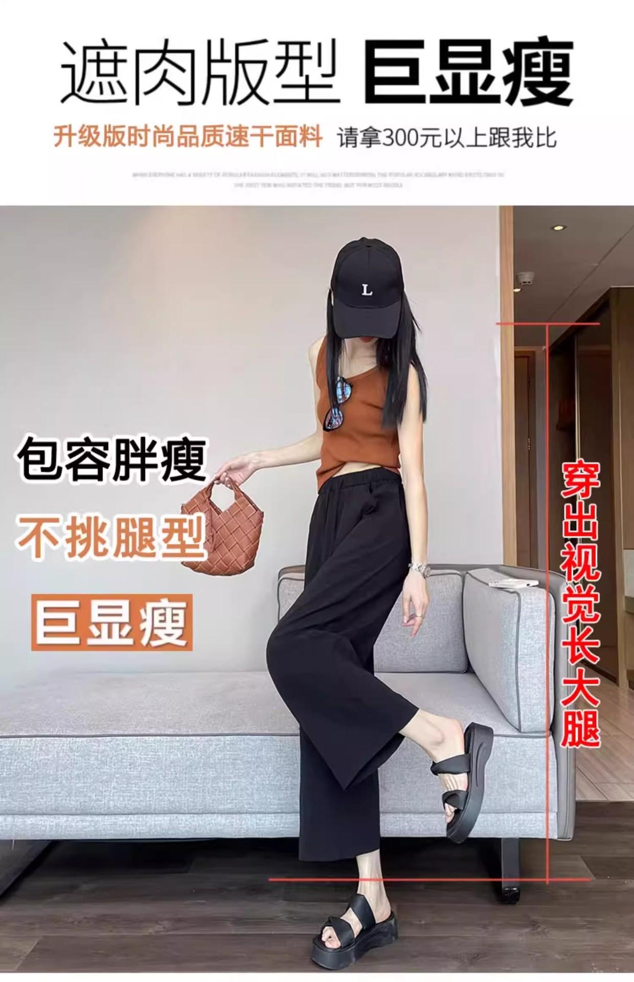 Pantalones de Seda de Hielo para Mujer, Pantalones Deportivos Casuales Finos de Verano de Secado Rápido, Pantalones Sueltos Rectos Estrechos Recortados de Pierna Ancha