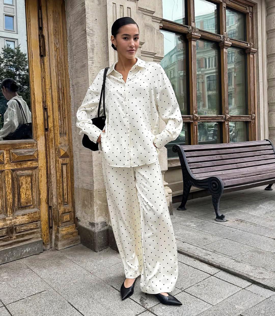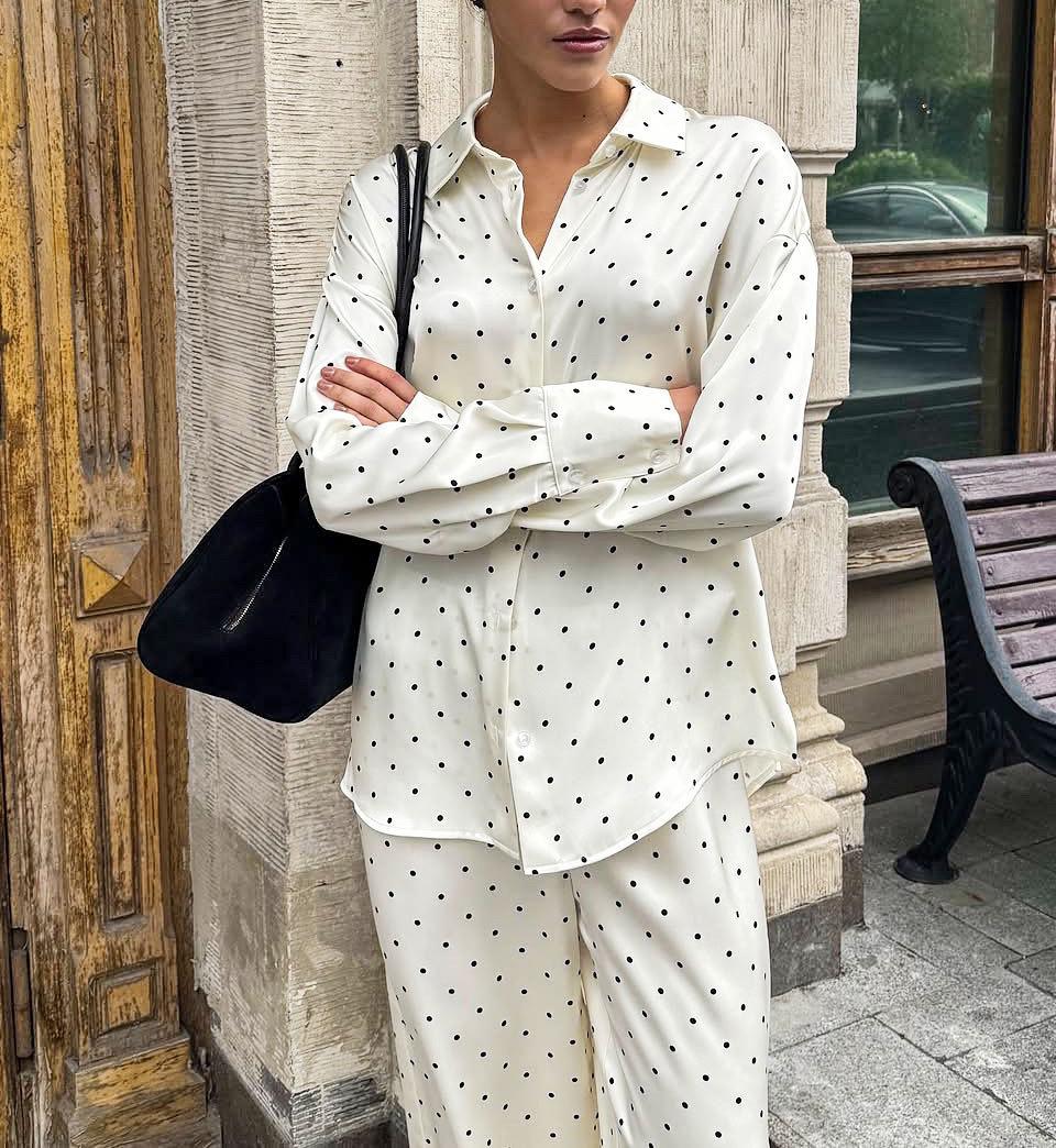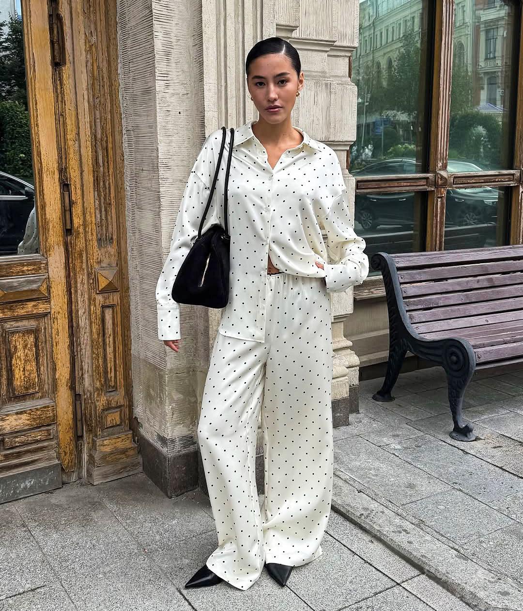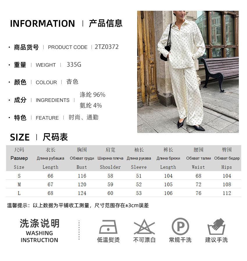 Nuevo Otoño/Invierno Simple Versátil Lunares Manga Larga Pantalón Pierna Ancha Set Sentido del Diseño Temperamento Moda 2025 Desplazamiento Transfronterizo