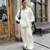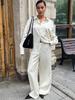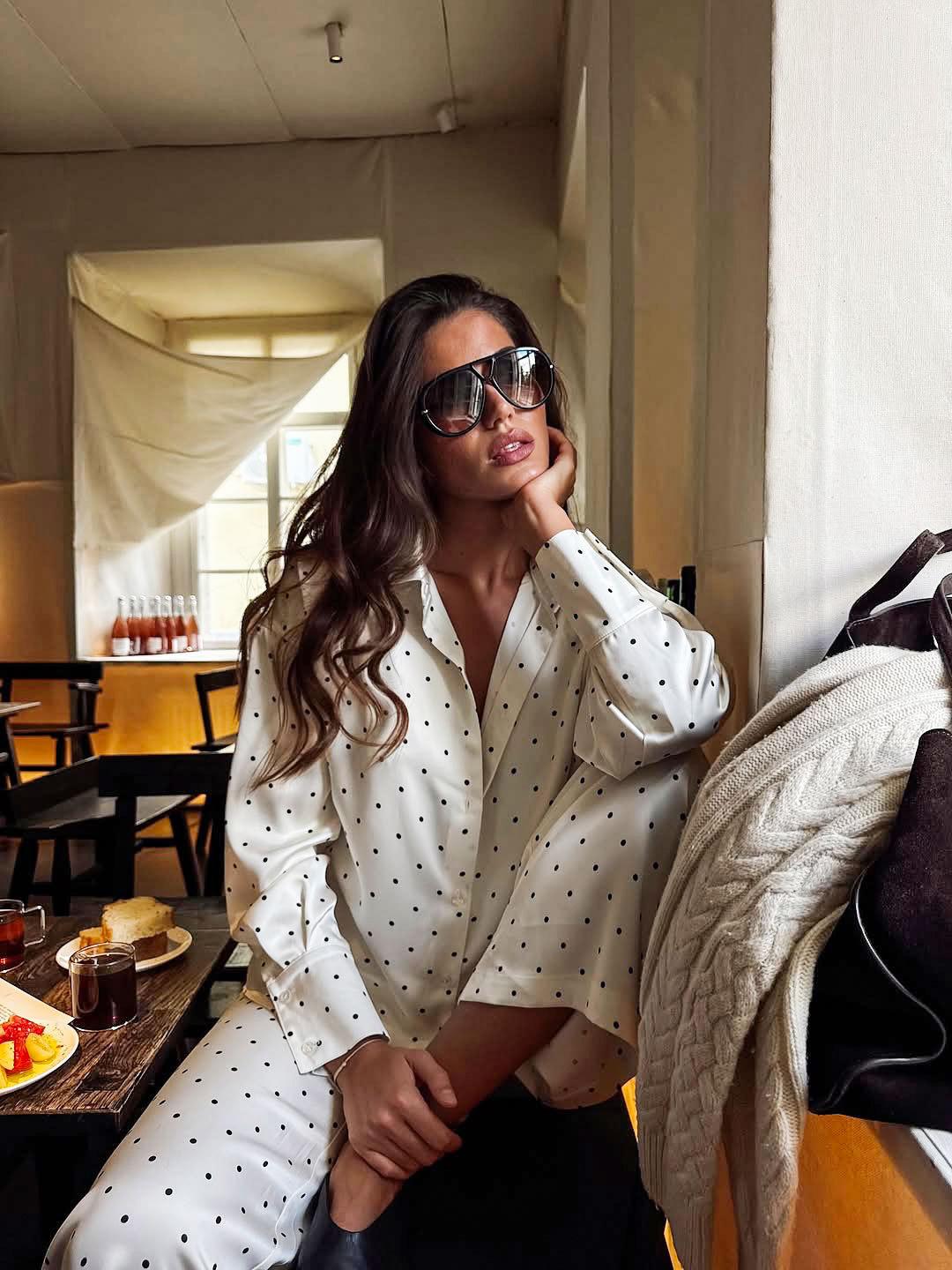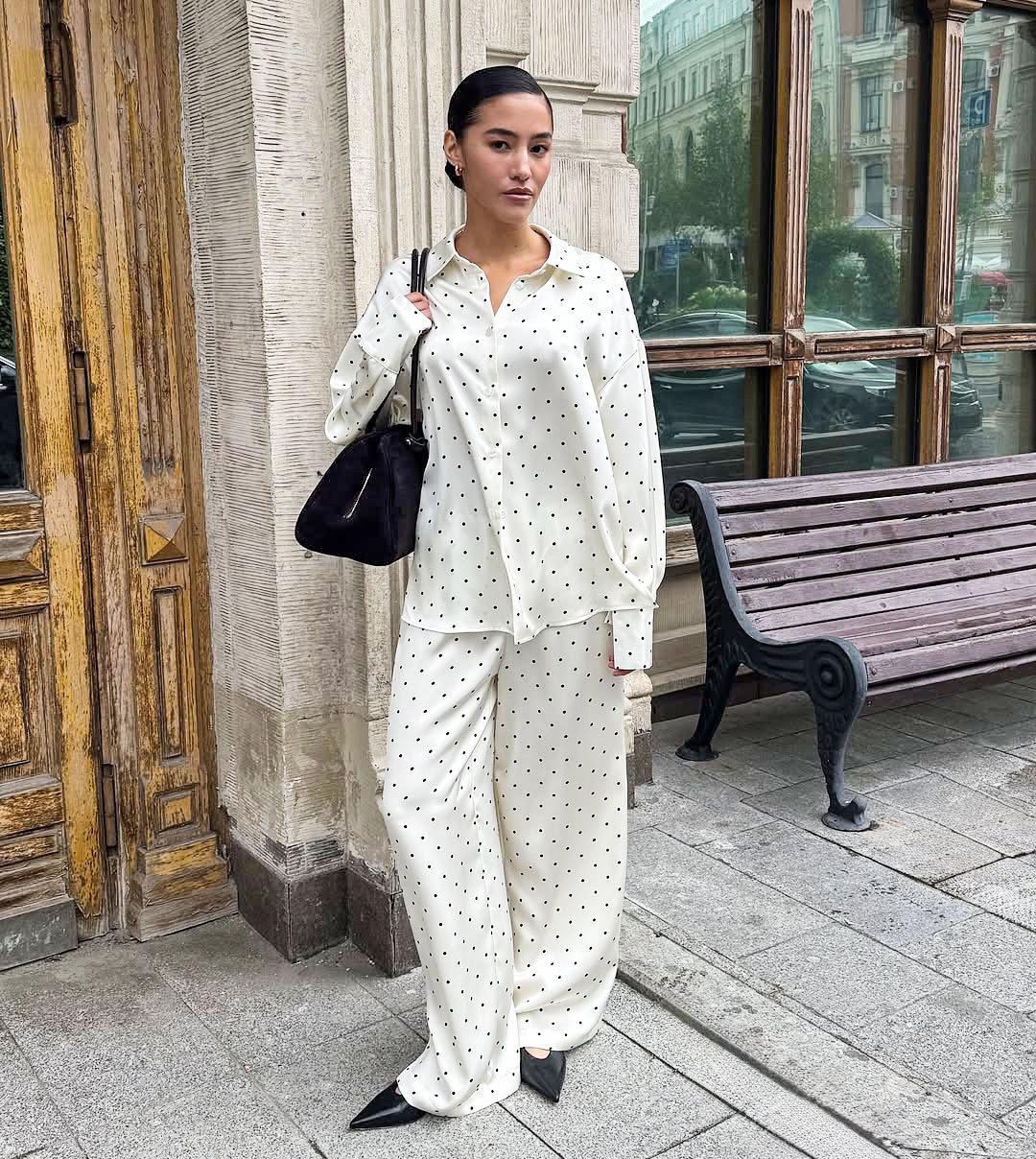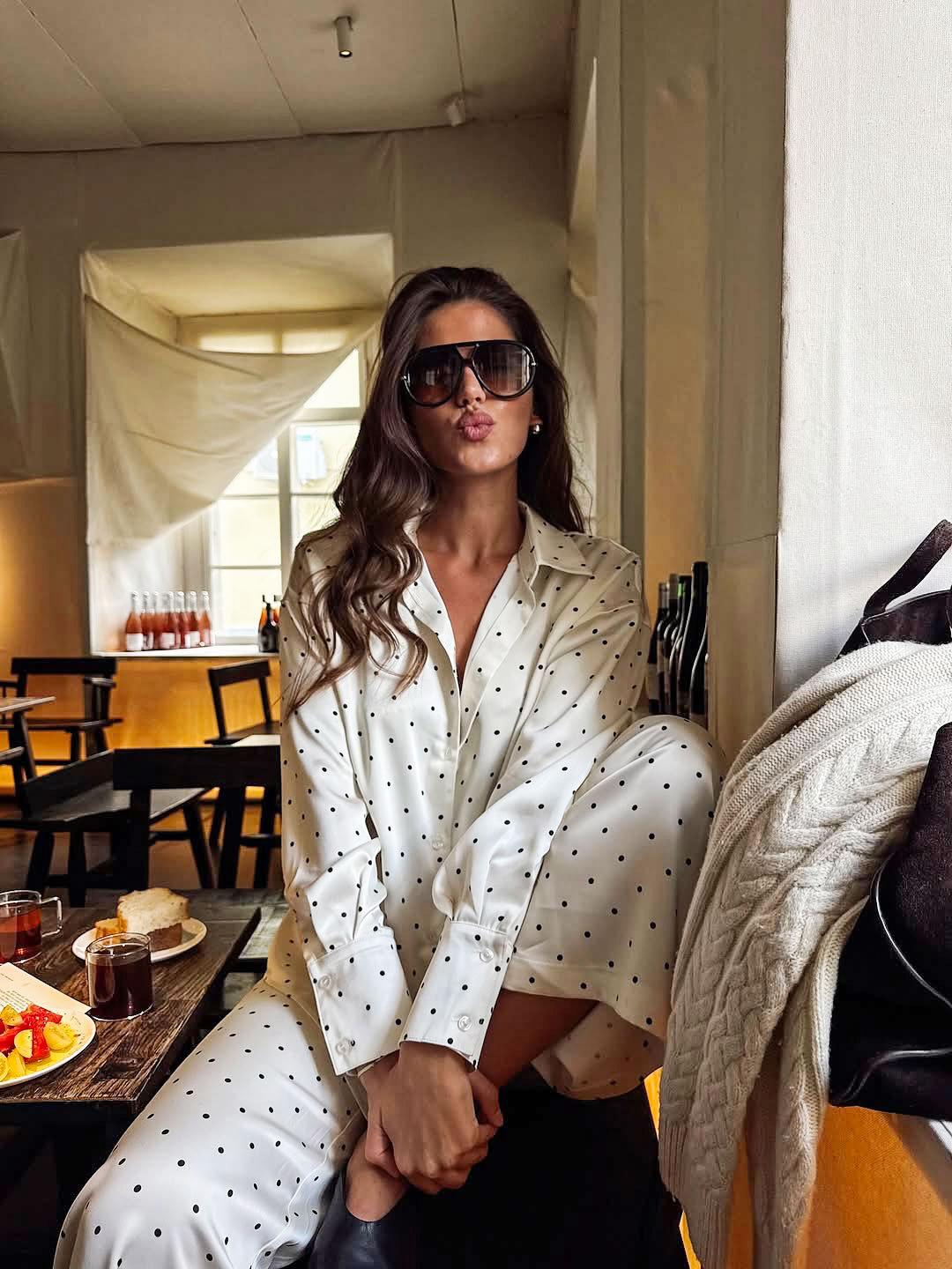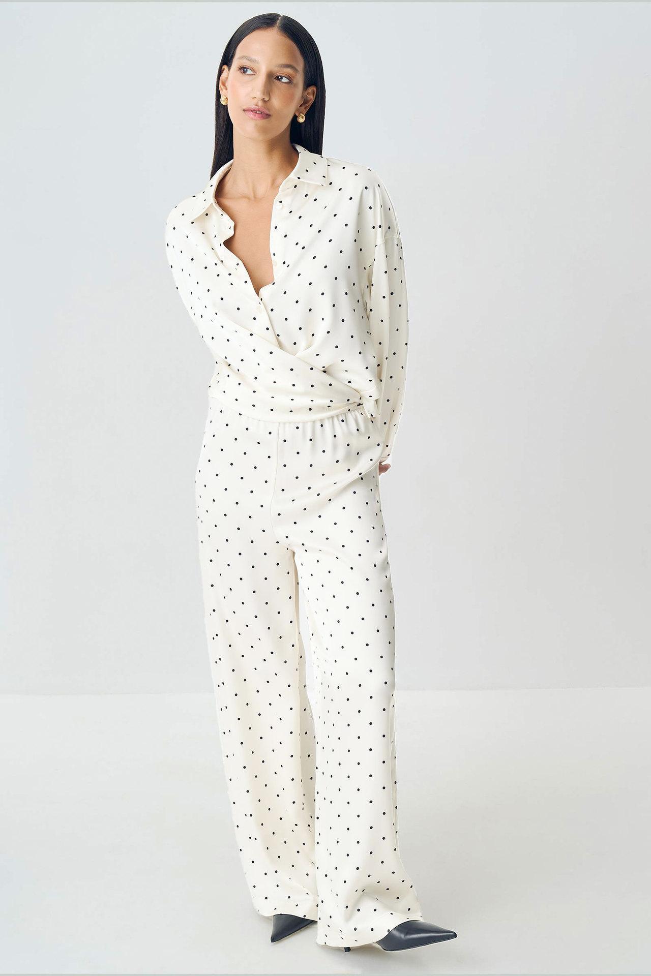 Nuevo Otoño/Invierno Simple Versátil Lunares Manga Larga Pantalón Pierna Ancha Set Sentido del Diseño Temperamento Moda 2025 Desplazamiento Transfronterizo