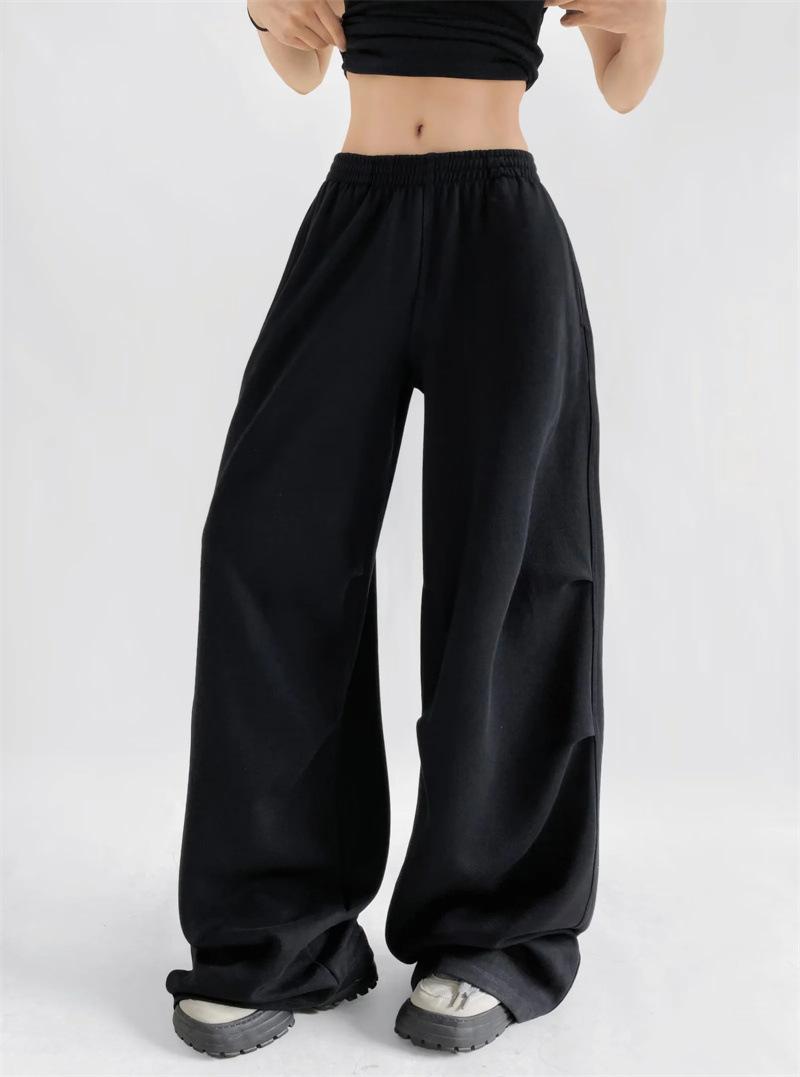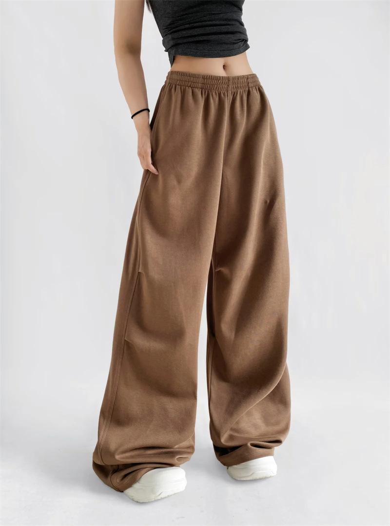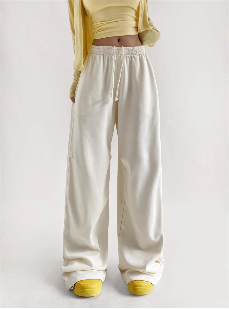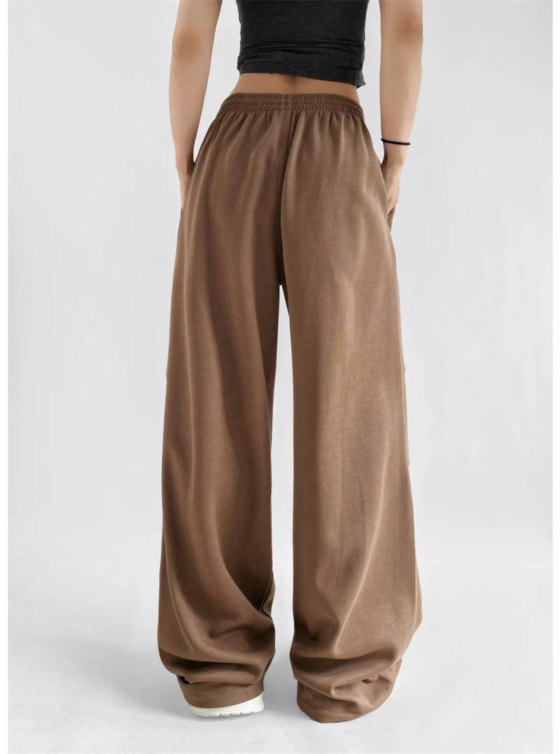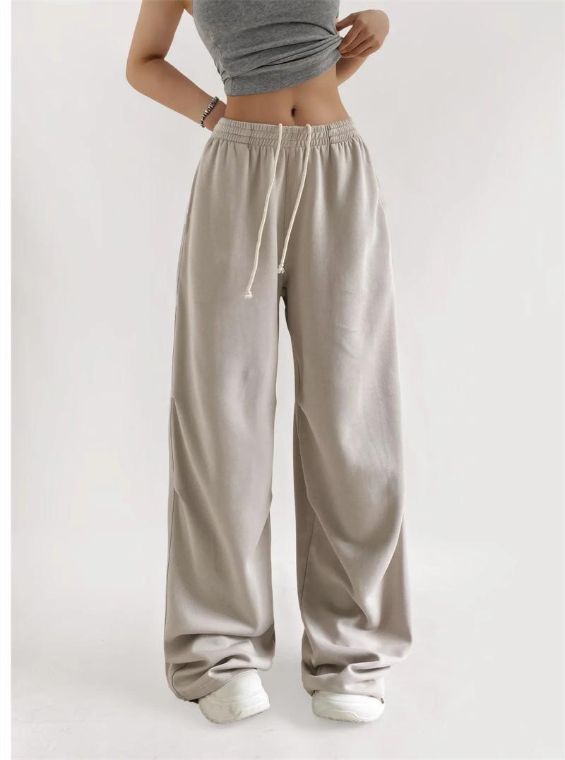 Pantalones Deportivos Largos de Pierna Ancha de Cintura Alta Estilo Holgado Otoño Nuevo Cintura Elástica Cordón Ajustable Holgados Adelgazantes Casuales de Pierna Recta Mujer