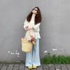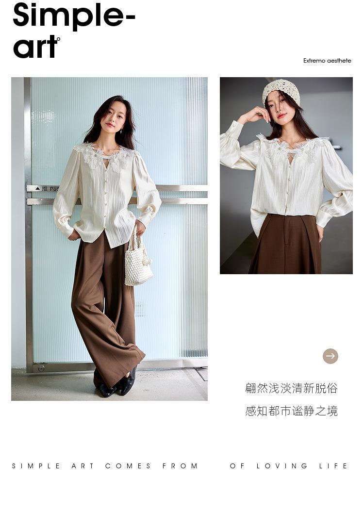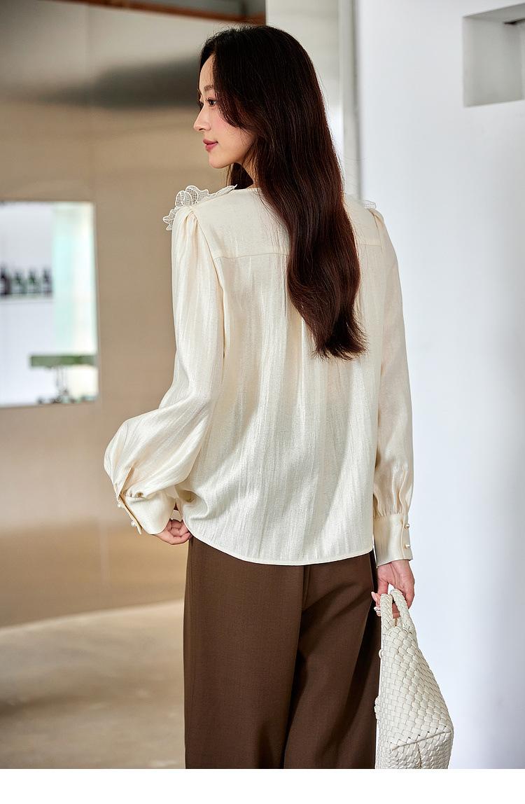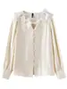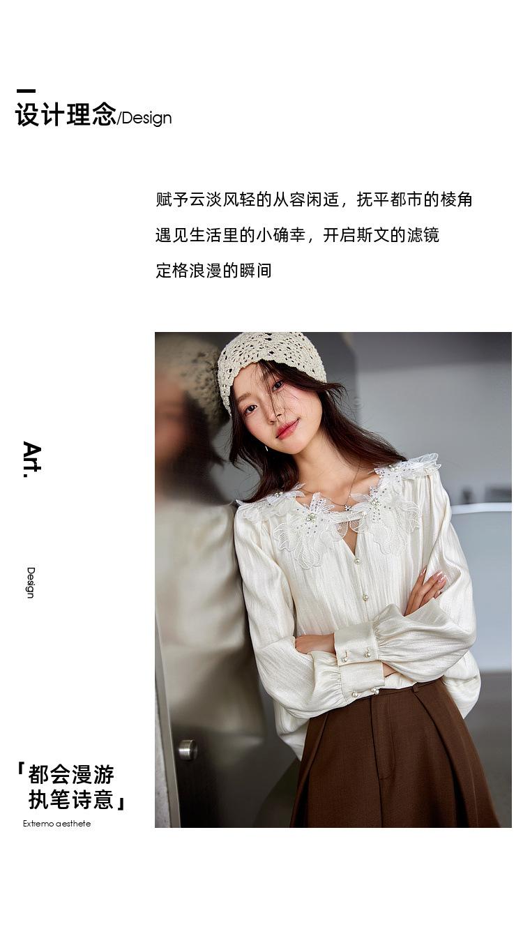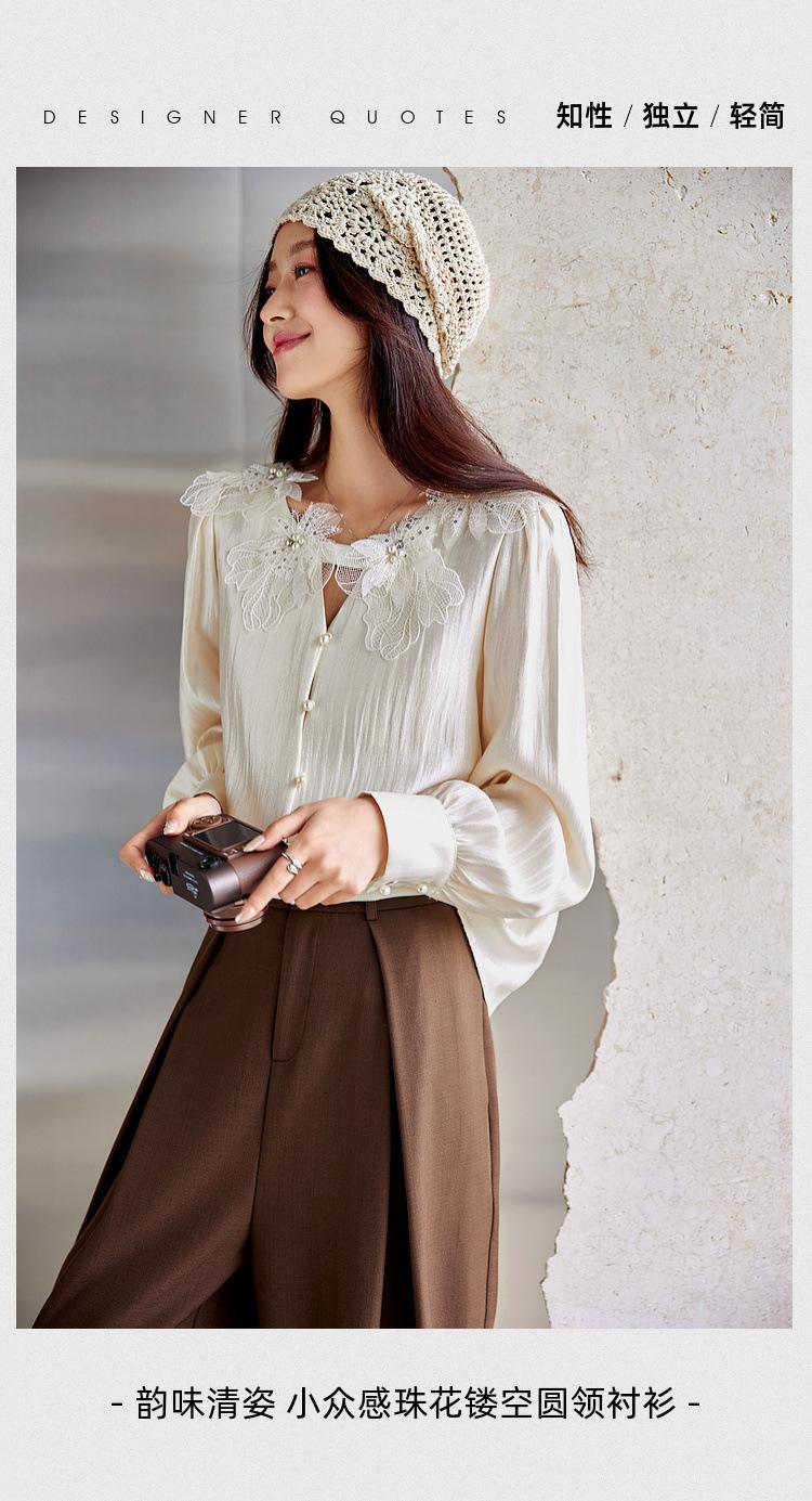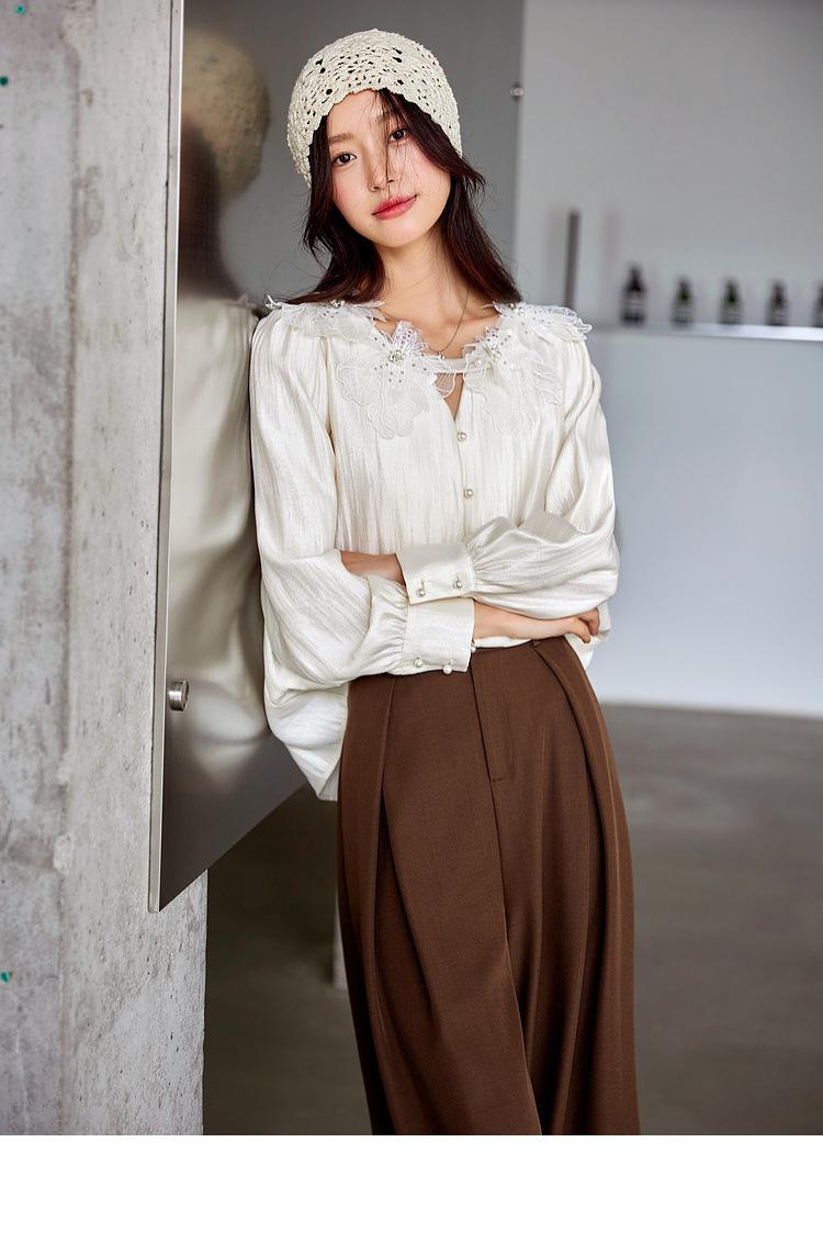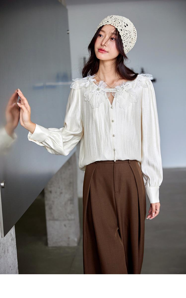 Zhenxi Nuevo Nicho Heavy-Duty Decoración de Flores de Perlas Camiseta de Cuello Redondo de Manga Larga para Mujer Top de Moda con Temperamento SQ972