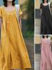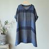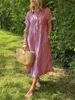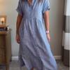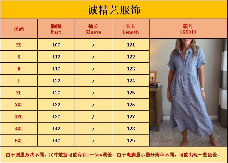 Europeo y Americano Transfronterizo Holgado Talla Grande Rayado Manga Corta Camisón Vestido de Mujer Verano Nuevo Casual Algodón Lino Falda Midi