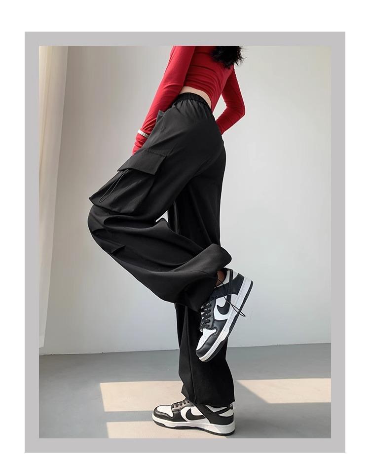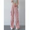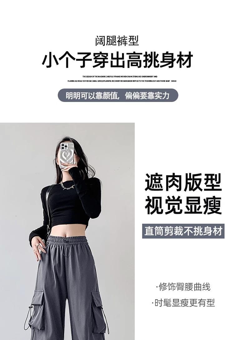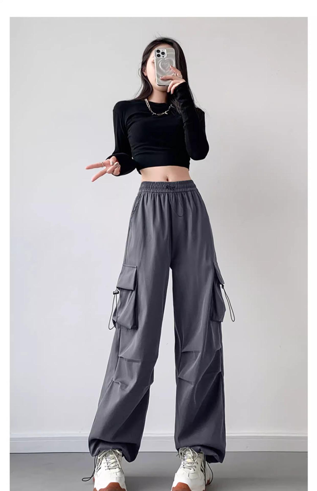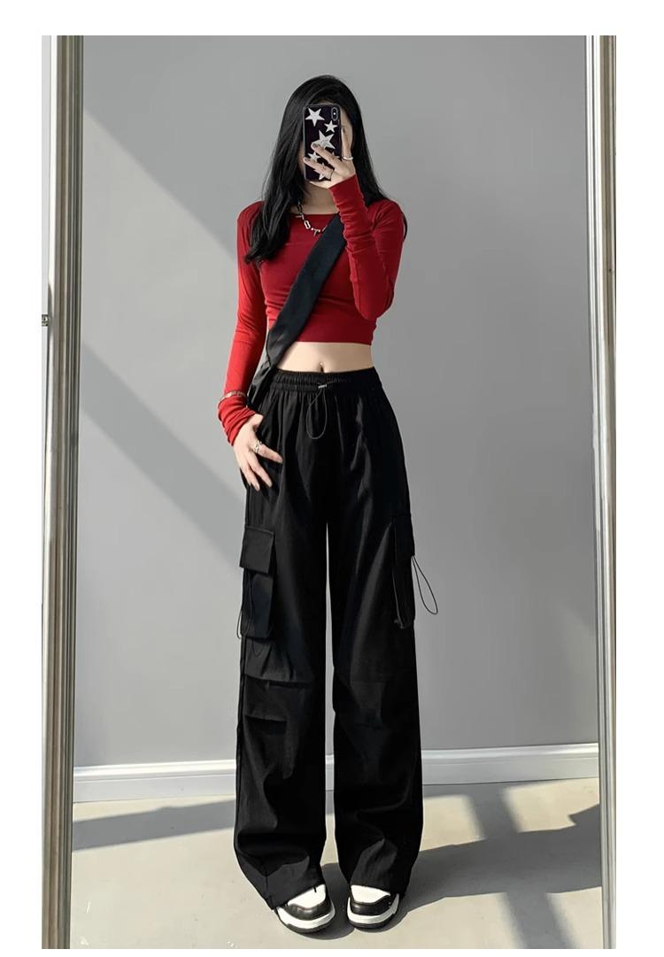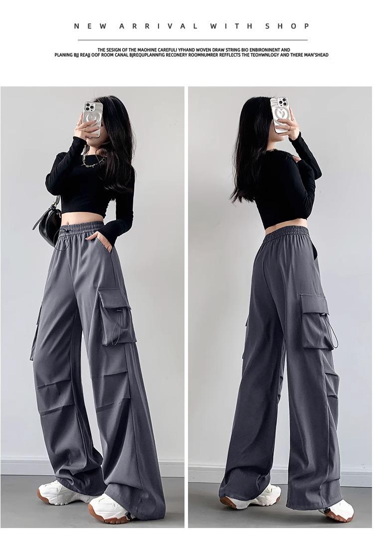 Americano ins calle alto otoño cintura elástica holgados adelgazantes versátiles pantalones cargo mujer cordón tobillo lazo pierna ancha pantalones casuales