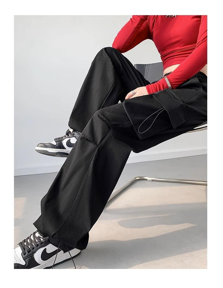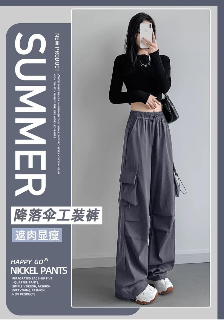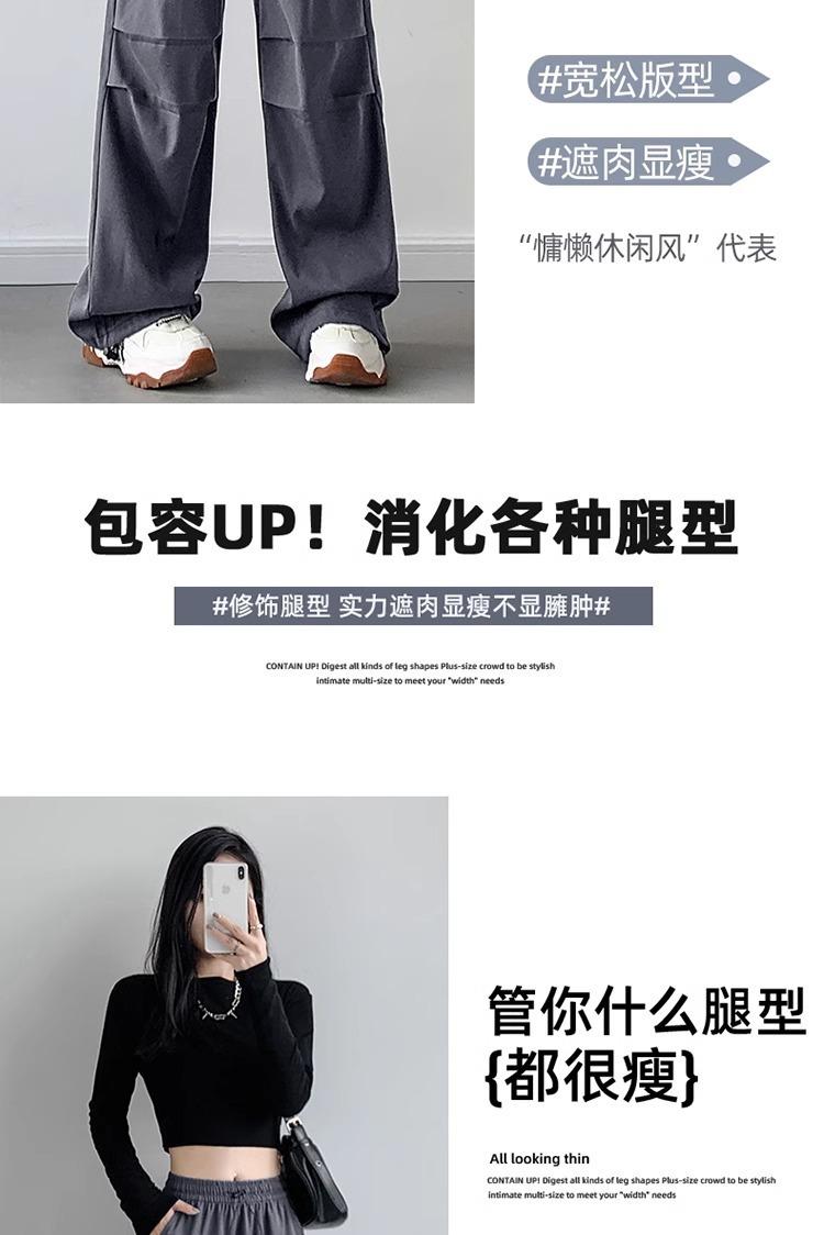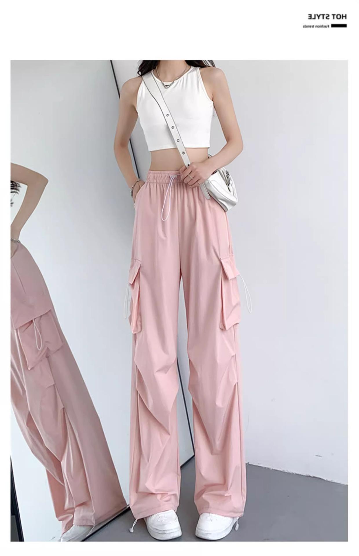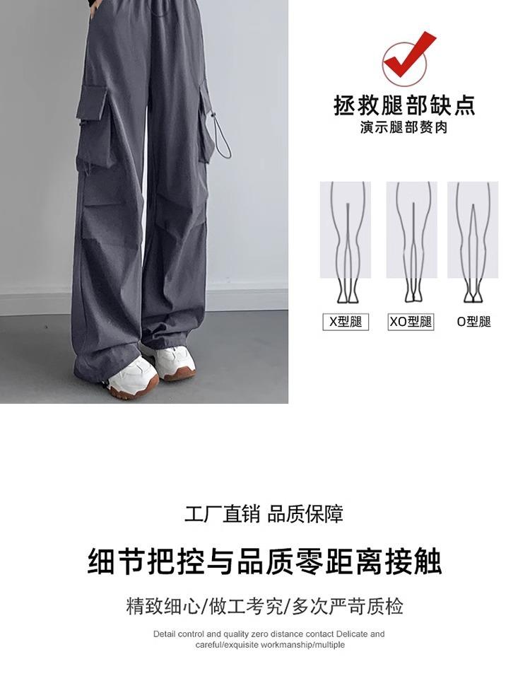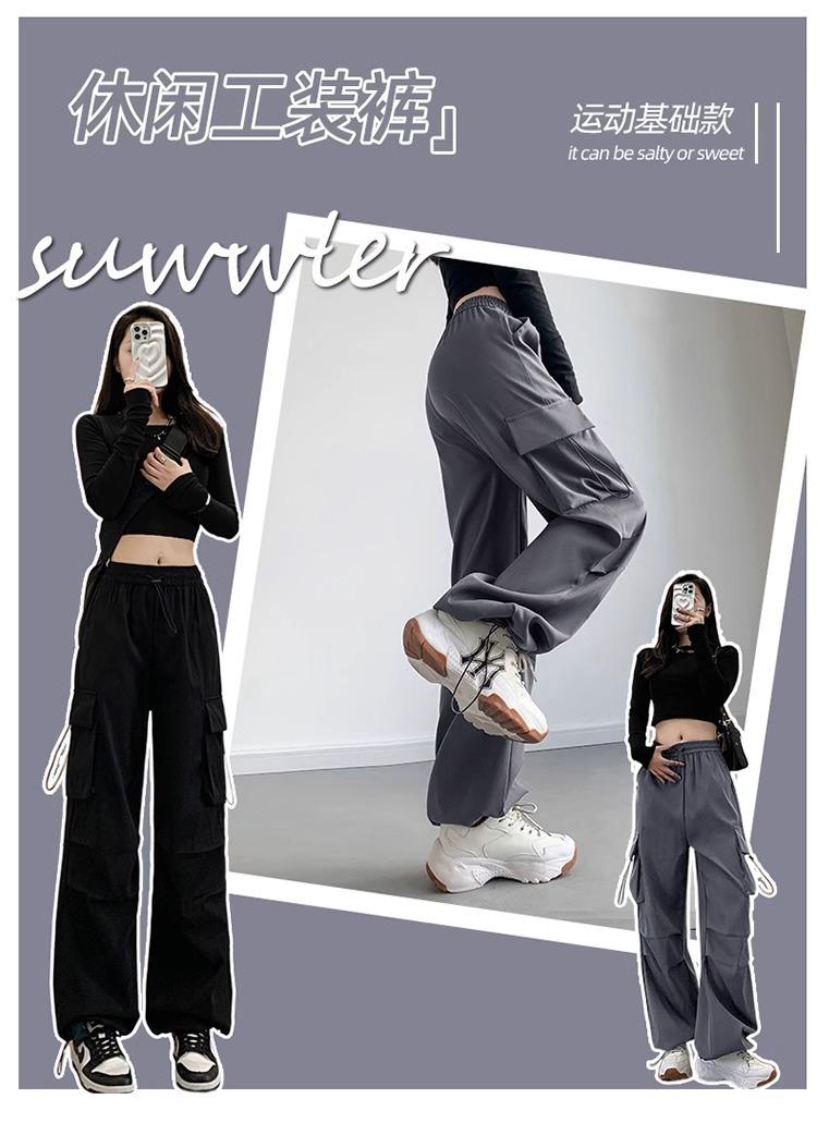 Americano ins calle alto otoño cintura elástica holgados adelgazantes versátiles pantalones cargo mujer cordón tobillo lazo pierna ancha pantalones casuales