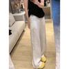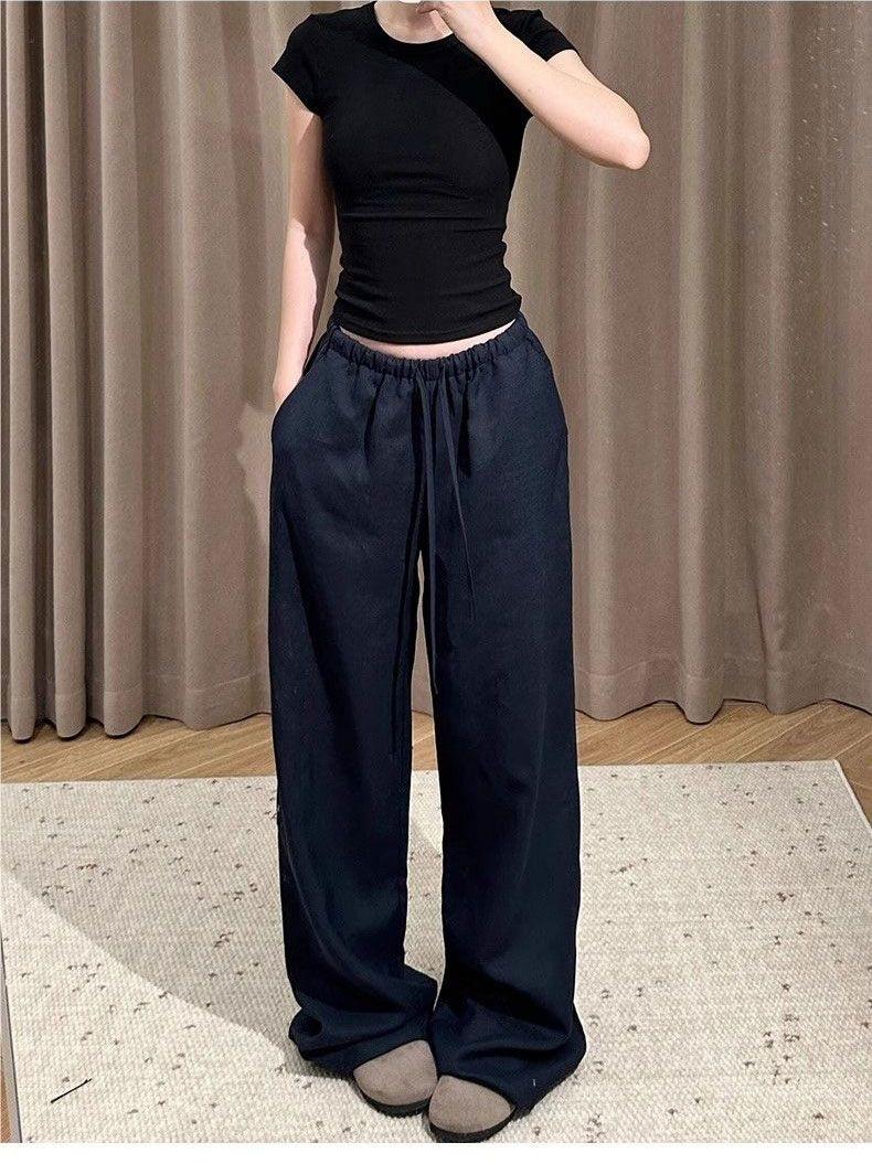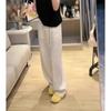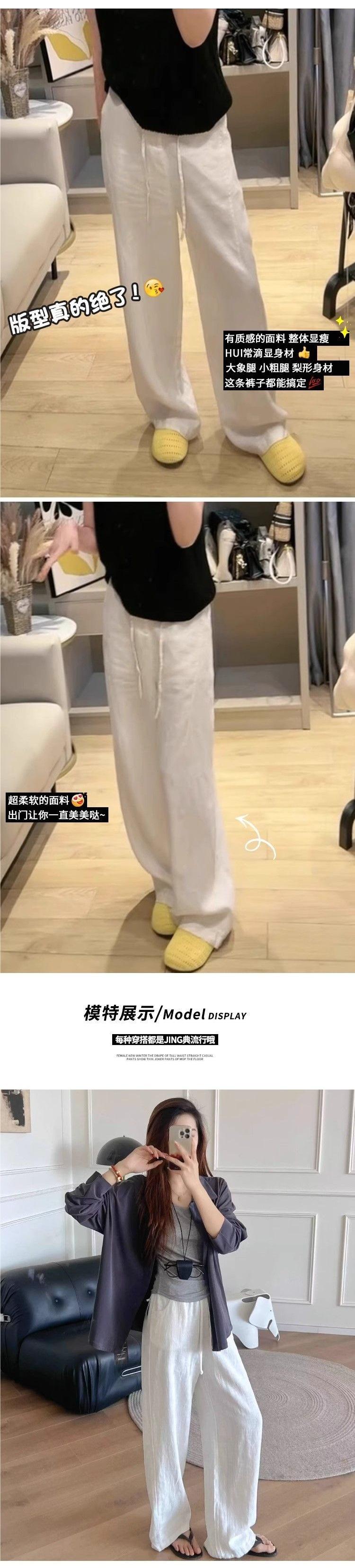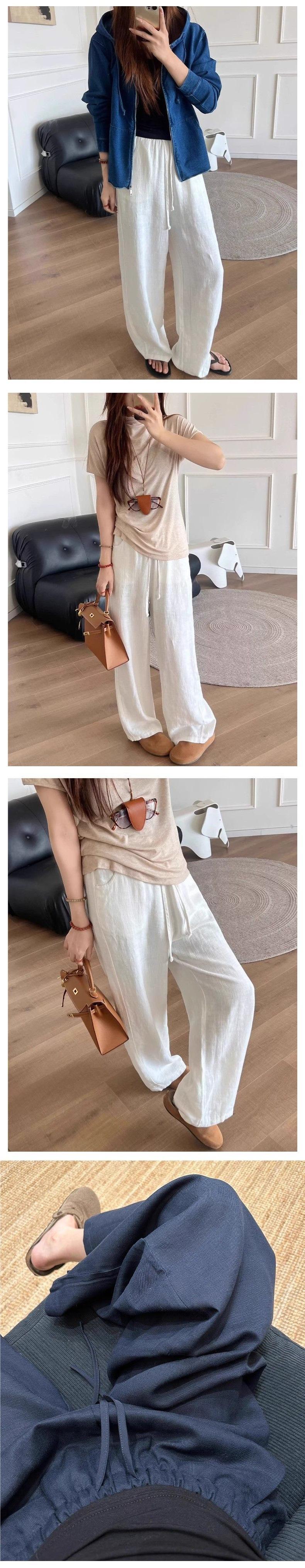 Pantalones Blancos de Lino de Pierna Ancha para Mujer Verano 2025 Nuevo Casual Suelto Fluido Ligero Pierna Recta Algodón Lino Seda de Hielo Pantalones Largos