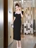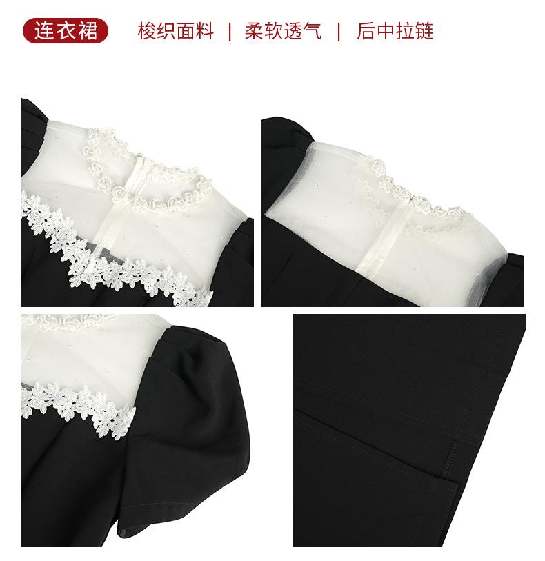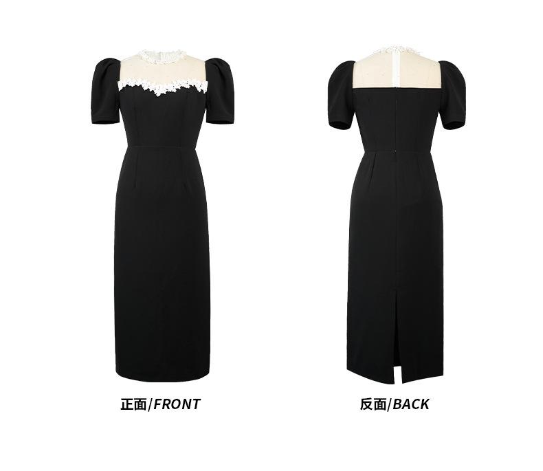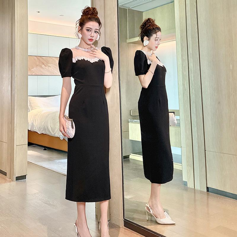 Compra Vestido Negro de Verano para Mujer 2025 Encaje Francés Cuello Redondo Cintura Ajustada Manga Abullonada Vestido Largo de Cintura Ajustada Hepburn 9071 al por mayor en Joom.pro