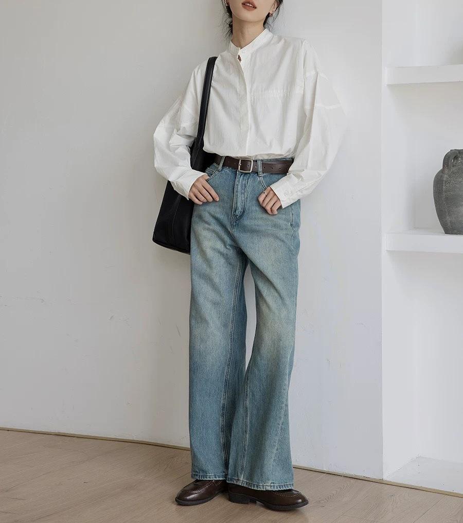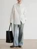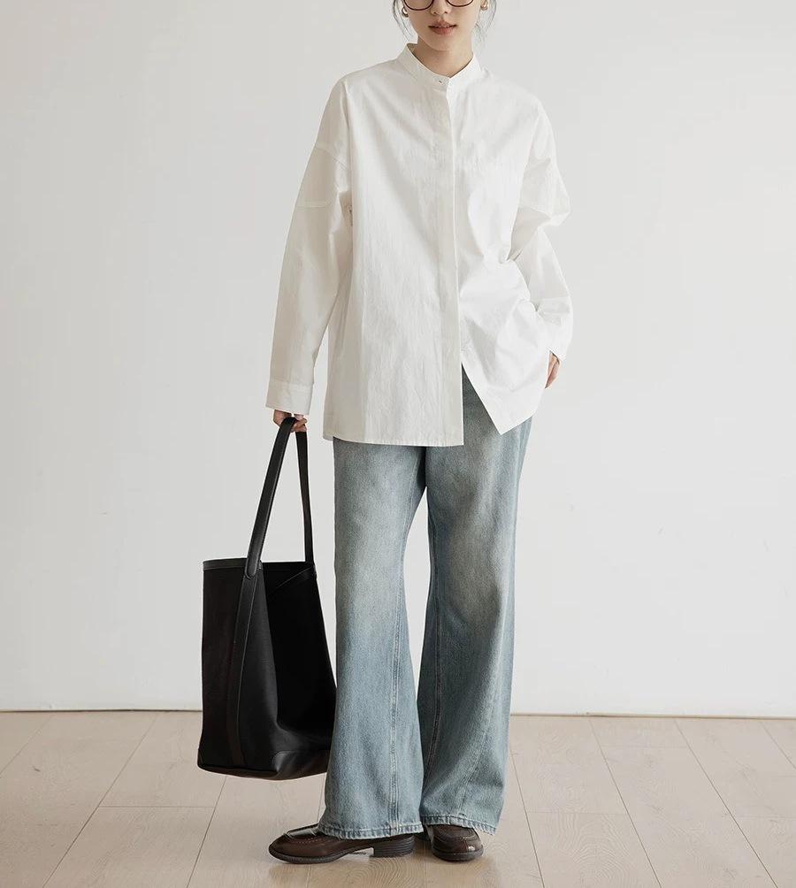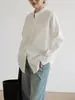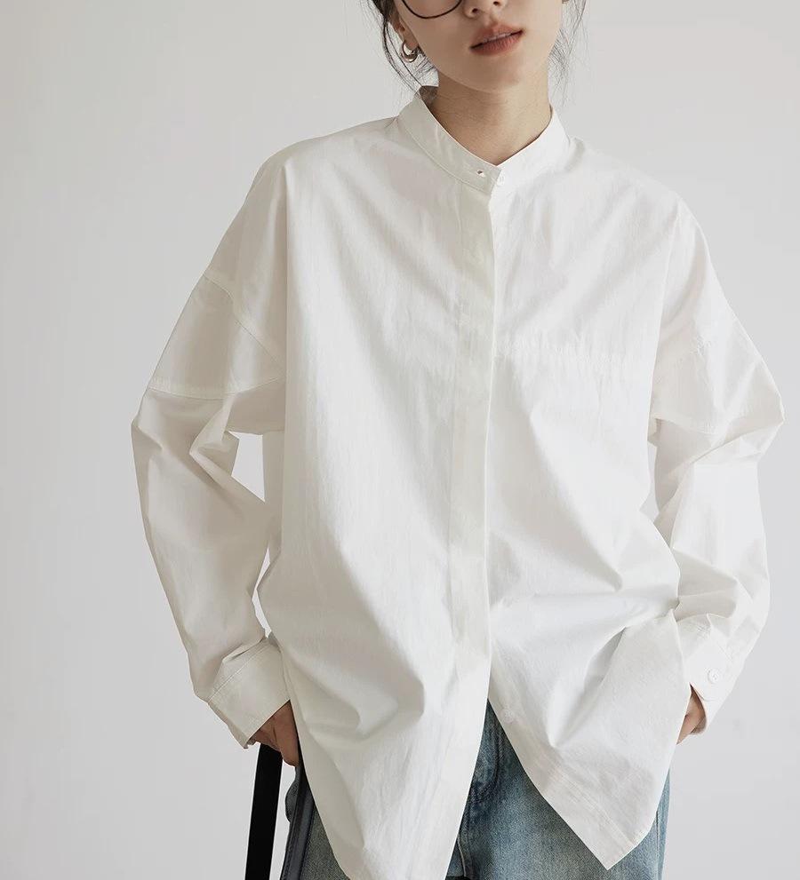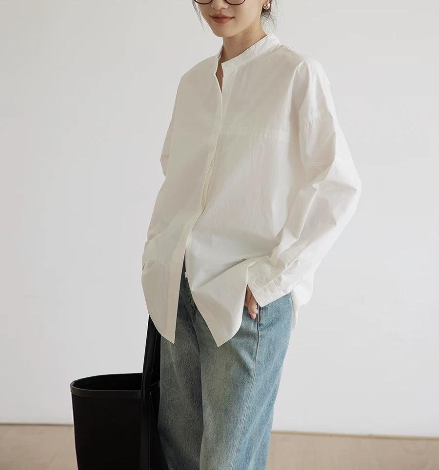 Camisa Blanca de Mujer Otoño Cuello Mao Commute Básica Manga Larga Blusa 2025 Nuevo Casual Versátil Top Holgado