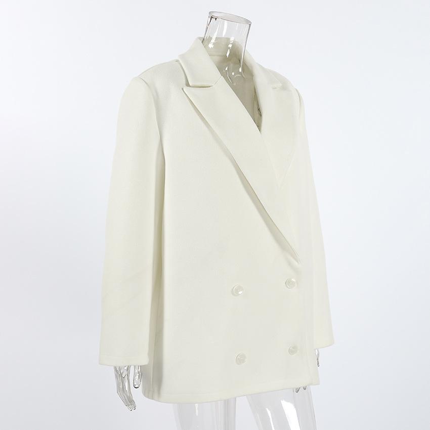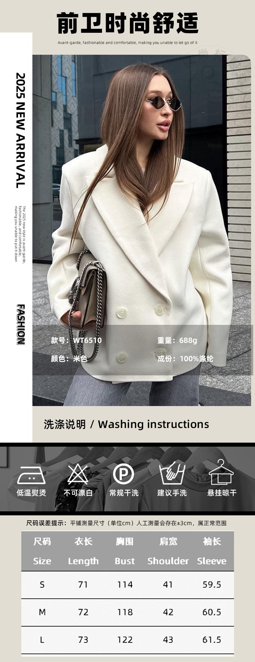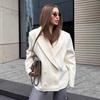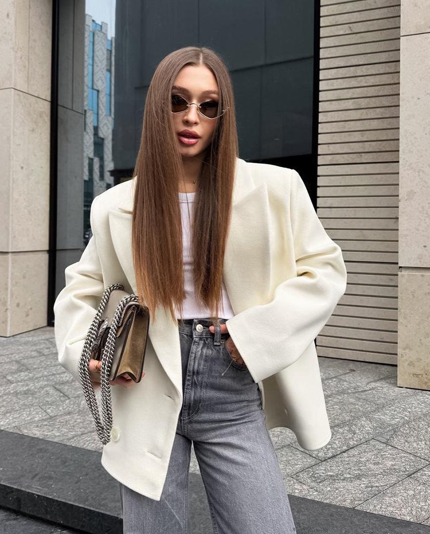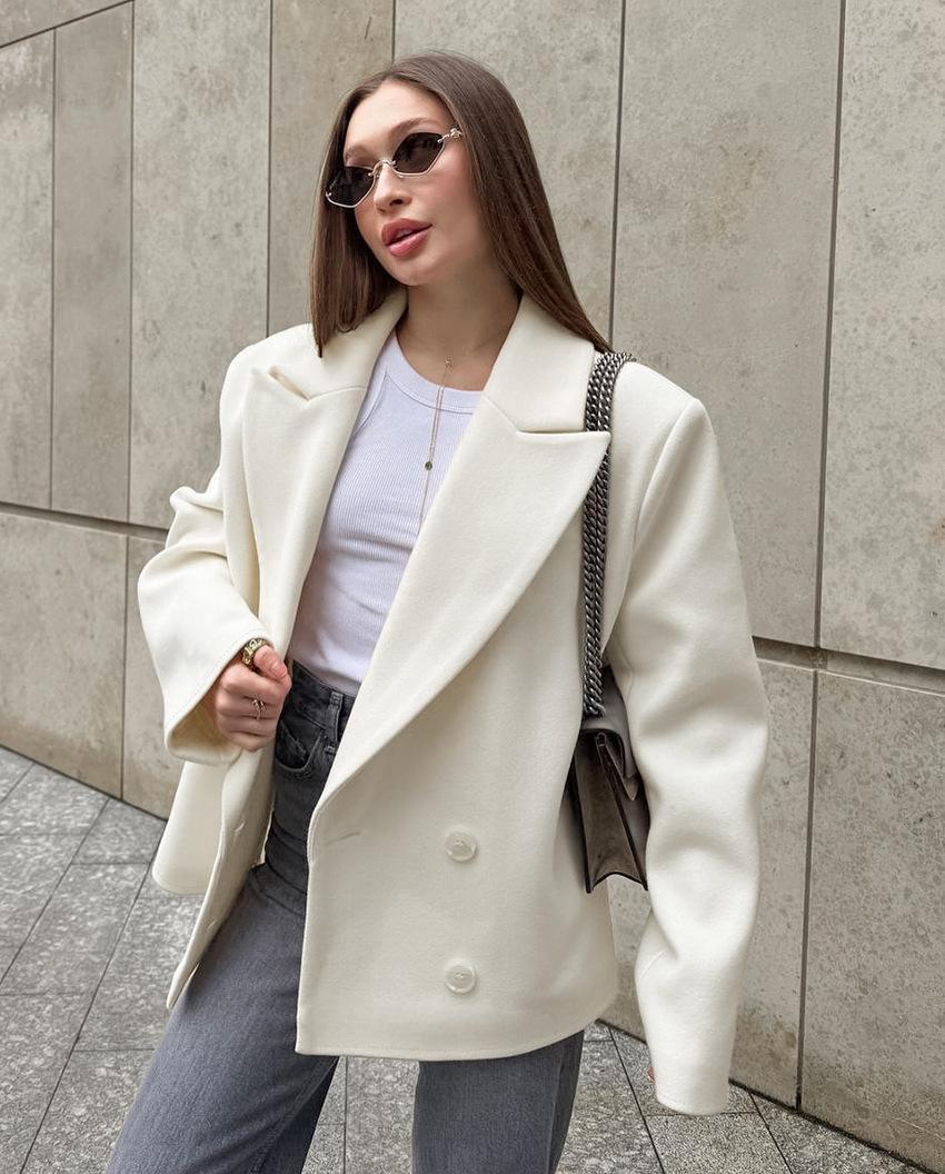 Compra Abrigo Beige de Lana Estilo Retro Francés Old Money para Mujer Invierno 2025 Solapa Largo Medio Suelto Traje Cruzado al por mayor en Joom.pro