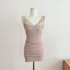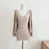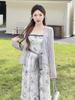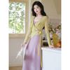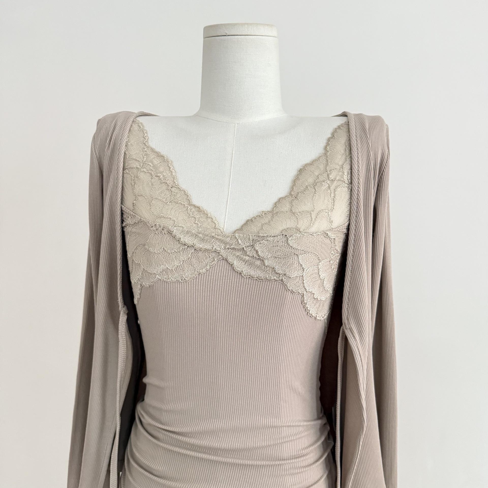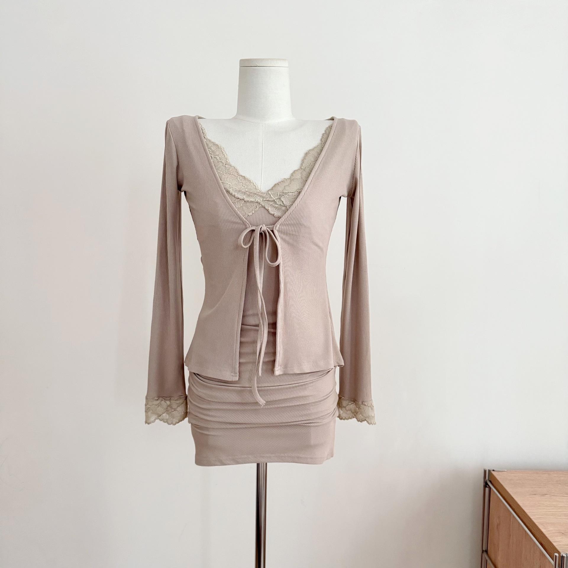 Socialité Taiwanesa* Temperamento de Principio de Otoño Sexy Cárdigan de Punto Conjunto de Dos Piezas Encaje Vestido de Mujer