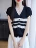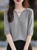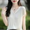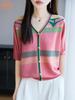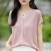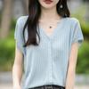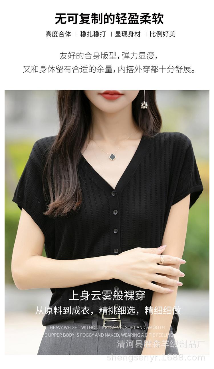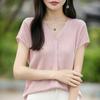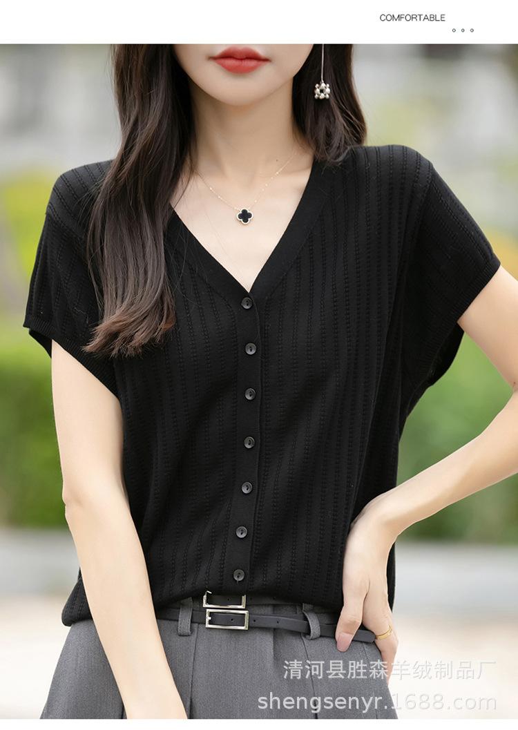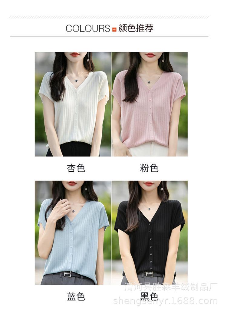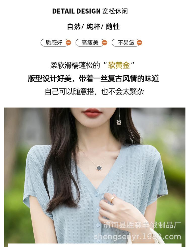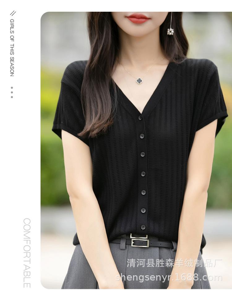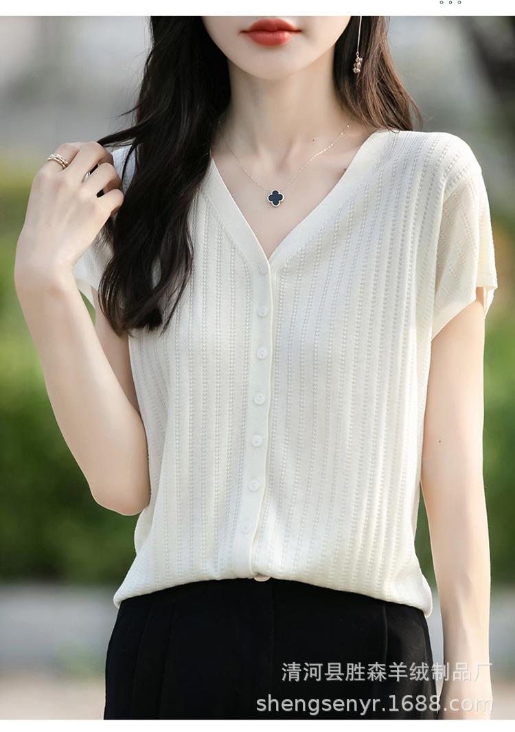 24 Verano Nueva Moda Tencel Lyocell Cárdigan de Punto con Cuello en V para Mujer Manga Corta Color Sólido Suelto Combinable Top