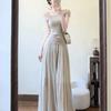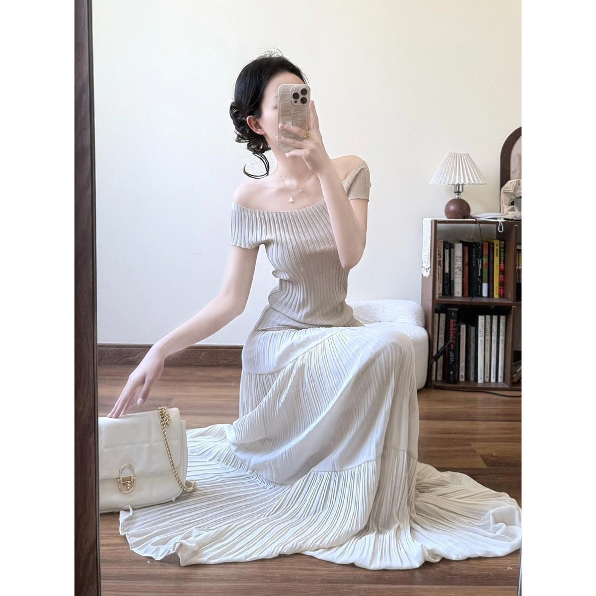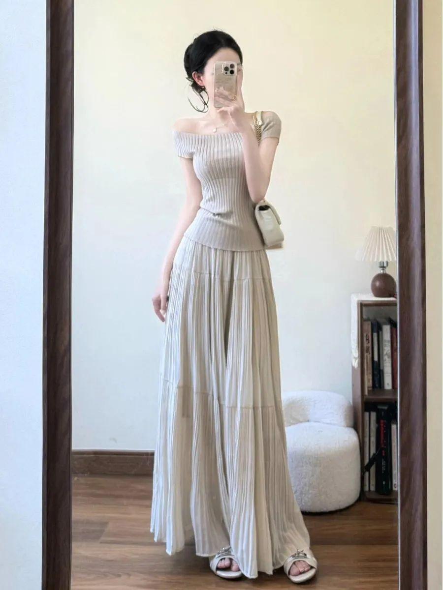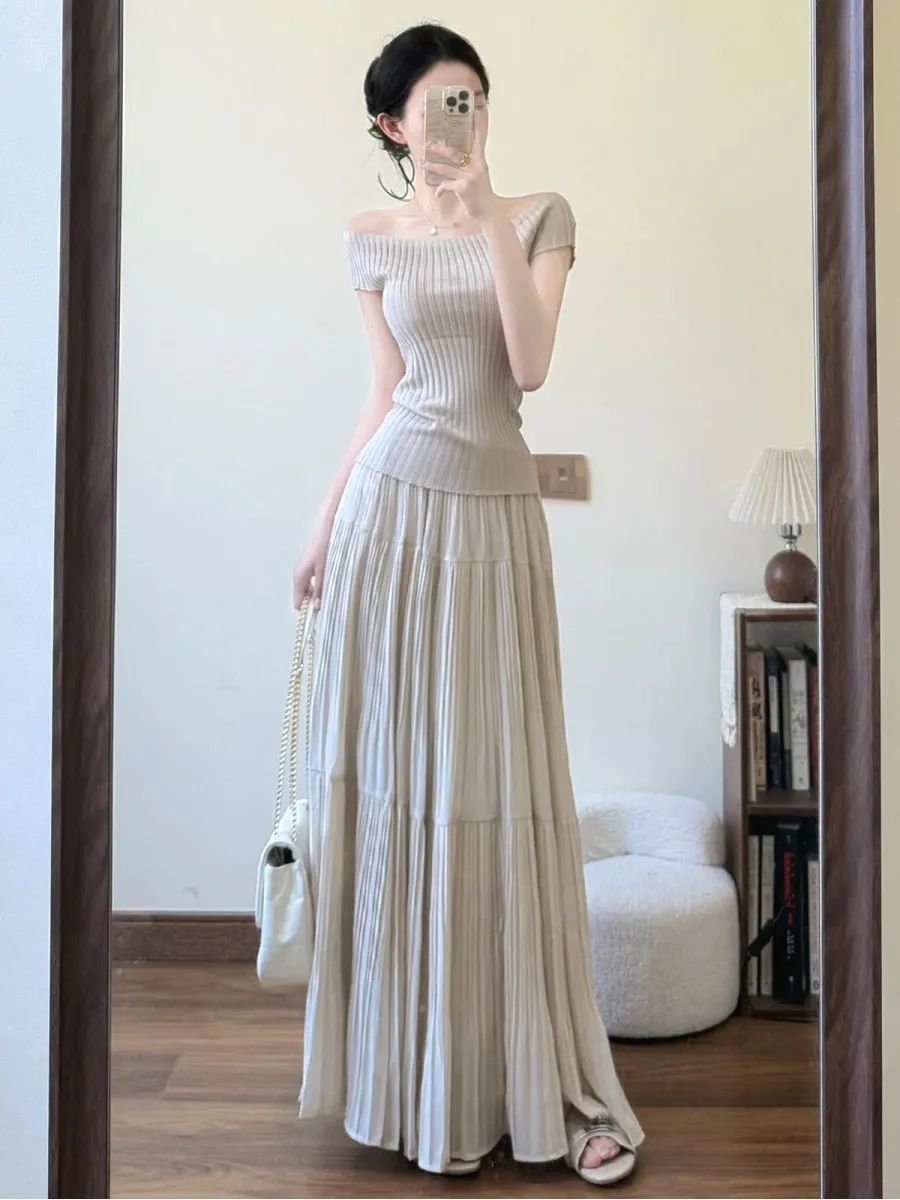 Conjunto Temperamento Verano Hombro Descubierto Dopamina Recién Llegado Producto Nuevo Manga Corta Cintura Alta Falda Midi Conjunto de Dos Piezas