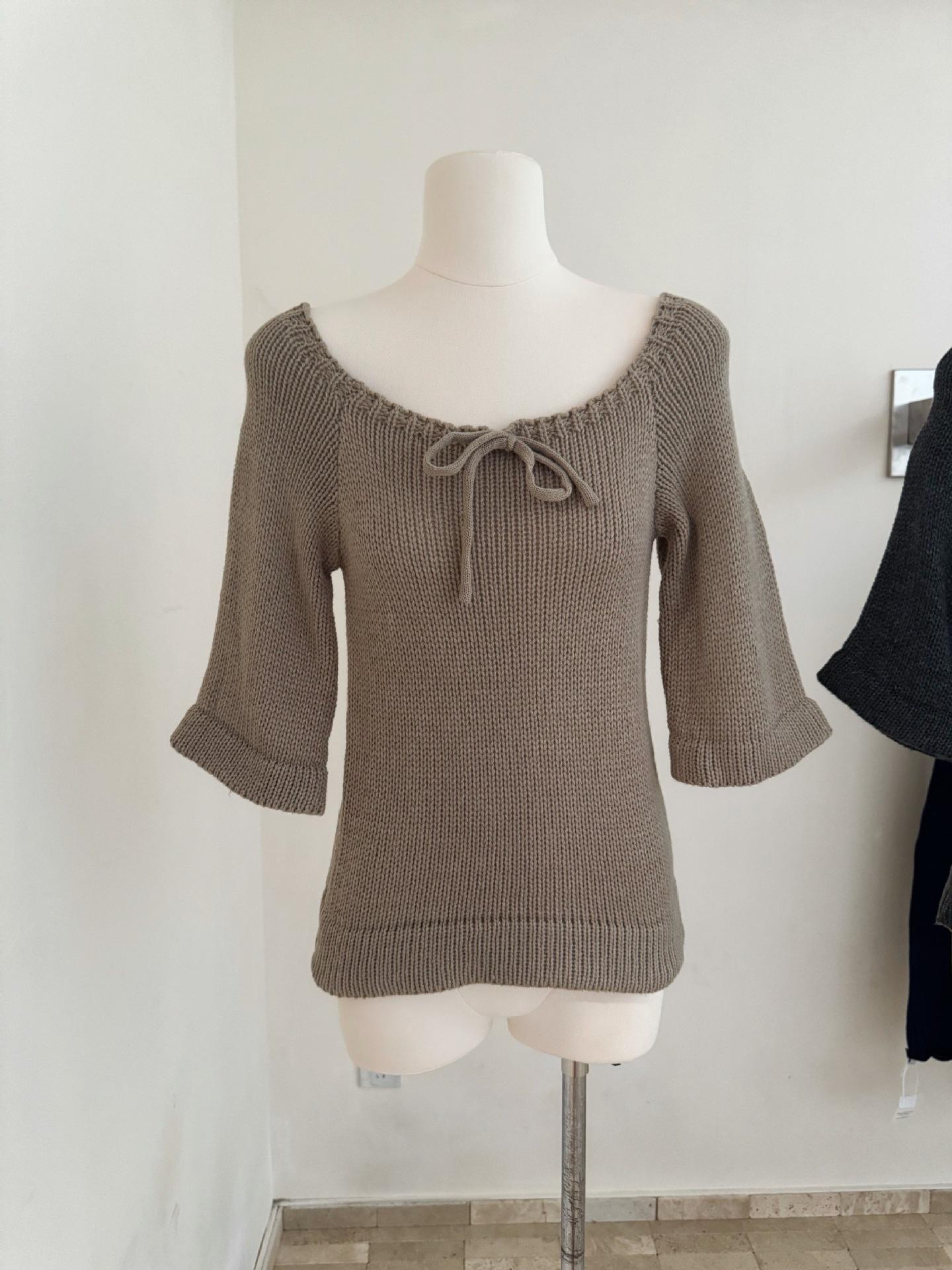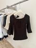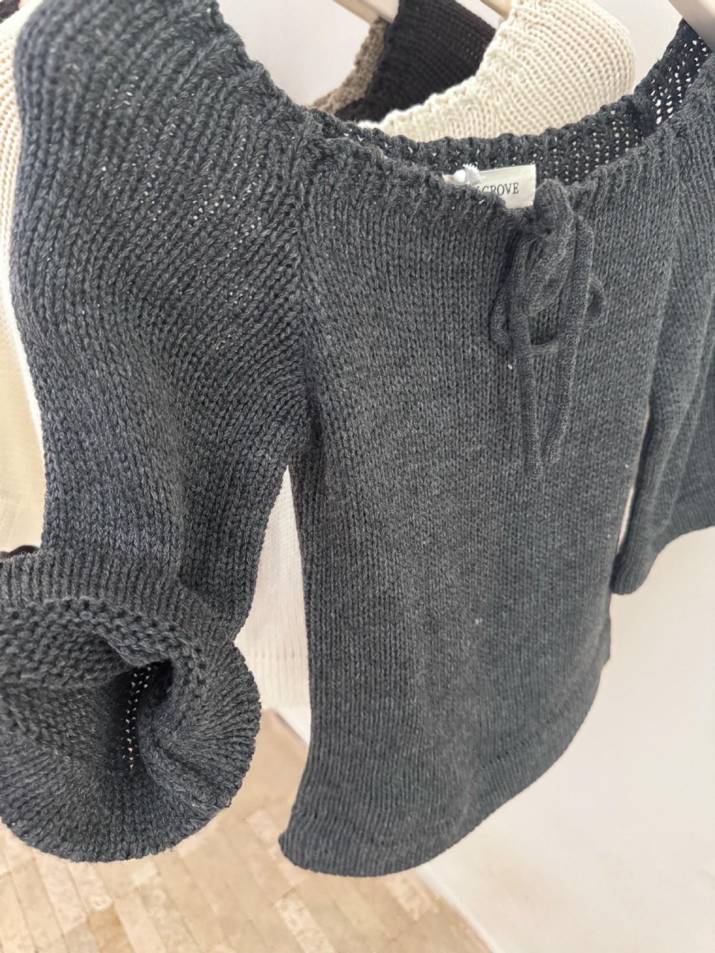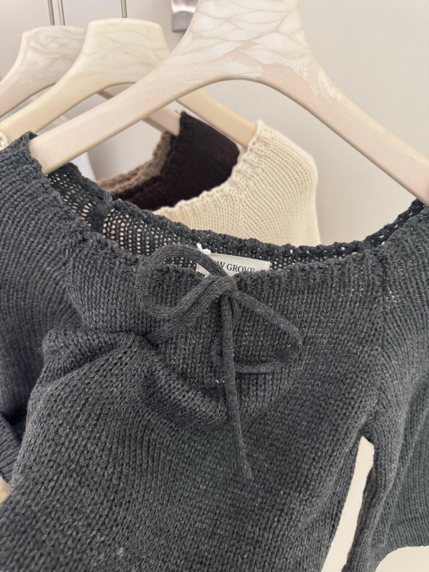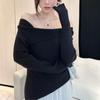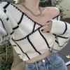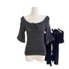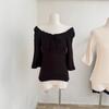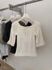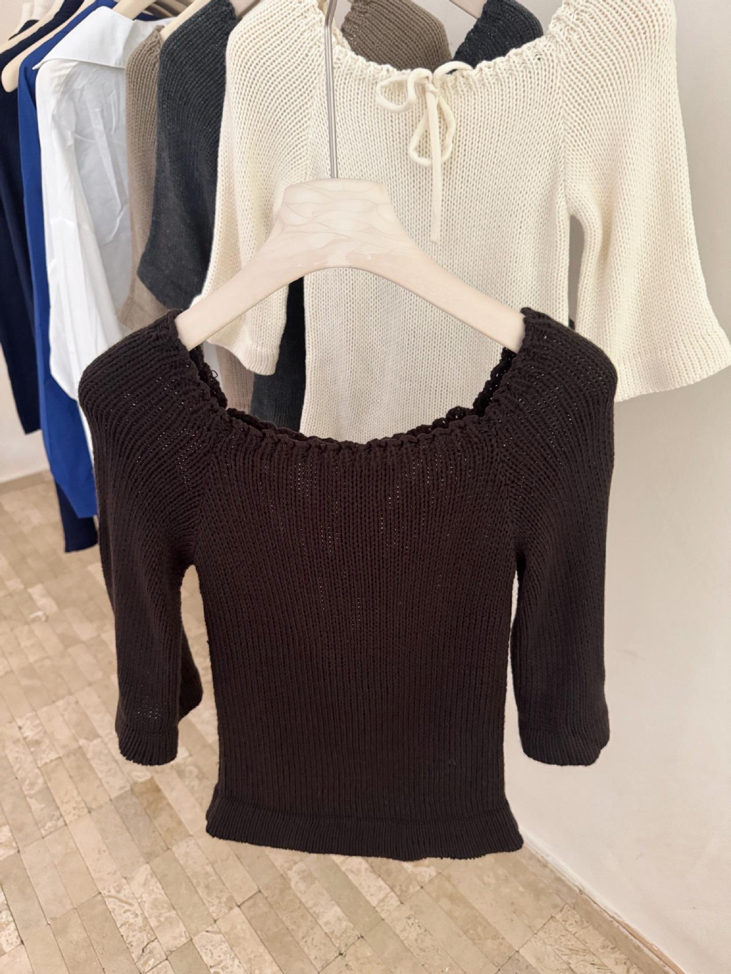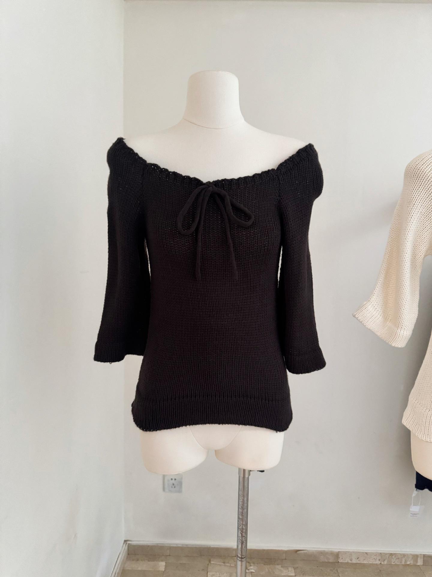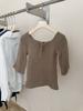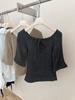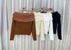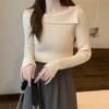 Suéter Retro de Otoño Tejido con Hombros Descubiertos y Cuello Cuadrado 'Doble Uso' Manga Media
