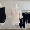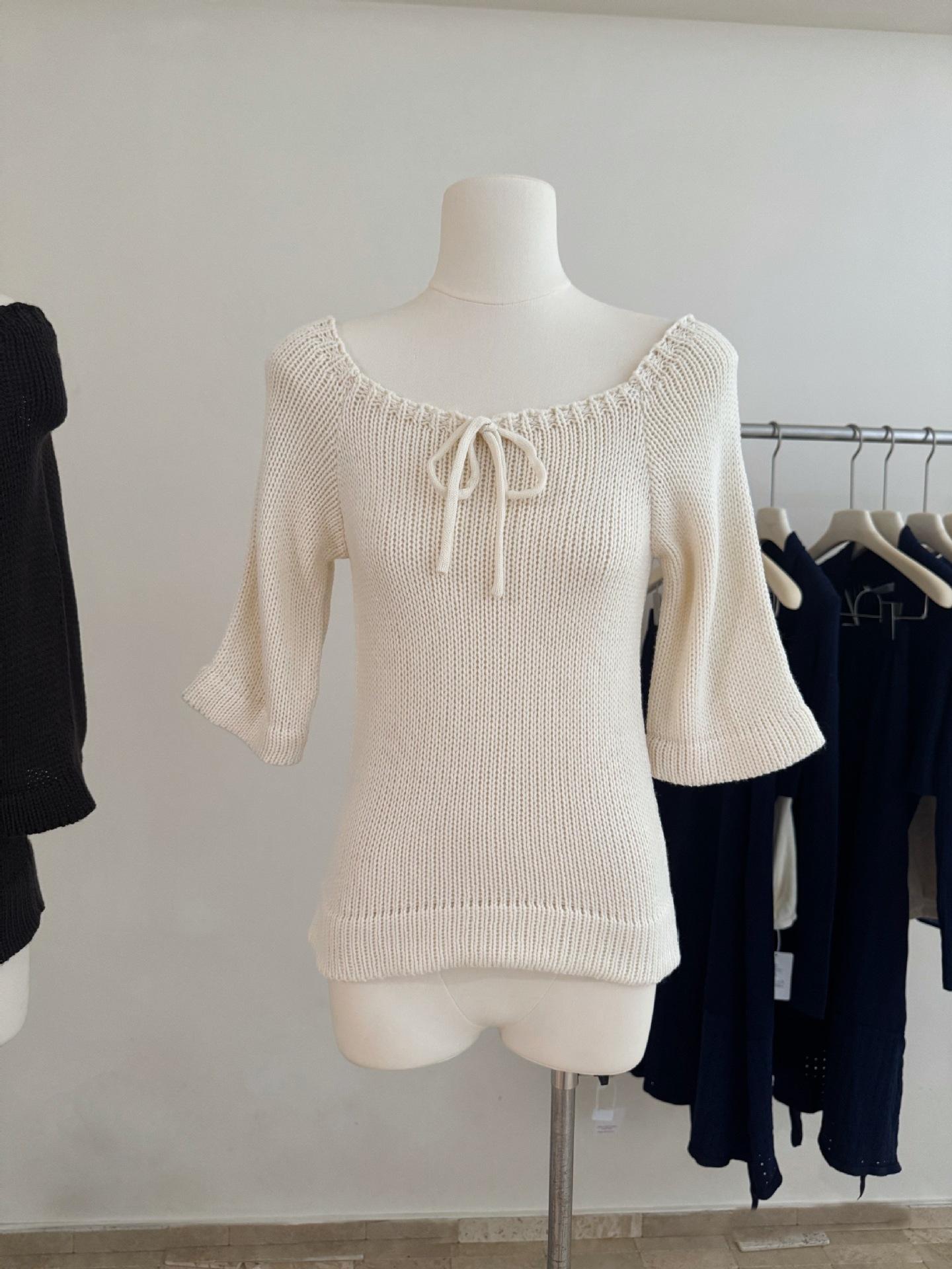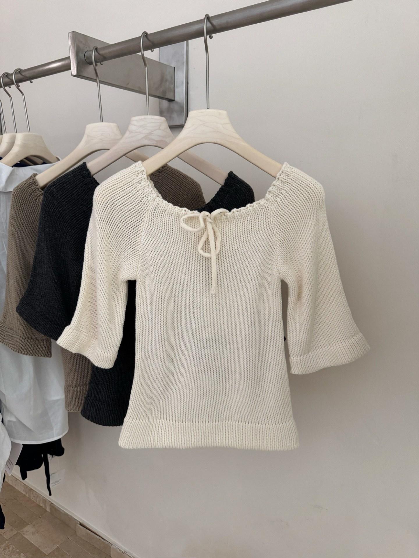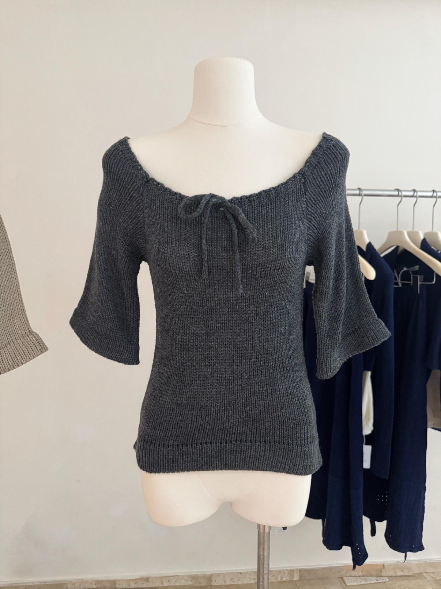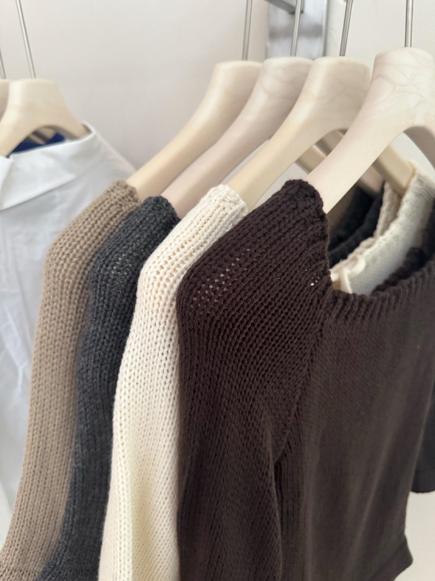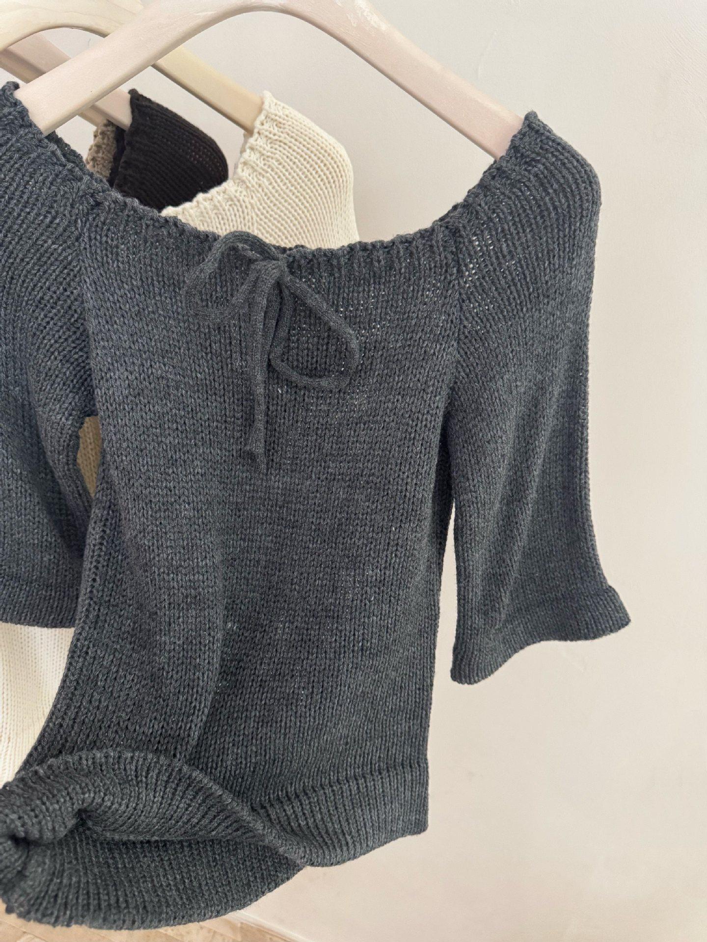 Suéter Retro de Otoño Tejido con Hombros Descubiertos y Cuello Cuadrado 'Doble Uso' Manga Media