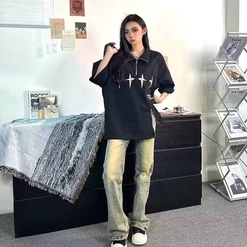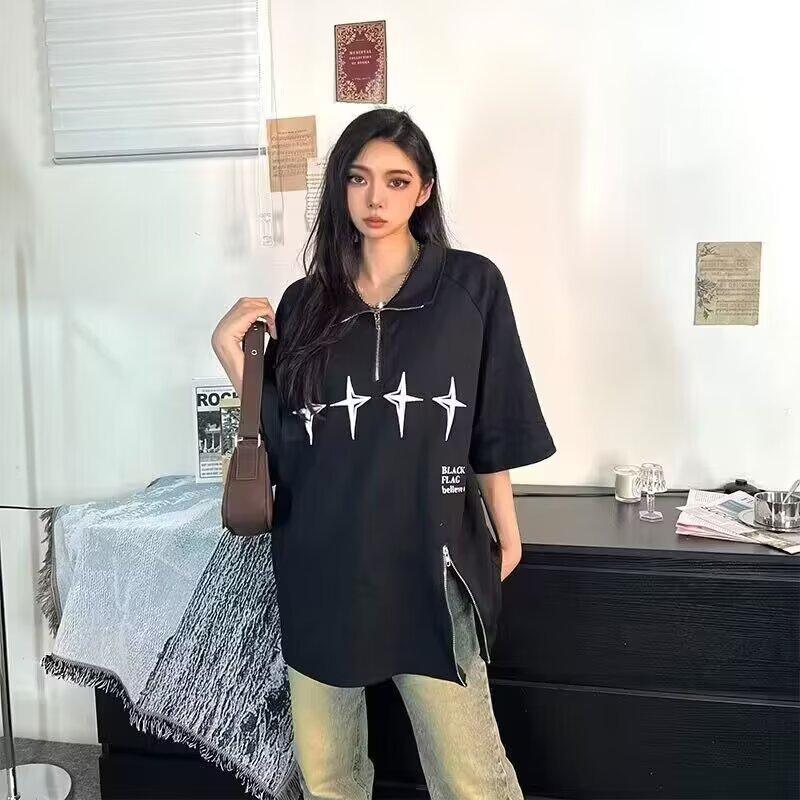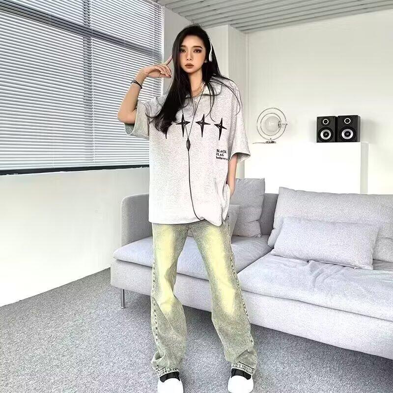 Camiseta de Manga Corta Holgada para Pareja Retro Americana de Cuello Pequeño para Hombre y Mujer con Estampado de Chica Caliente Verano Holgada de Manga Corta Camiseta