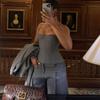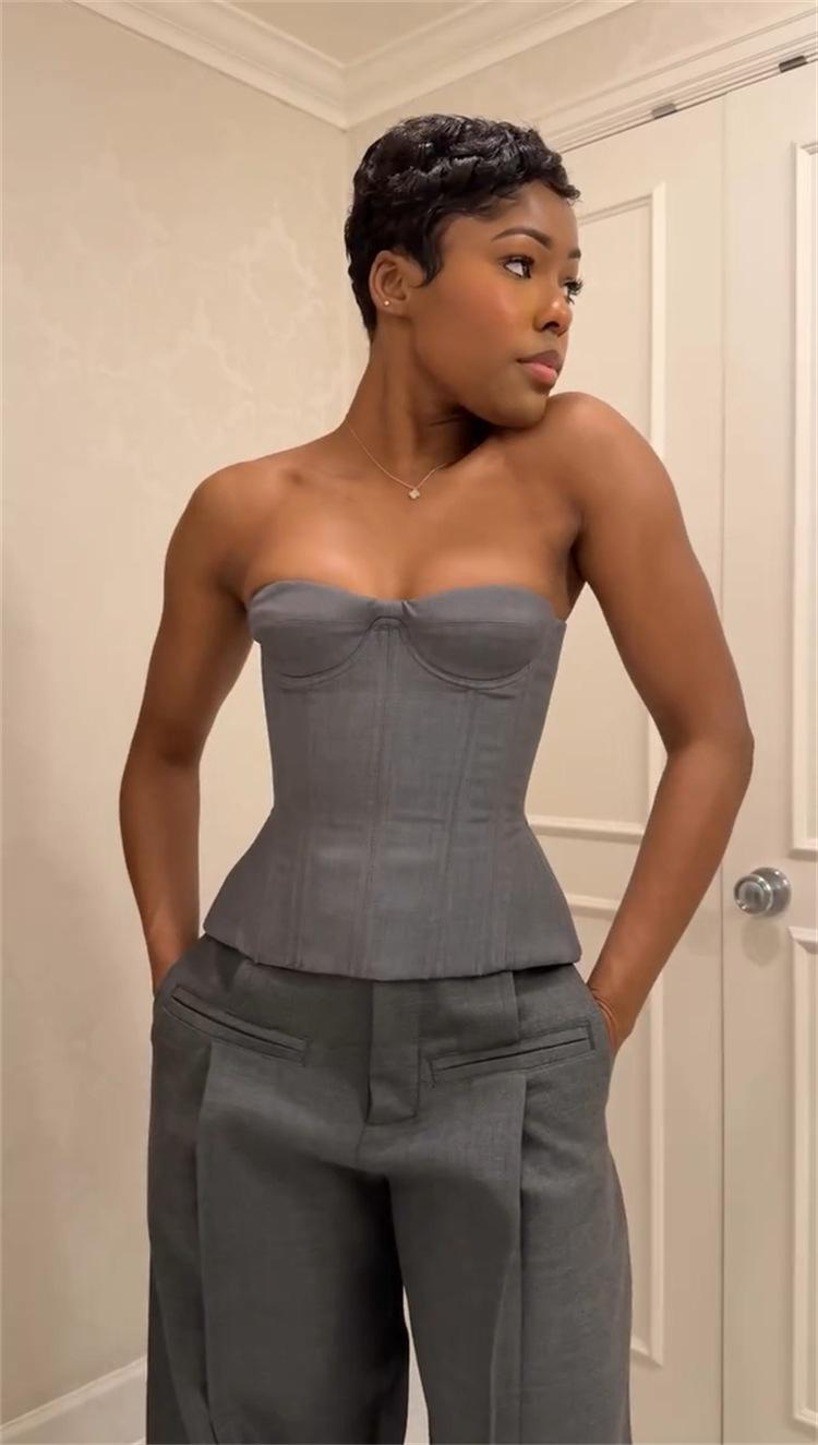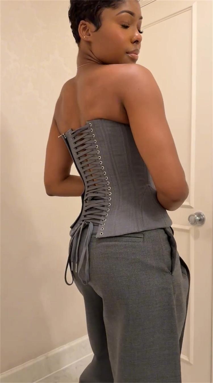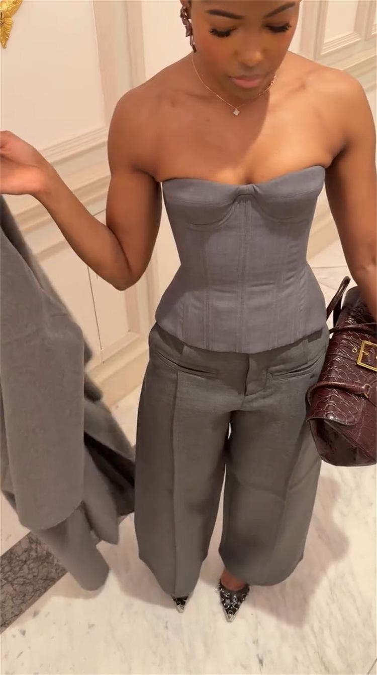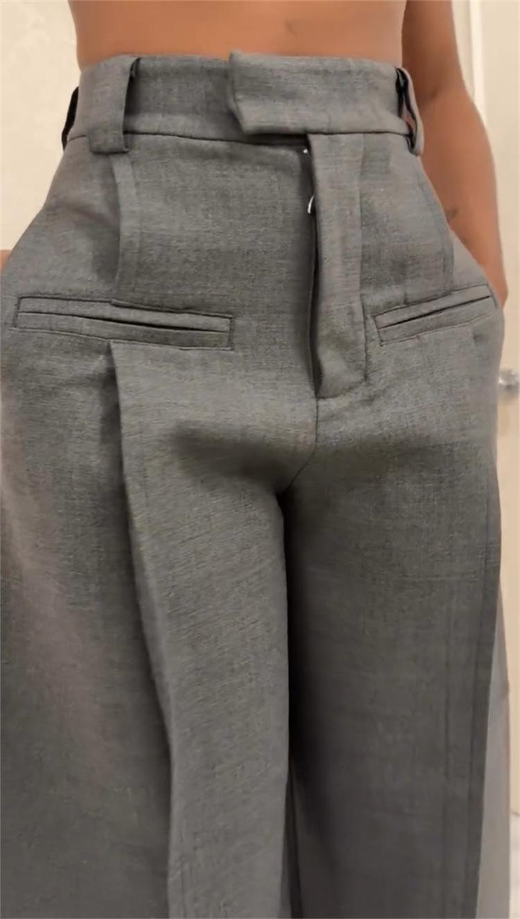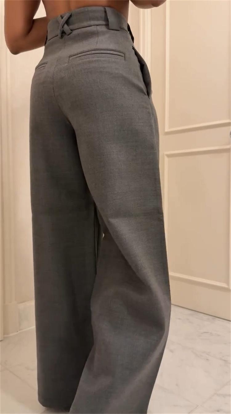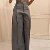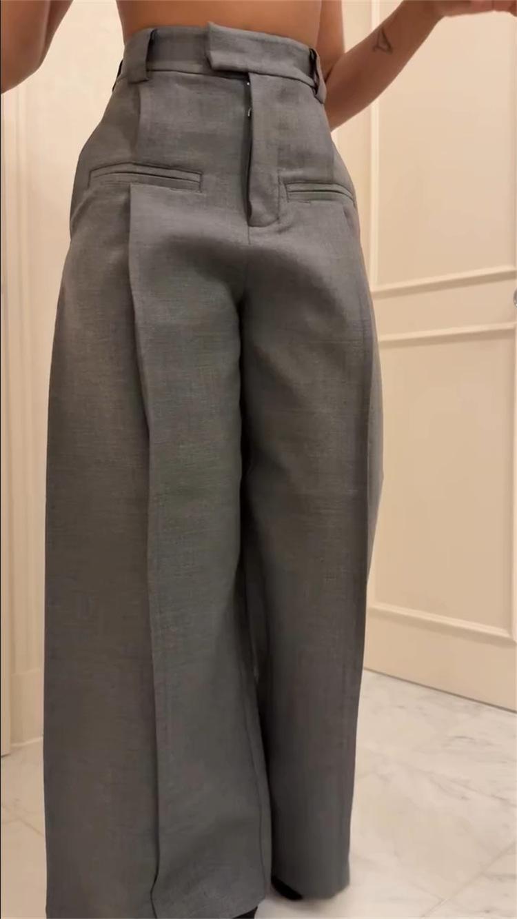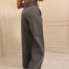 Ropa de mujer transfronteriza europea y americana 2025 nuevos pantalones casuales de diseño gris de talle alto holgados de pierna ancha pantalones de traje nueve