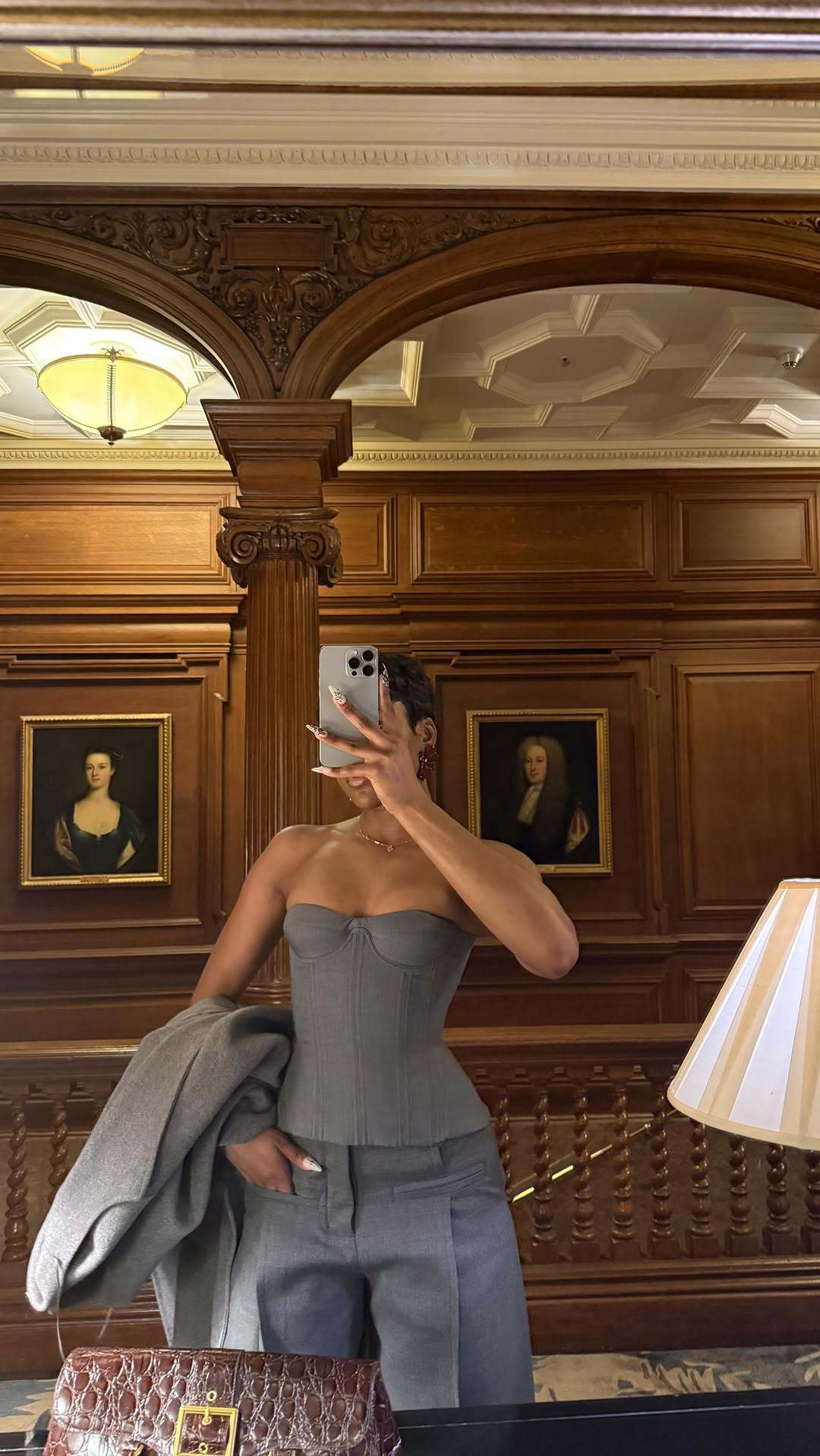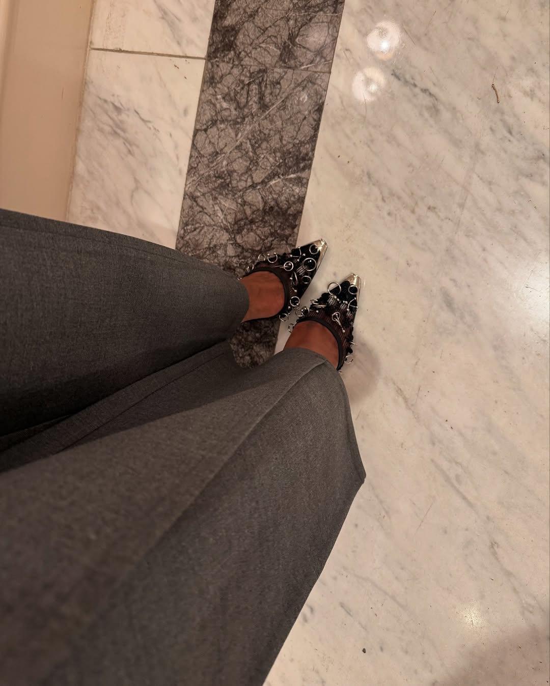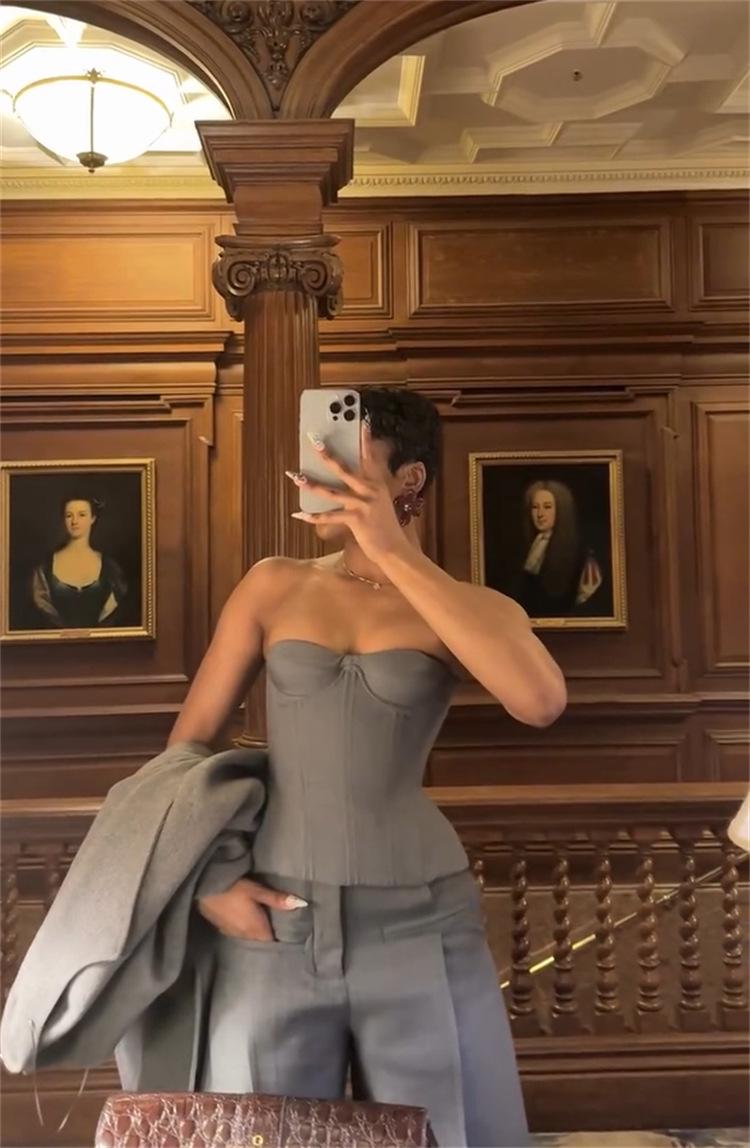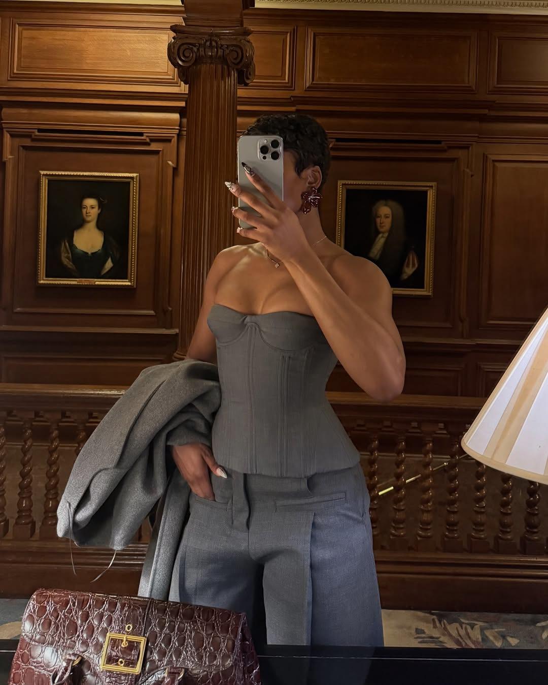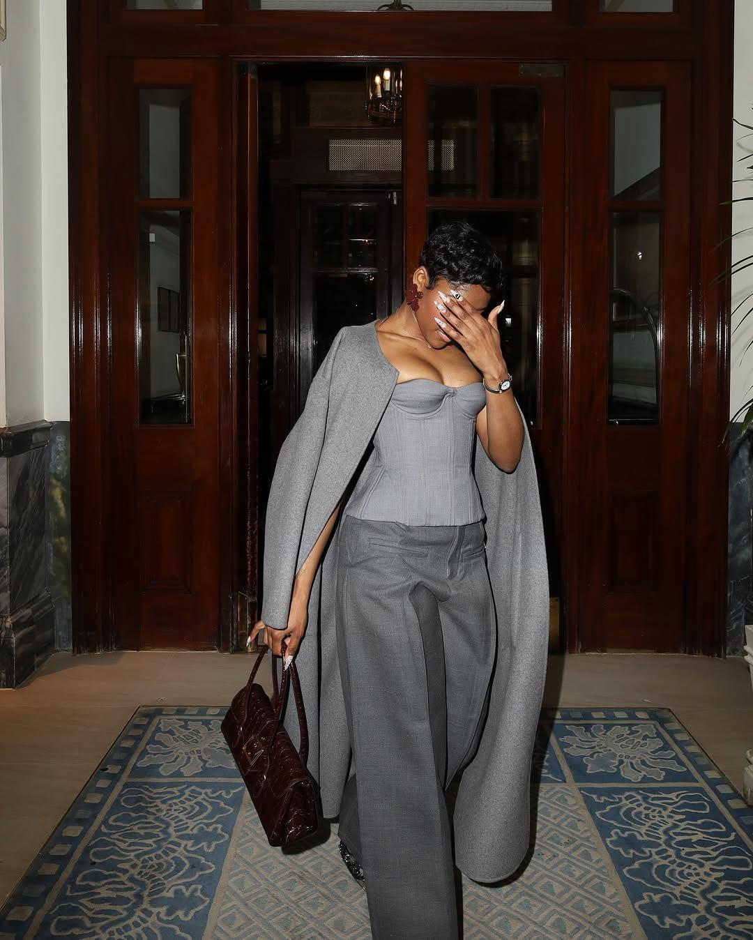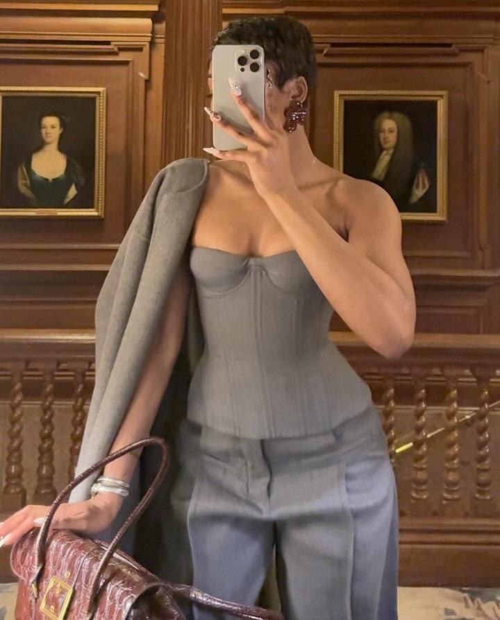 Ropa de mujer transfronteriza europea y americana 2025 nuevos pantalones casuales de diseño gris de talle alto holgados de pierna ancha pantalones de traje nueve