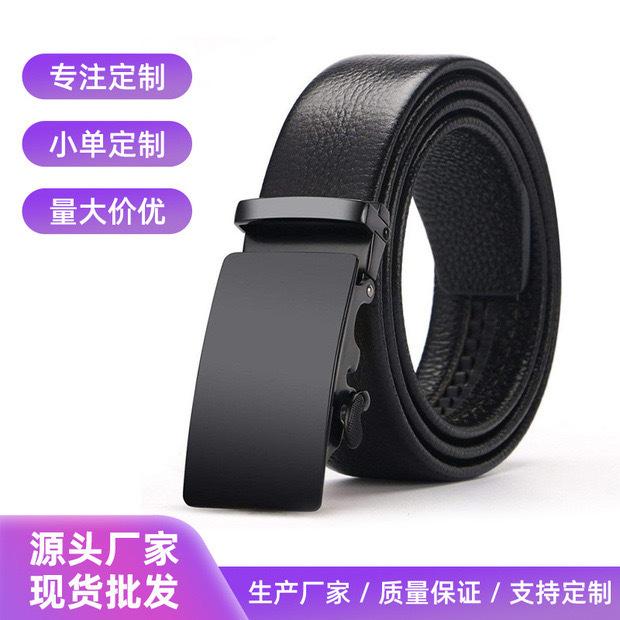 Cinturón para Hombre Patrón Logotipo Aleación Cuero Genuino Cinturón de Cintura Hebilla Automática Cinturón Cuero Vacuno Fábrica Venta al por Mayor