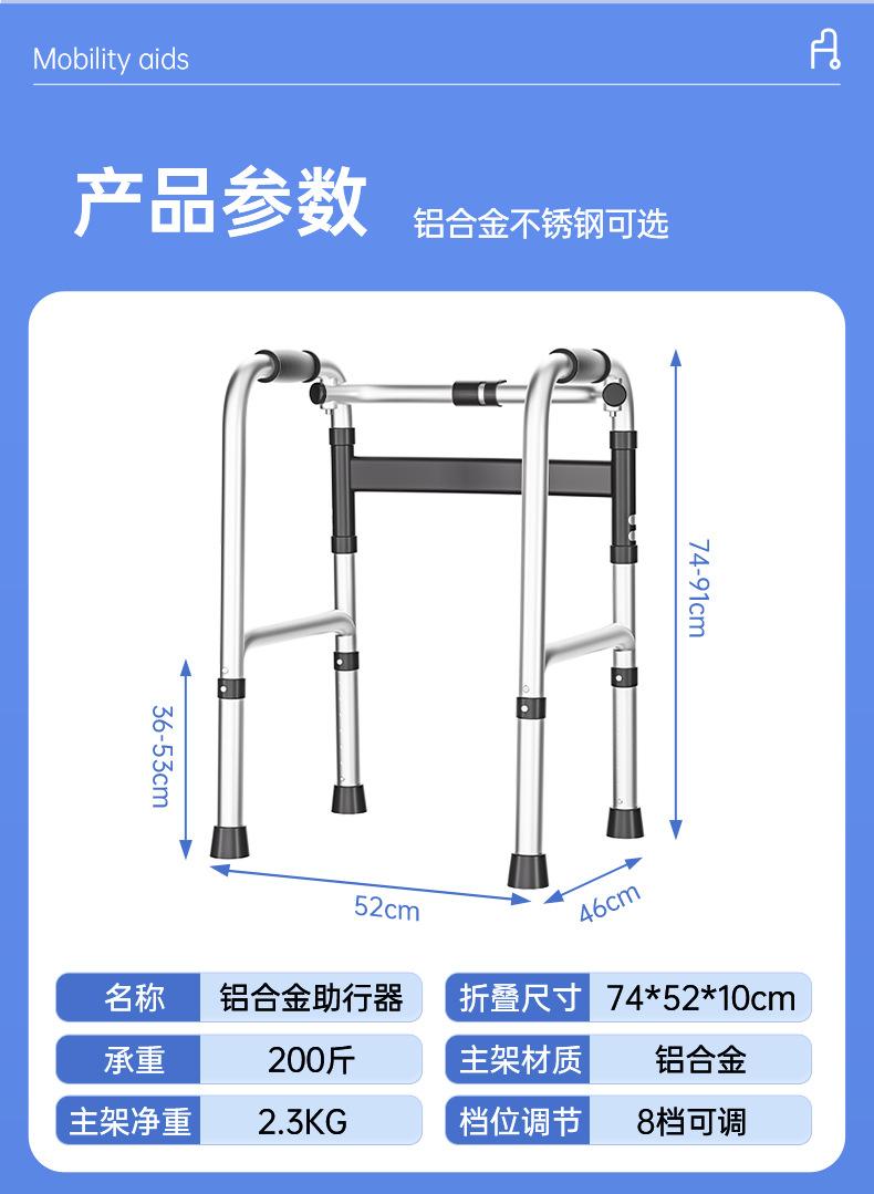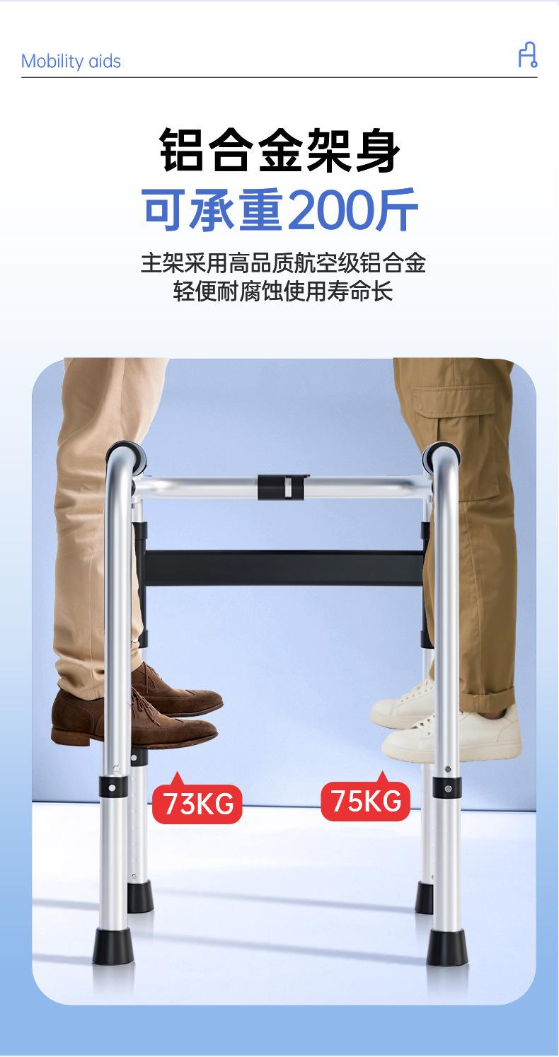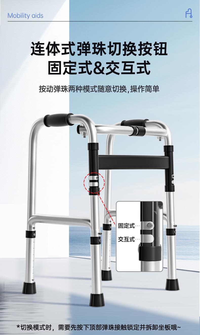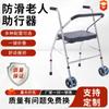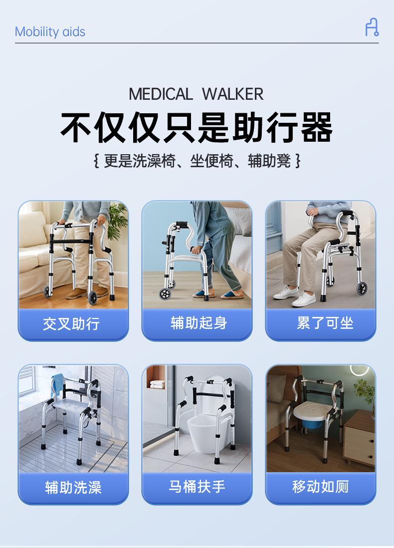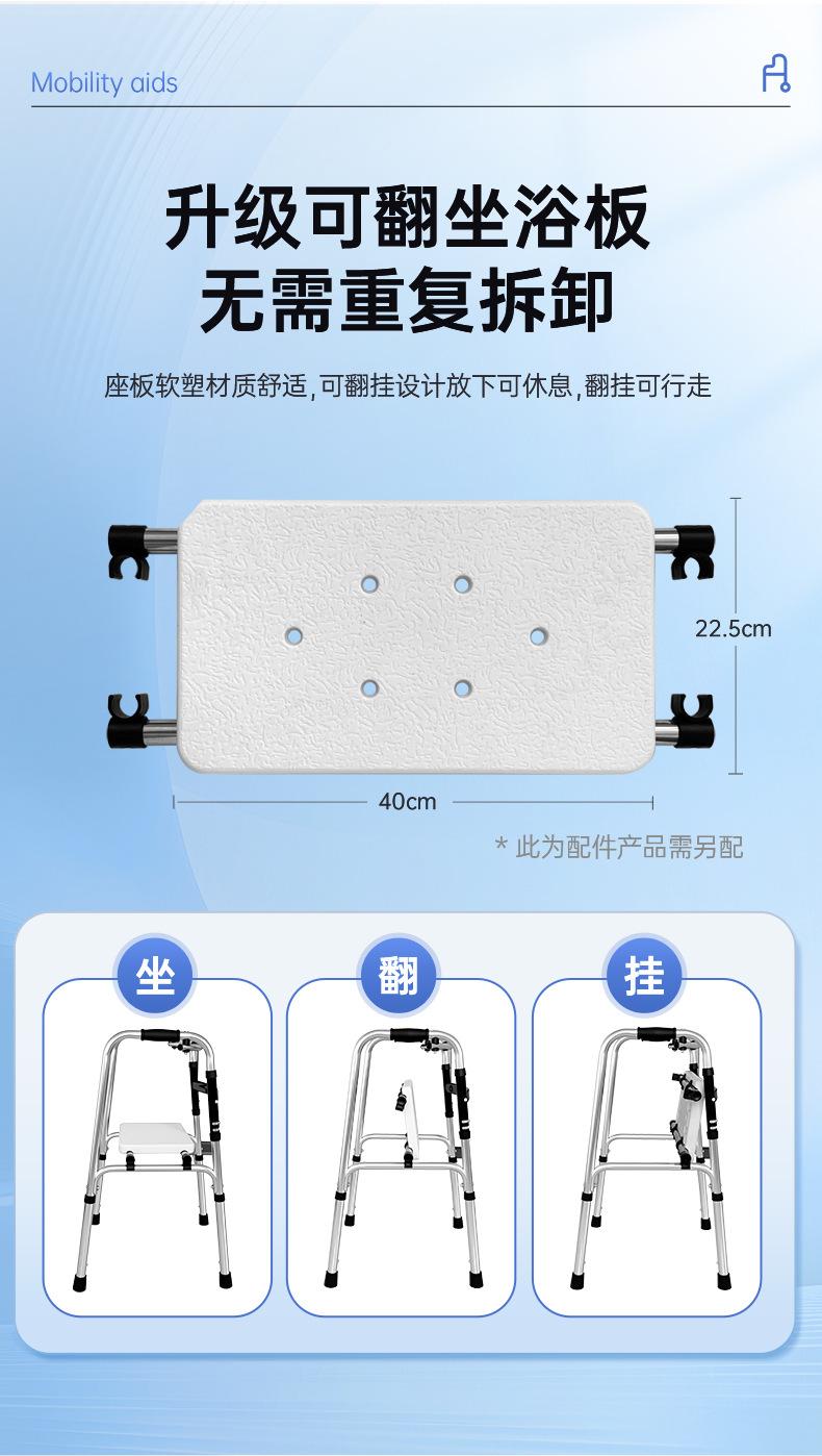 Double-bend stainless steel walker + soft seat + auxiliary wheels