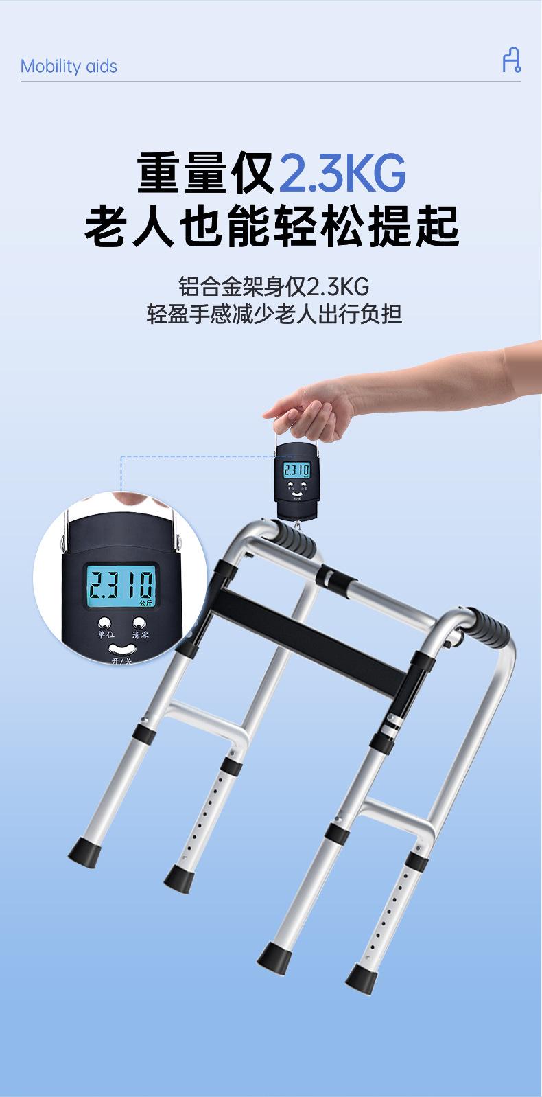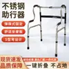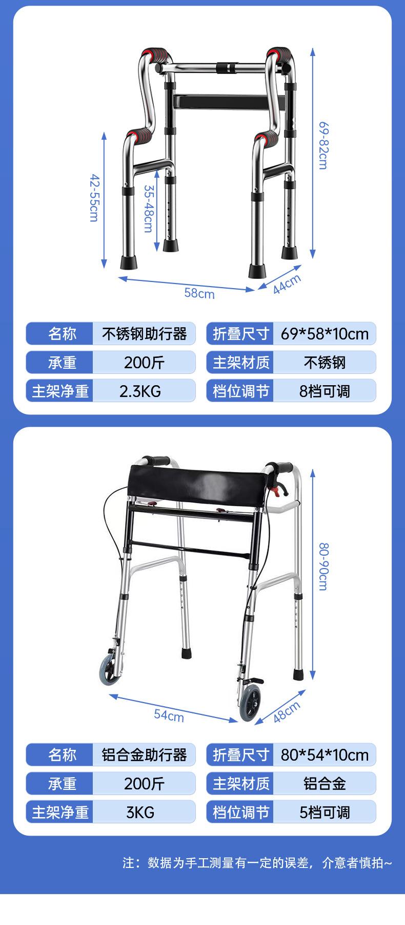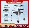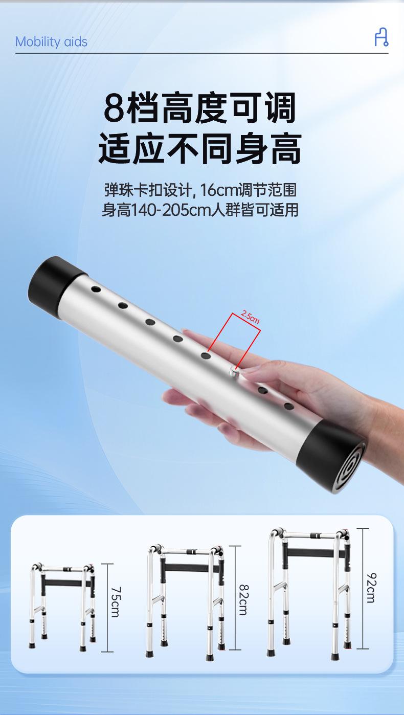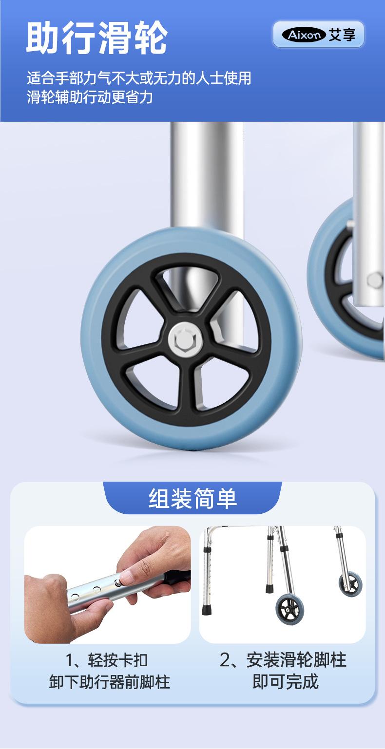 Double-bend stainless steel walker + soft seat + auxiliary wheels