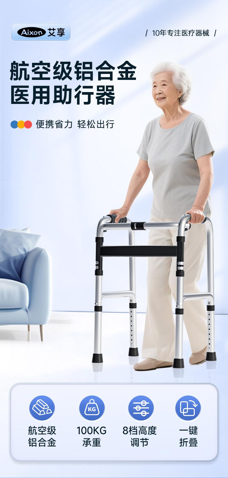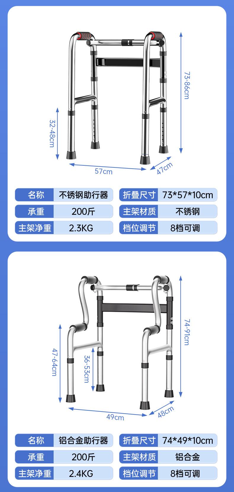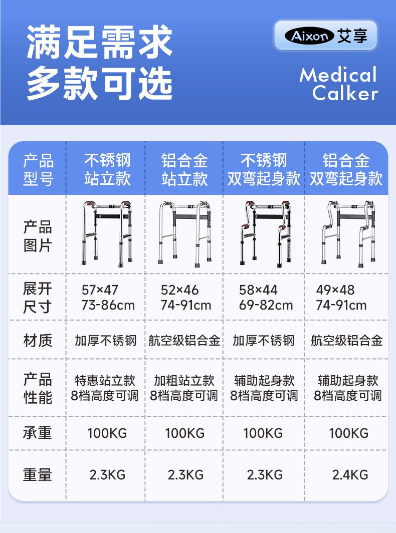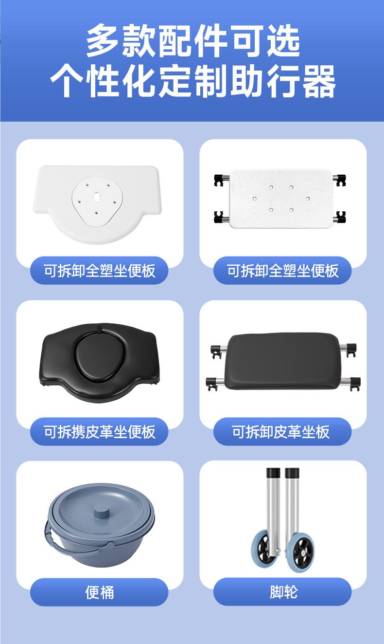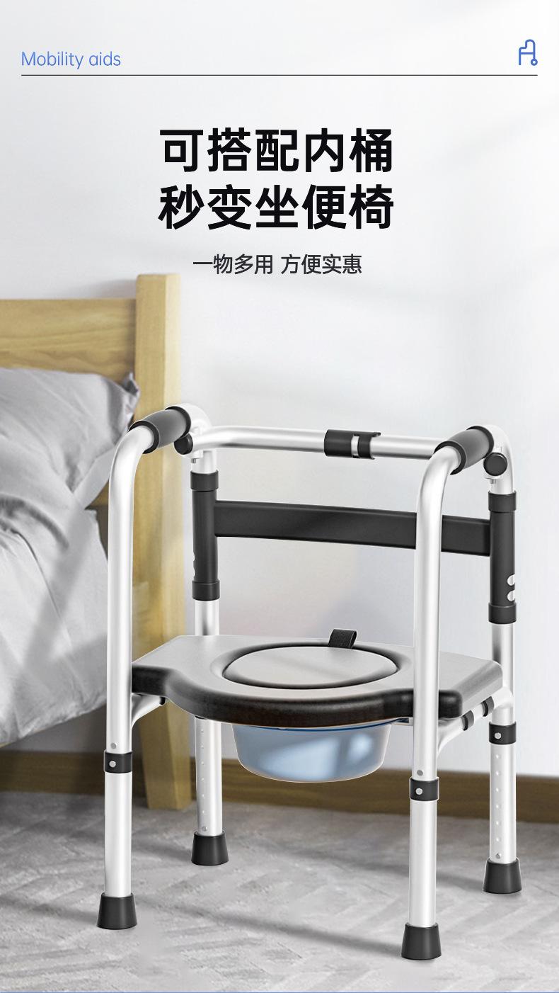 Double-bend stainless steel walker + soft seat + auxiliary wheels