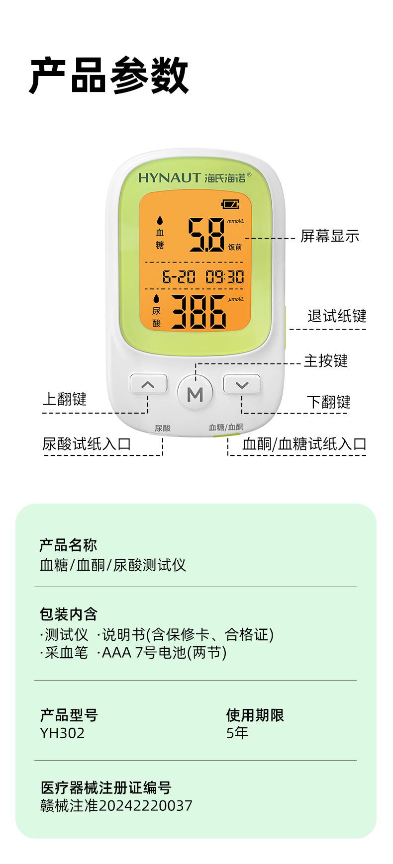 Haishengnuo Blood Glucose Blood Ketone Uric Acid Meter 1 unit, Haishi Hainuo Uric Acid Test Strips 25 pcs/box ...