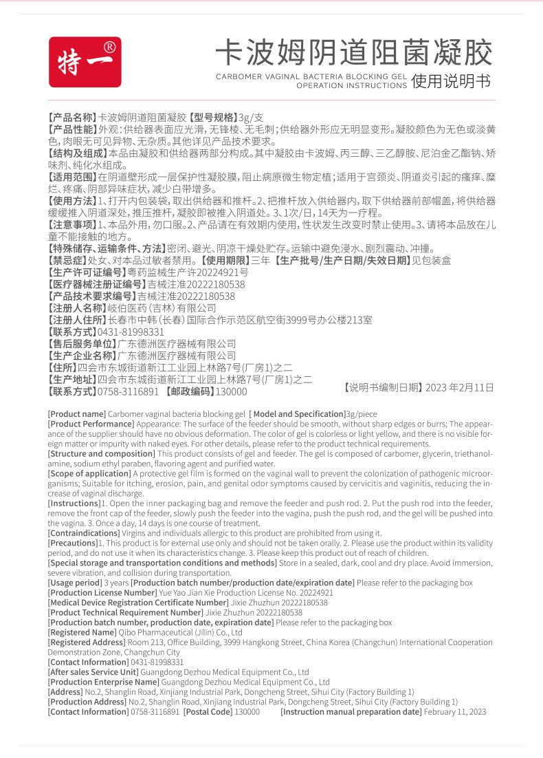 Carbomer Vaginal Bacteriostatic Gel 3pcs/box