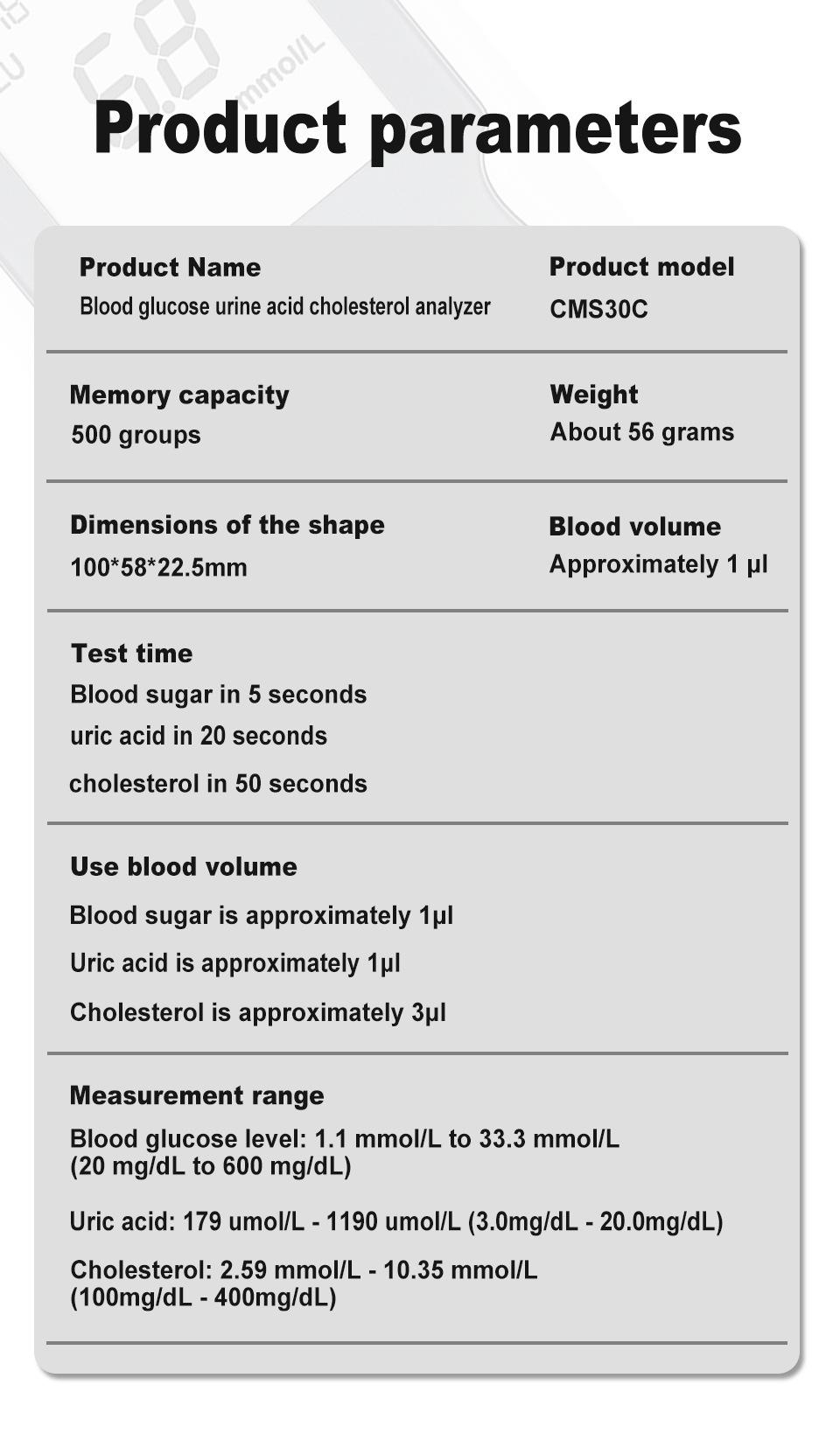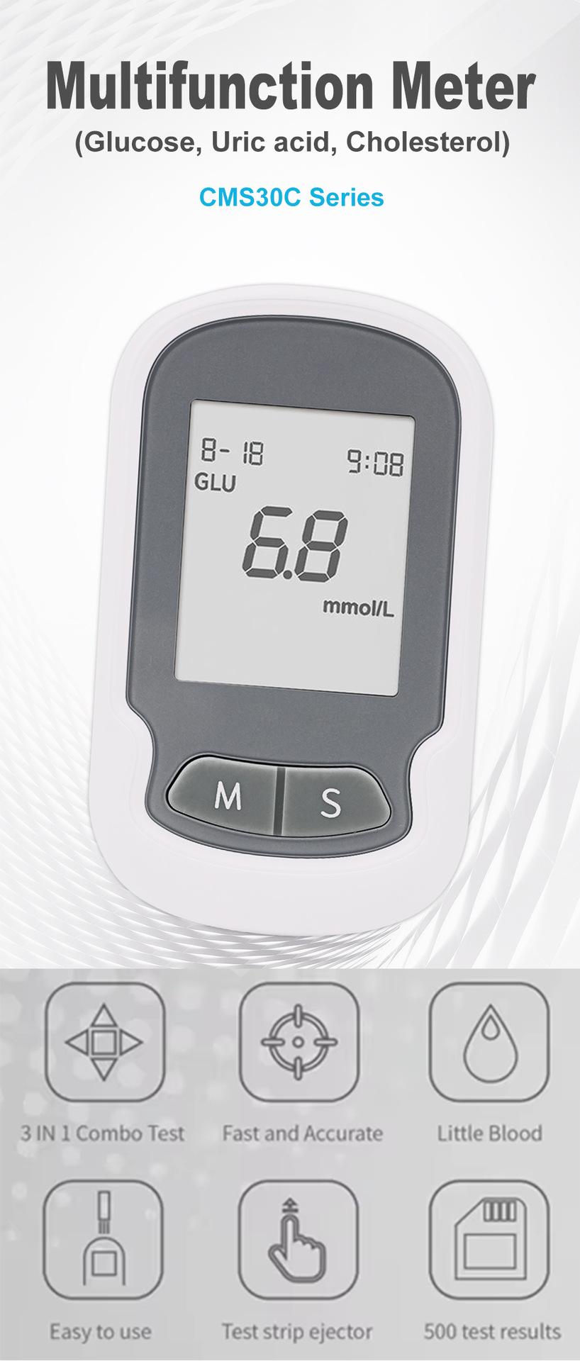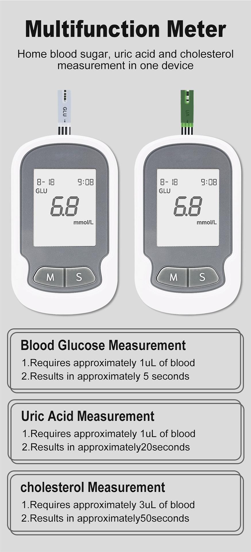 Modelo de Comercio Exterior Analizador de Colesterol Total Inglés Medidor de Ácido Úrico Medidor Casero de Glucosa en Sangre Tres en Uno