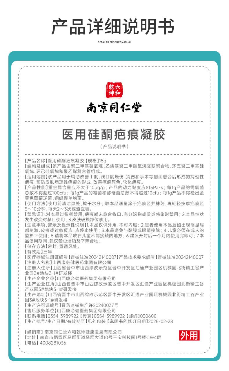 Gel de Silicona para Cicatrices Nanjing Tongrentang Mejora Cicatrices por Quemaduras y Traumatismos Post Cesárea Aclara Crema para Cicatrices Venta al por Mayor