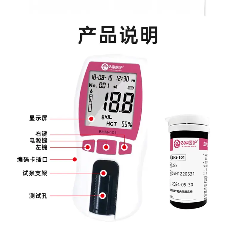 Analizador de Hemoglobina de Punto Cuidado Médico Multifuncional en Casa Tiras de Prueba de Anemia Punto Resultados Rápidos