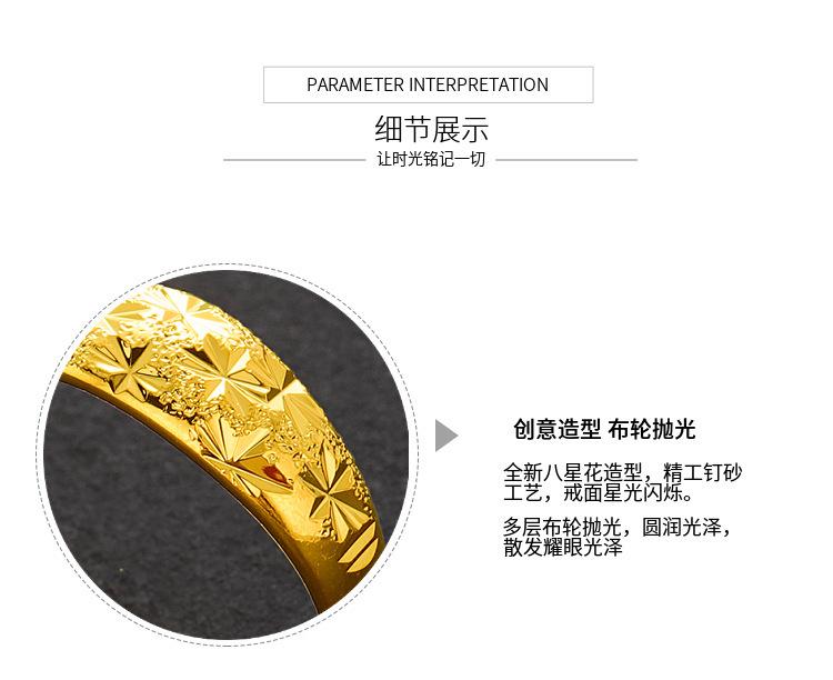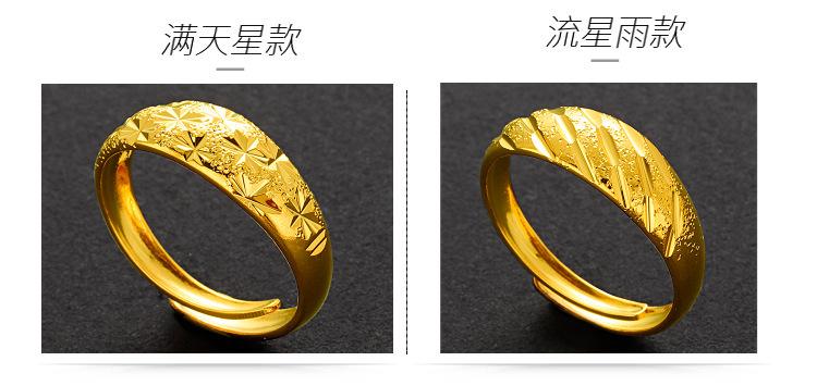 Anillo clásico de latón chapado en oro, anillo de oro de arena de Vietnam para hombres y mujeres, anillo abierto estrellado con retención de color chapado en oro de 24k.