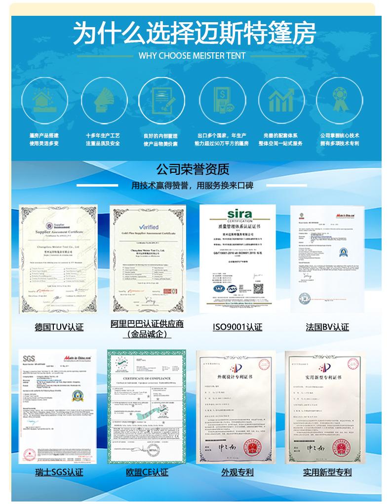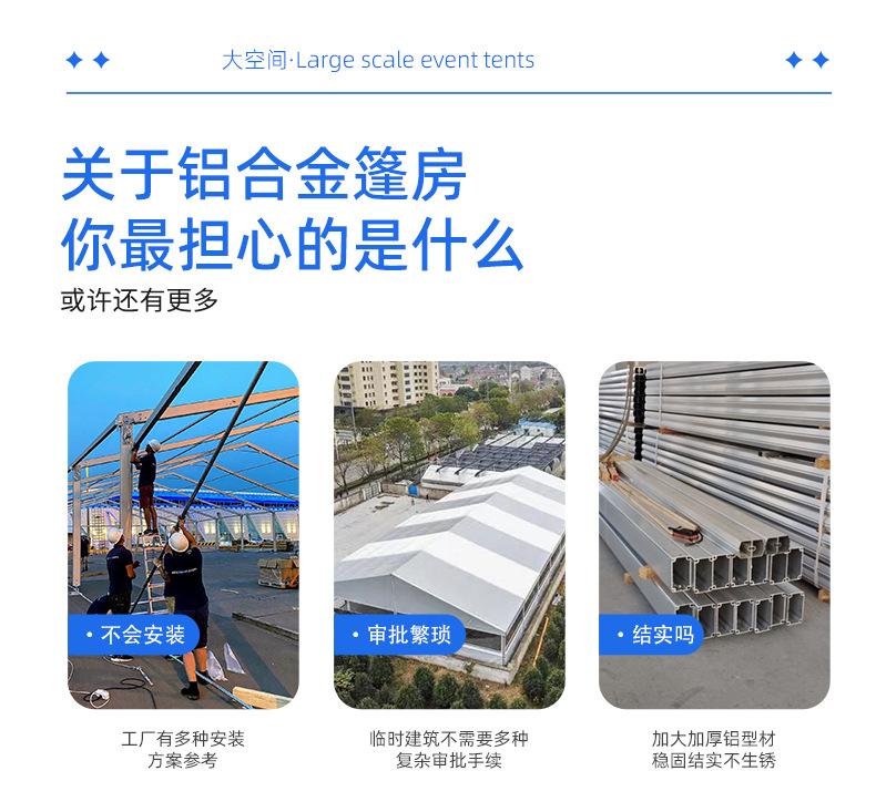 2. Rápida velocidad de construcción: teóricamente, solo se necesitan 12 horas para construir una carpa de 2000 metros cuadrados.