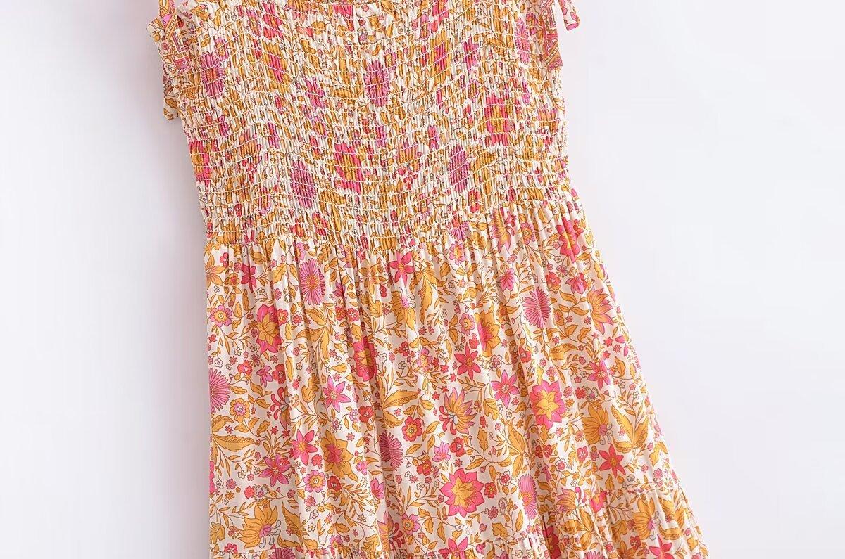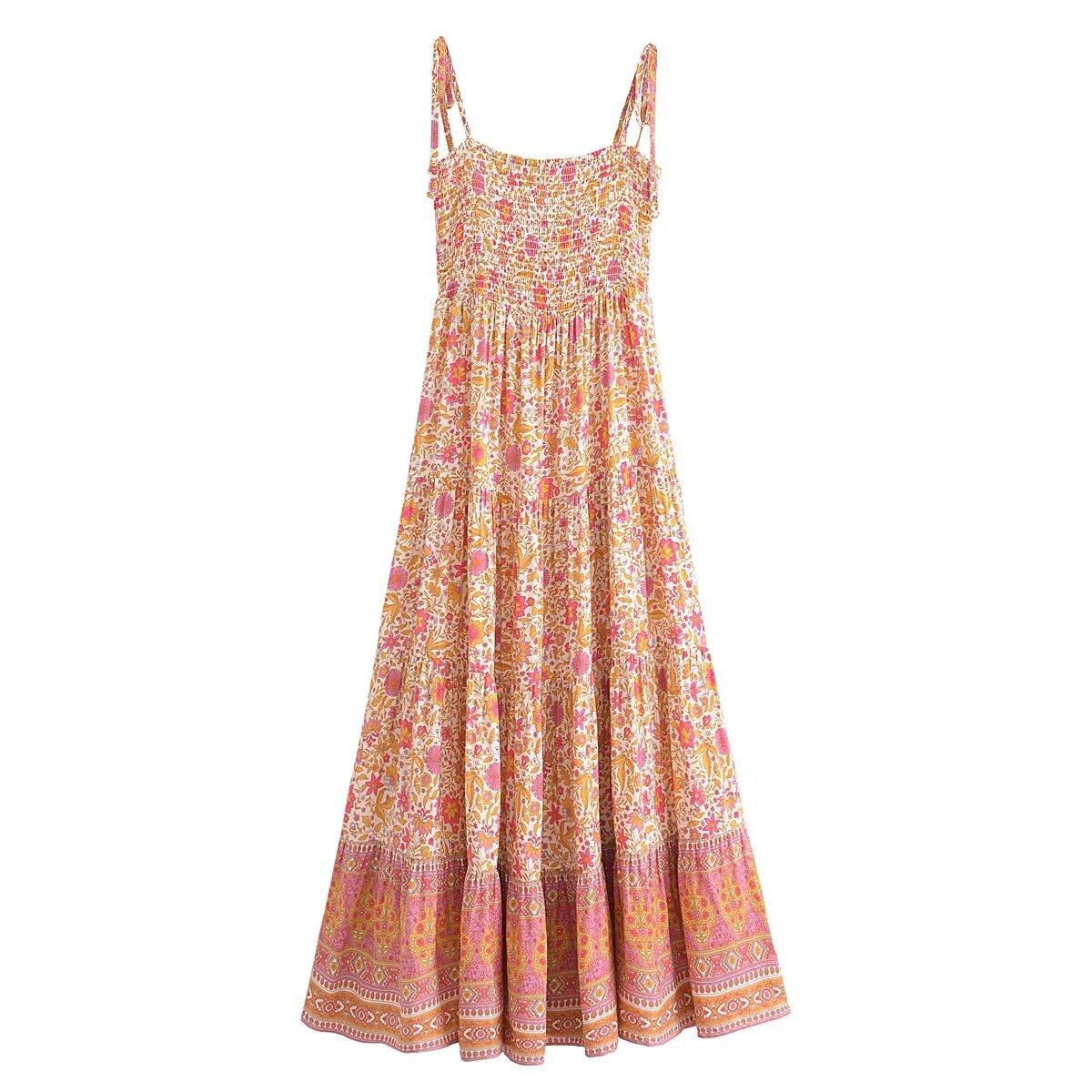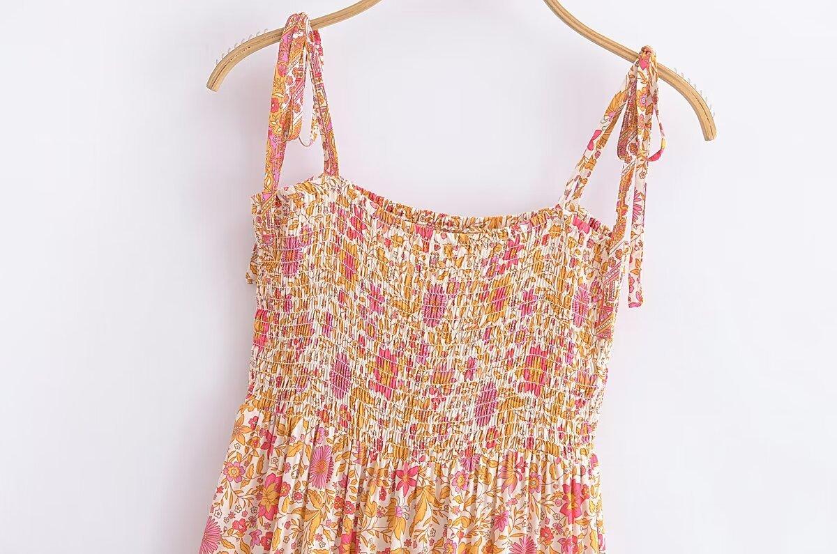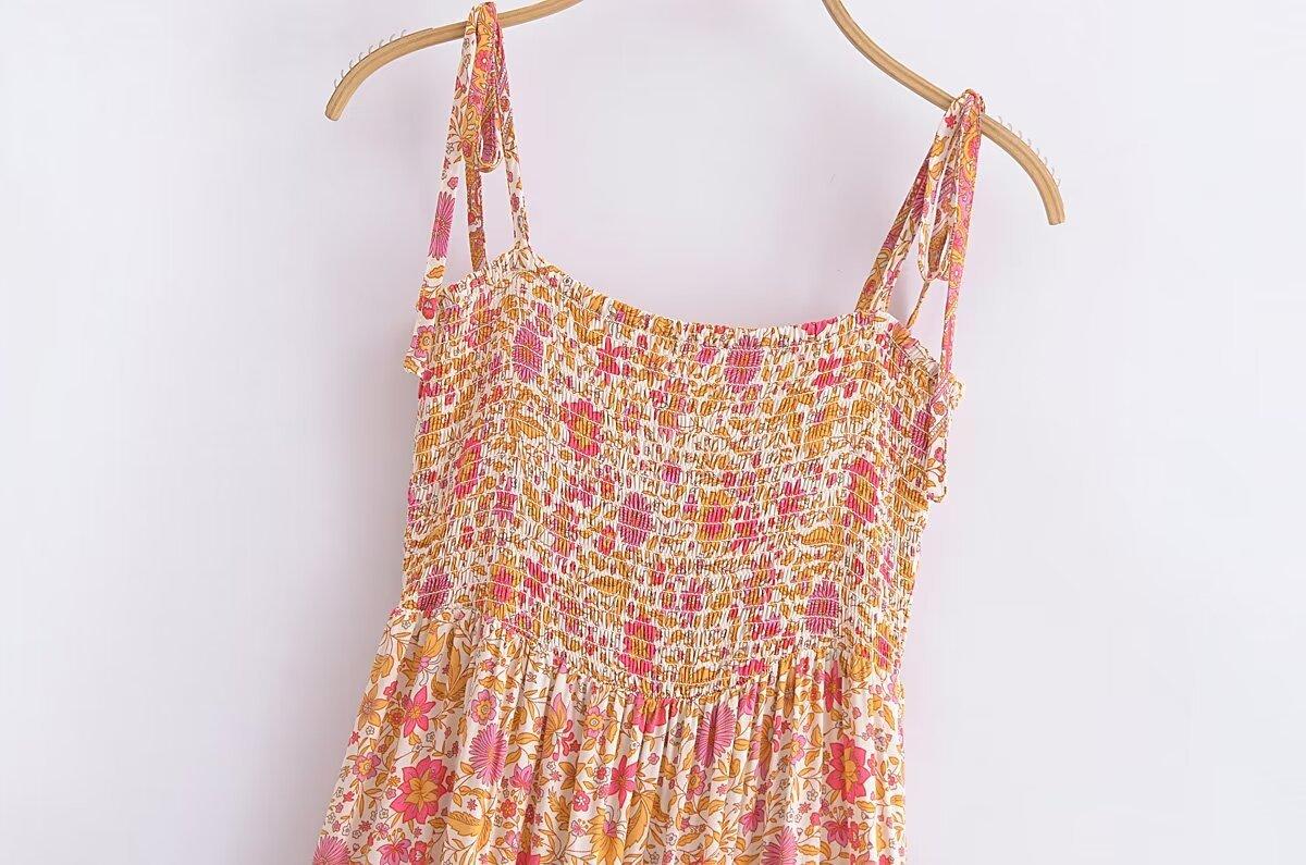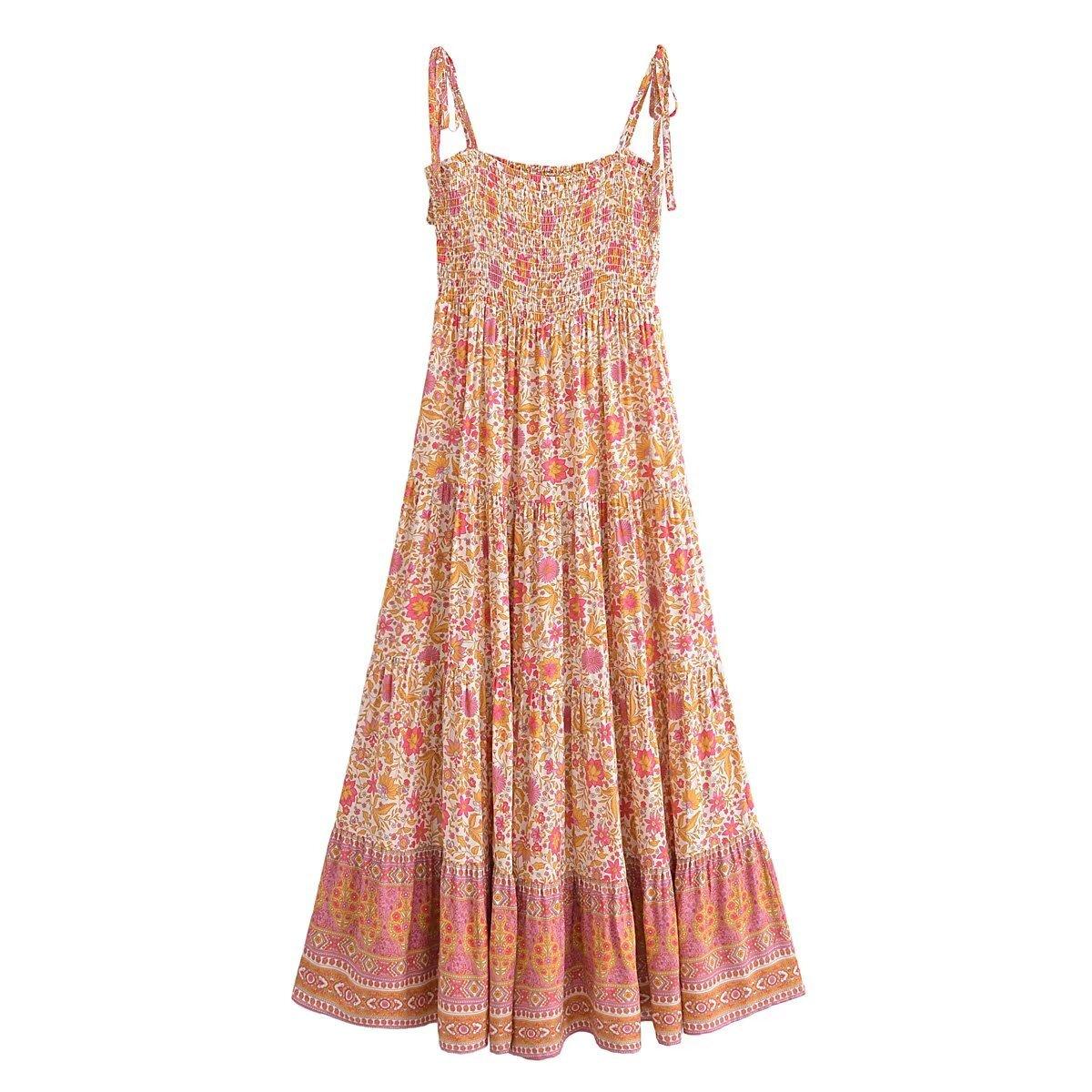 Venta al por mayor 2024 primavera nuevo estilo europeo y americano vestido rosa de tirantes con estampado posicionado para mujer