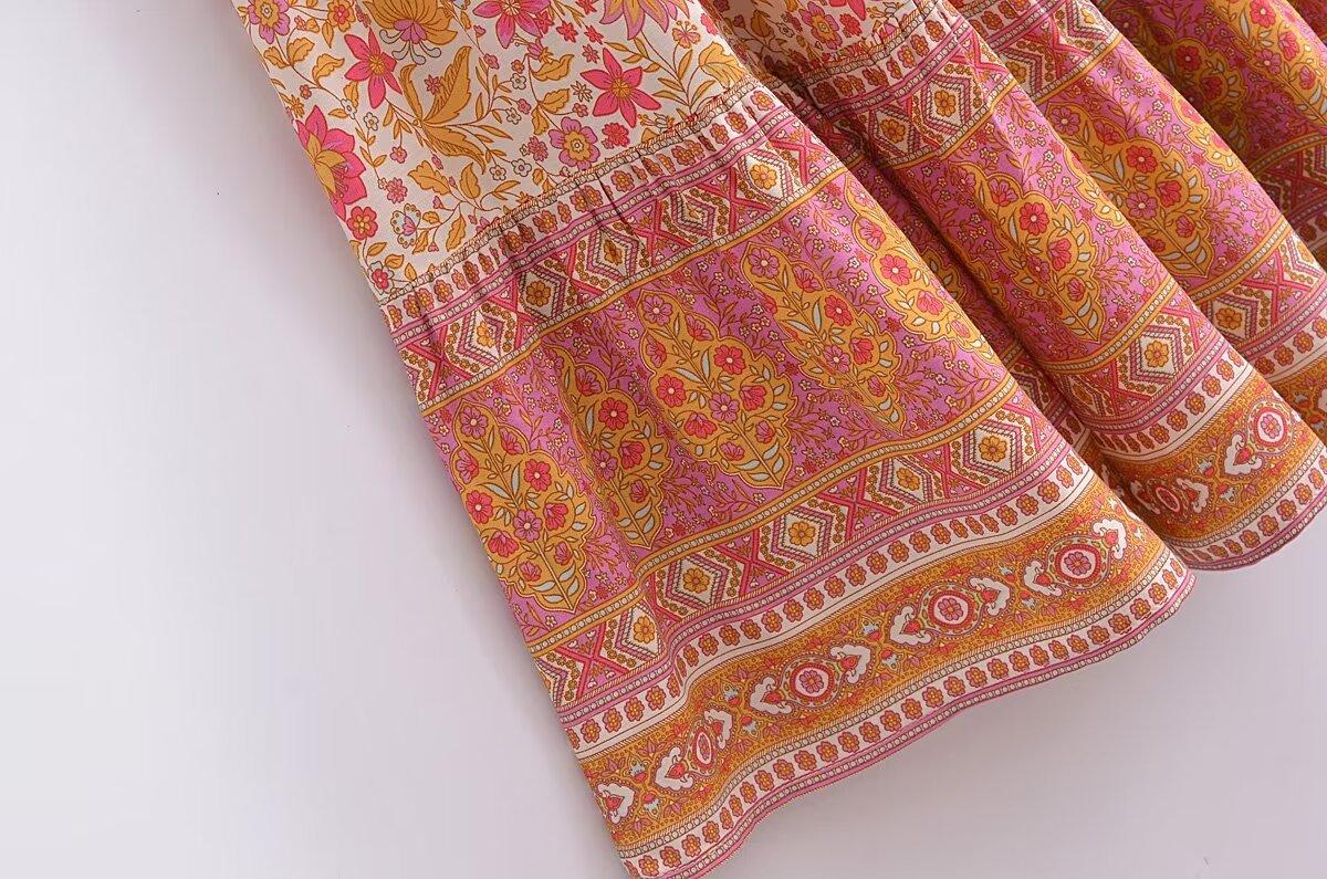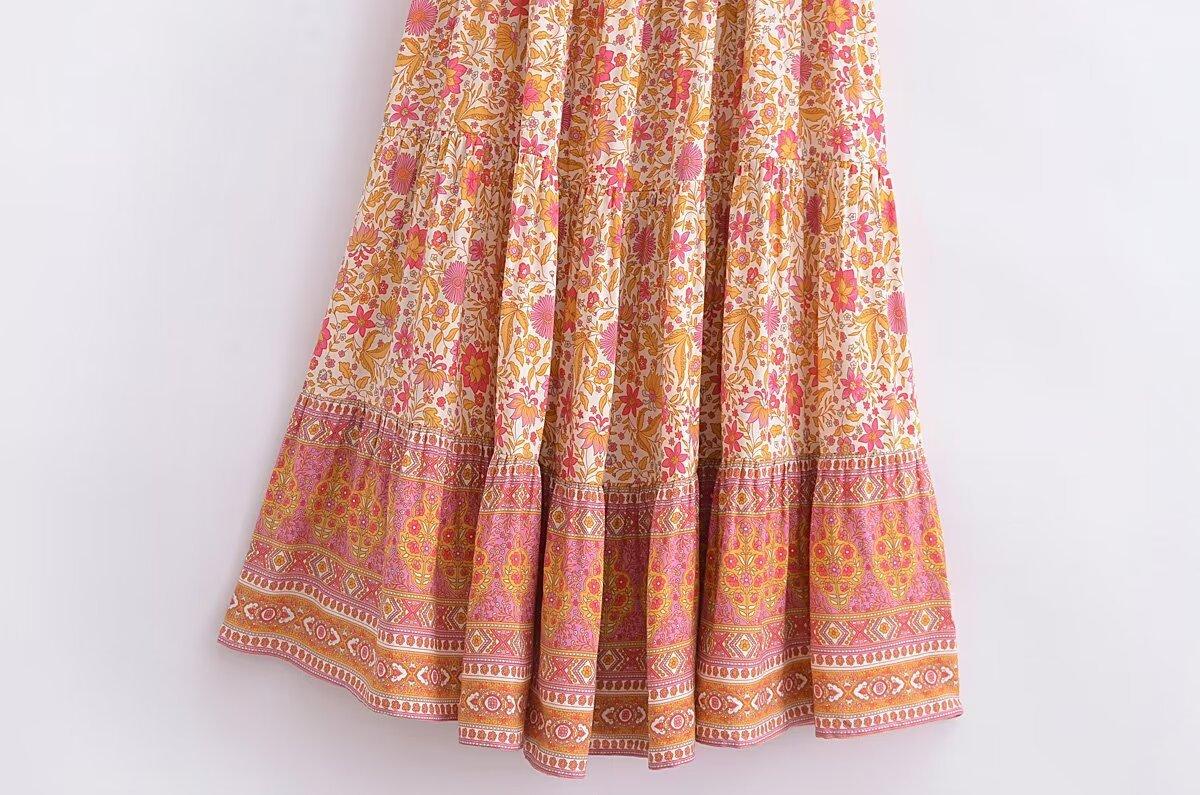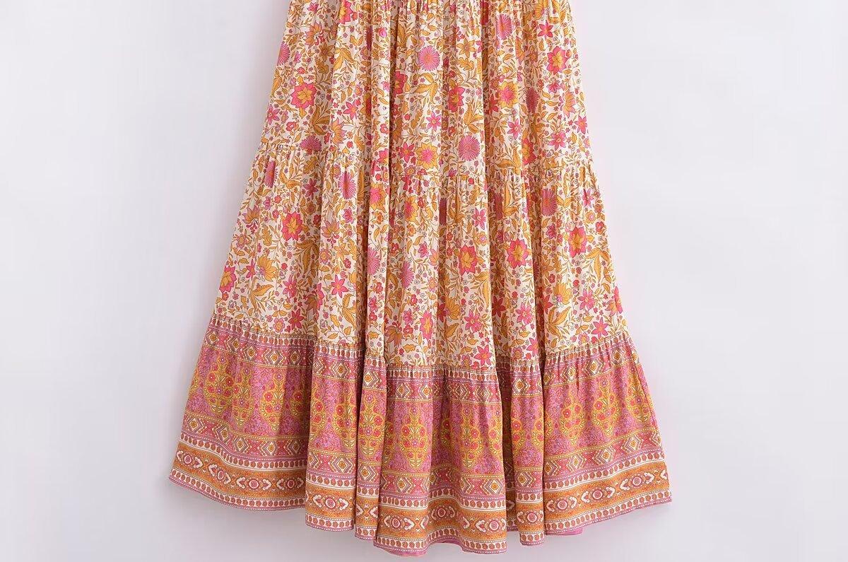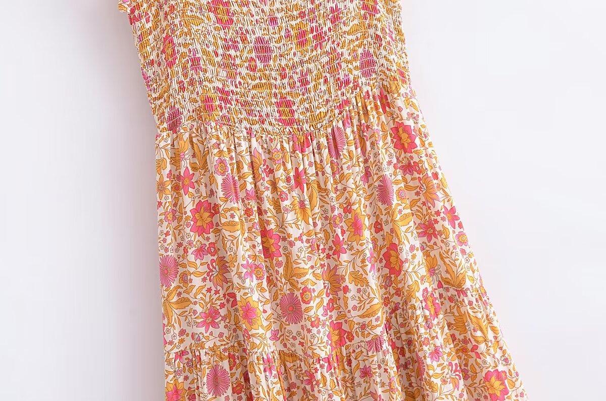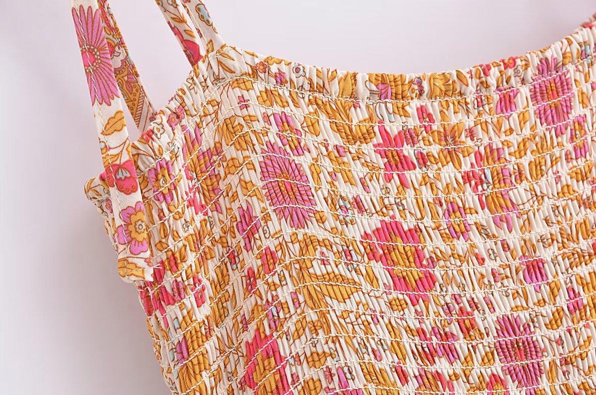 Venta al por mayor 2024 primavera nuevo estilo europeo y americano vestido rosa de tirantes con estampado posicionado para mujer