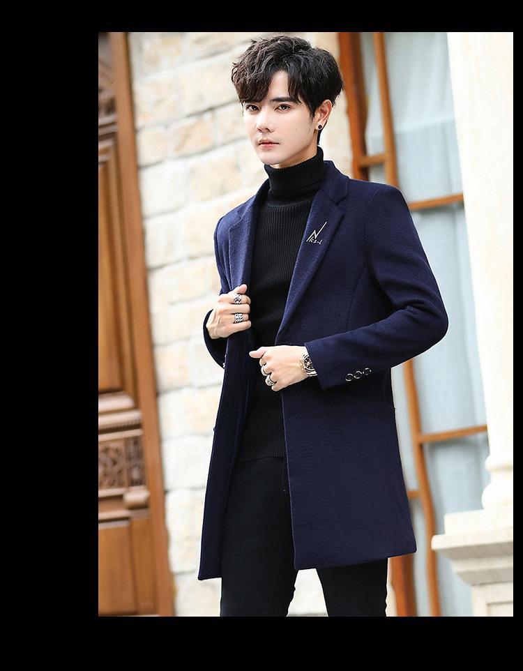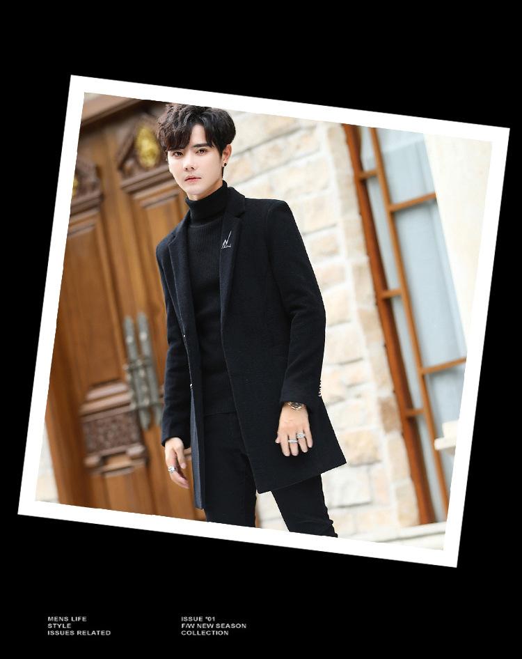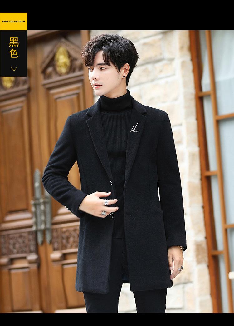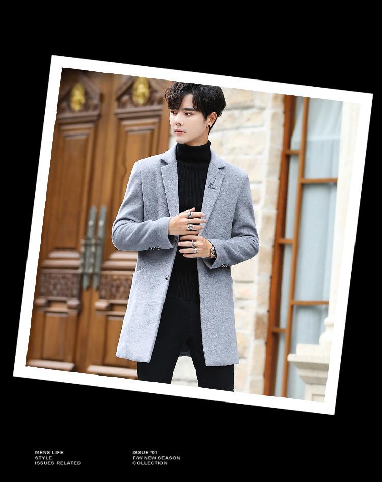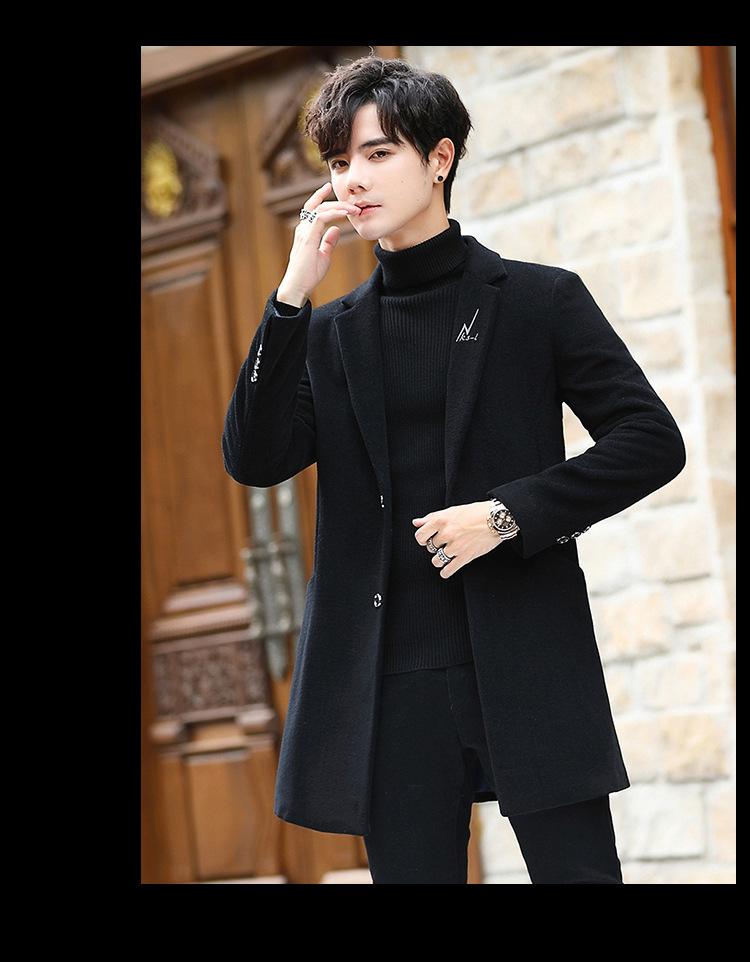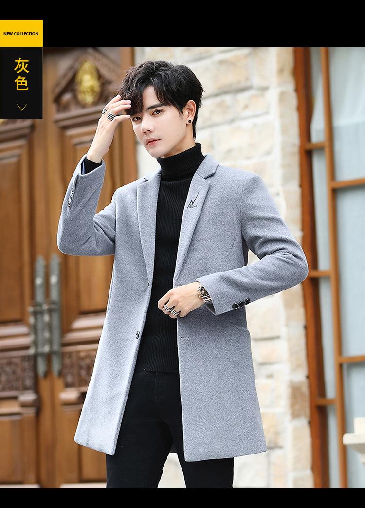 Compra Abrigo de Lana para Hombre Estilo Coreano de Otoño e Invierno Moderno Guapo Ajustado Abrigo Trench para Hombre Largo hasta la Rodilla Abrigo de Lana para Hombre al por mayor en Joom.pro