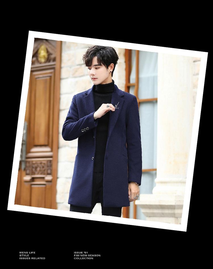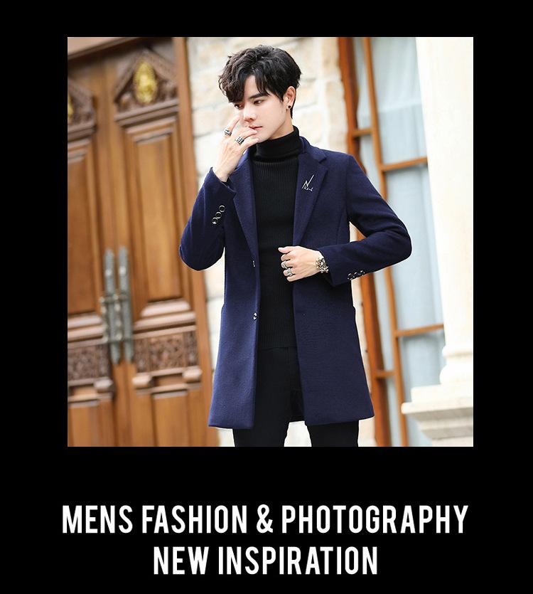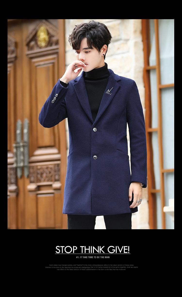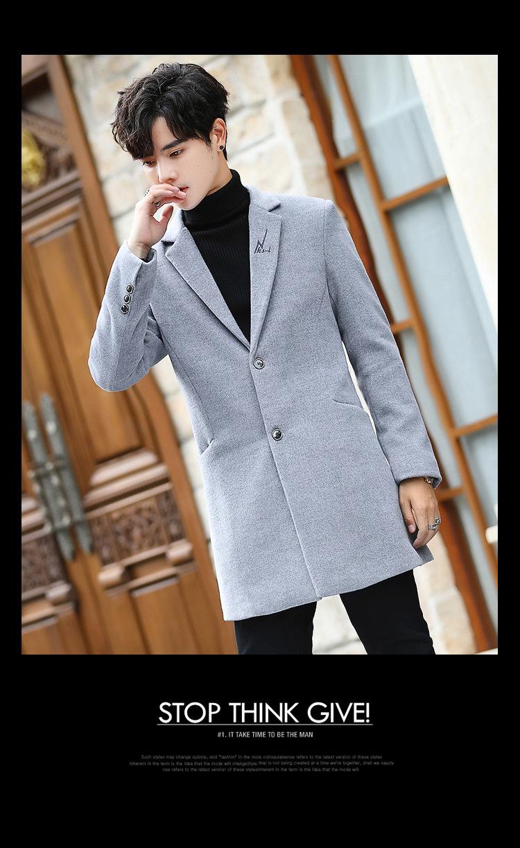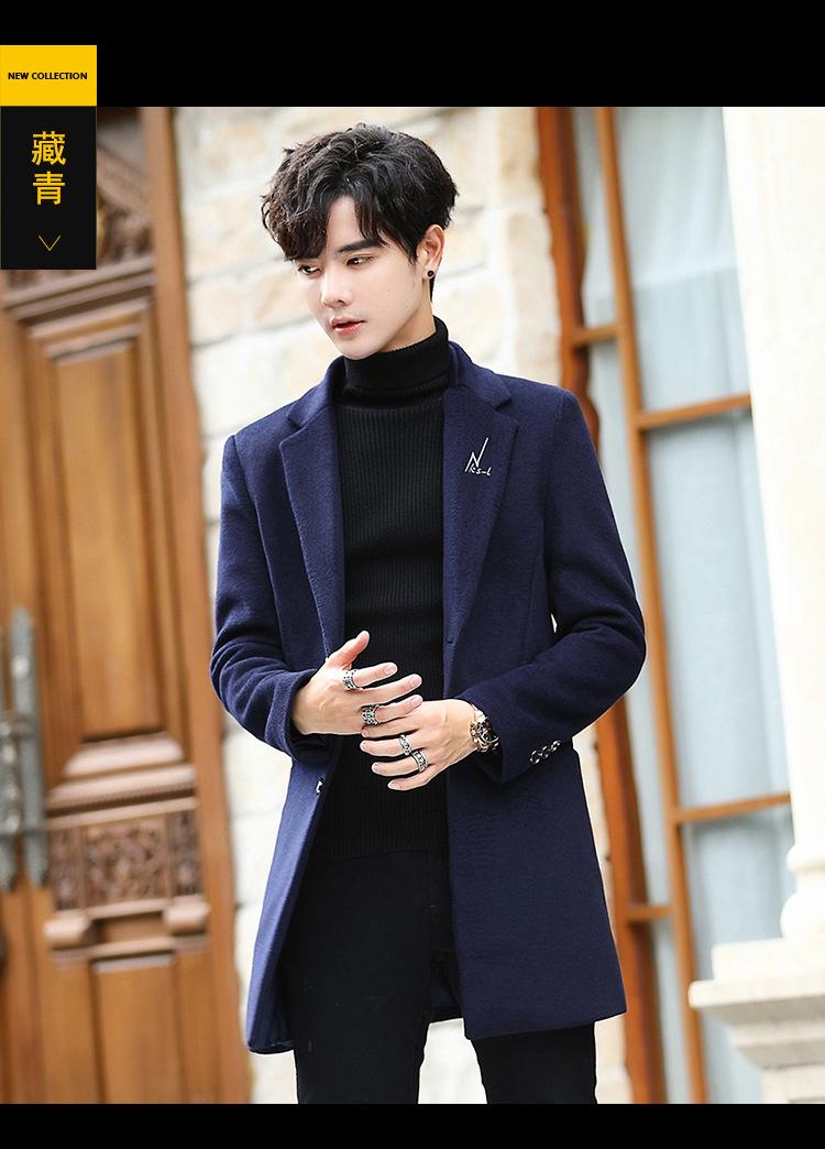 Compra Abrigo de Lana para Hombre Estilo Coreano de Otoño e Invierno Moderno Guapo Ajustado Abrigo Trench para Hombre Largo hasta la Rodilla Abrigo de Lana para Hombre al por mayor en Joom.pro