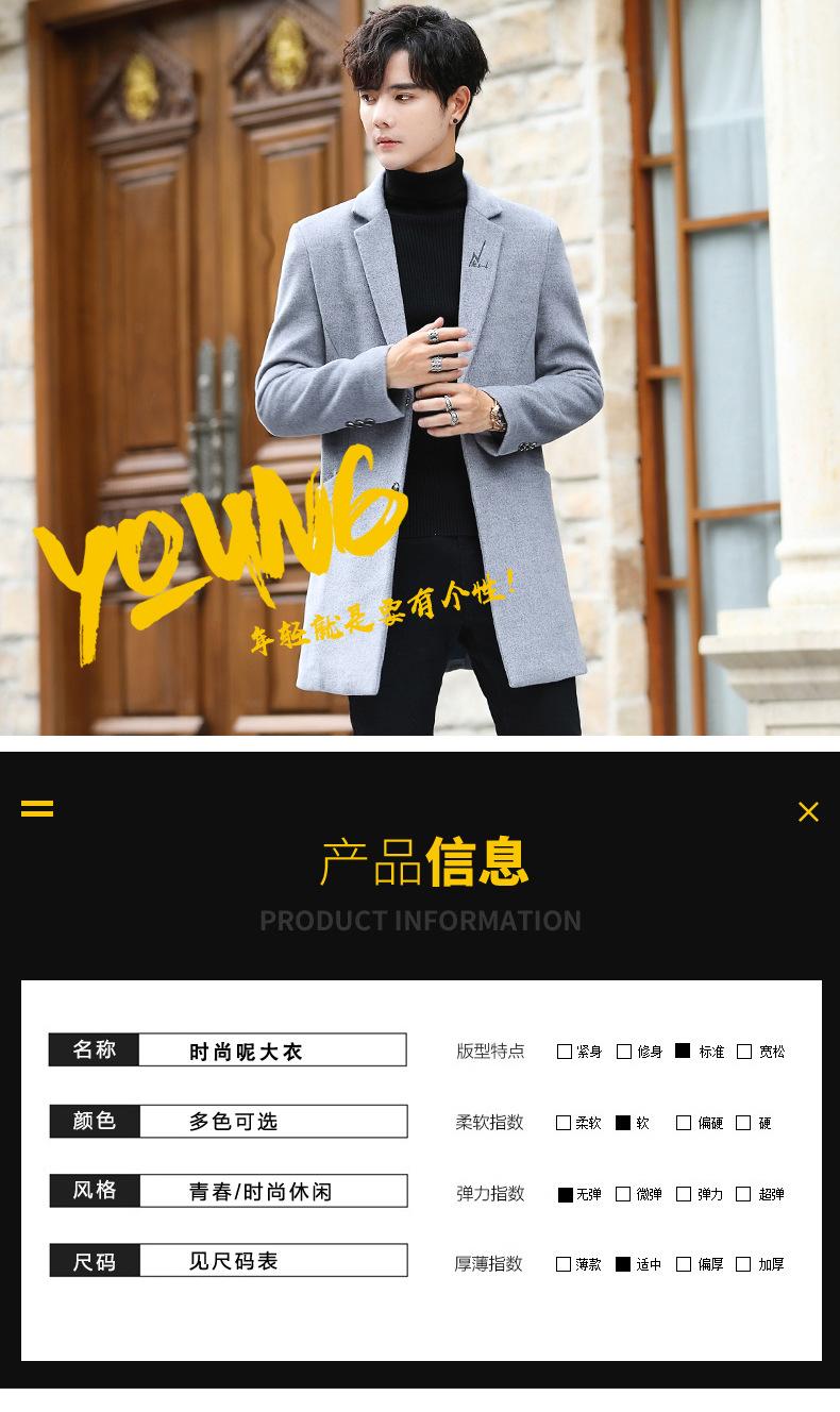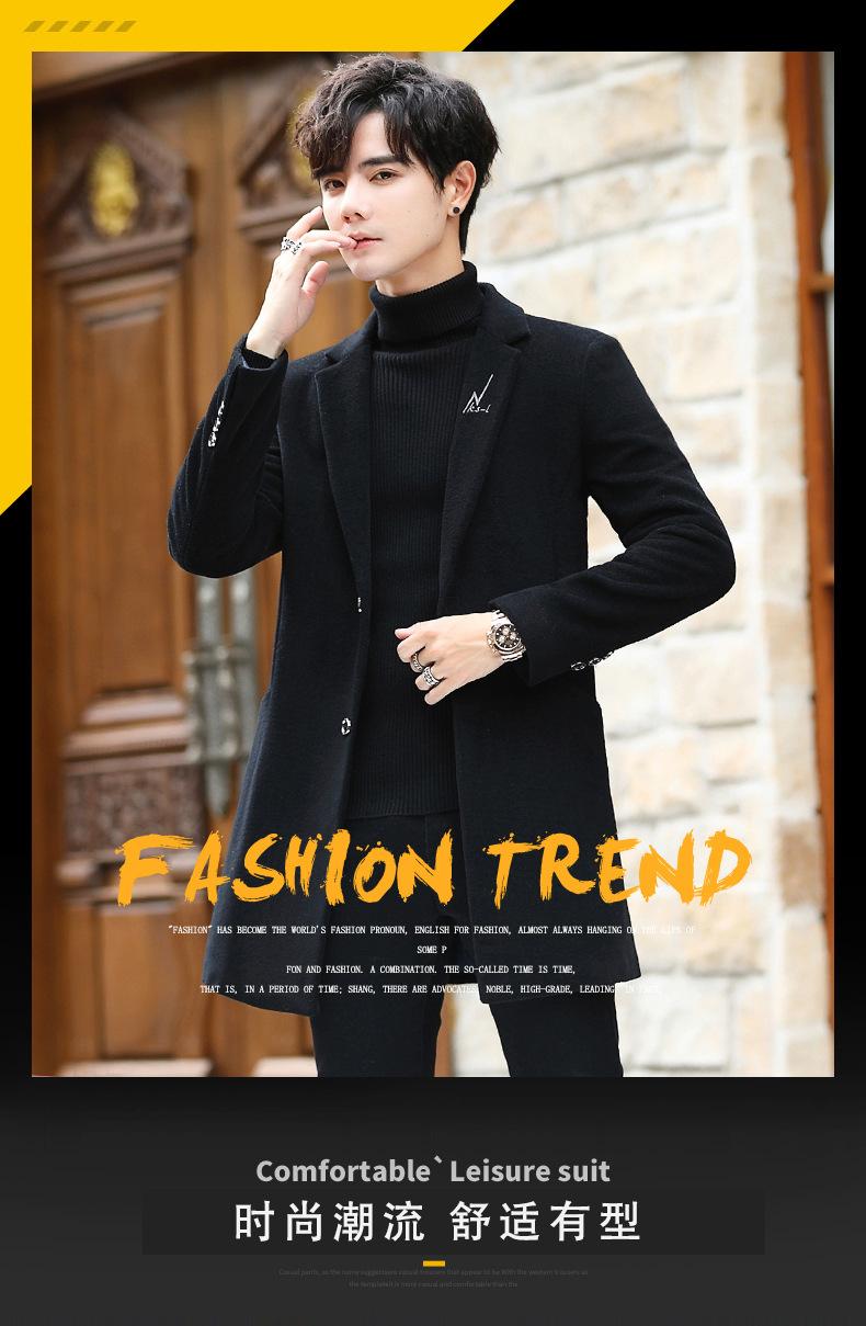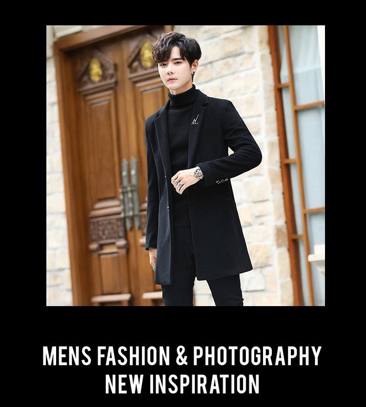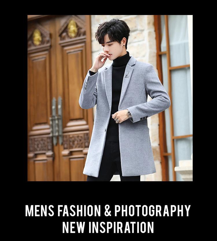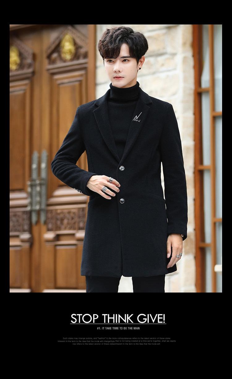 Compra Abrigo de Lana para Hombre Estilo Coreano de Otoño e Invierno Moderno Guapo Ajustado Abrigo Trench para Hombre Largo hasta la Rodilla Abrigo de Lana para Hombre al por mayor en Joom.pro