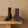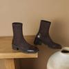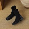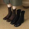 Botas de caballero de gamuza de tacón medio para otoño e invierno para mujer, cómodas, sin cordones, de tacón cuadrado, de cuero, estilo coreano, punta cuadrada, suela de goma, botas de media caña para mujer
