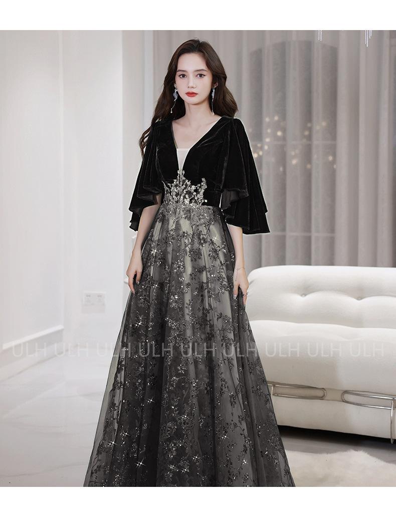 Vestido de Noche de Moda para Mujer 2025 Nuevo Banquete Elegante Cuello en V Largo Fiesta Anual Celebridad Cumpleaños Vestido de Alta Gama