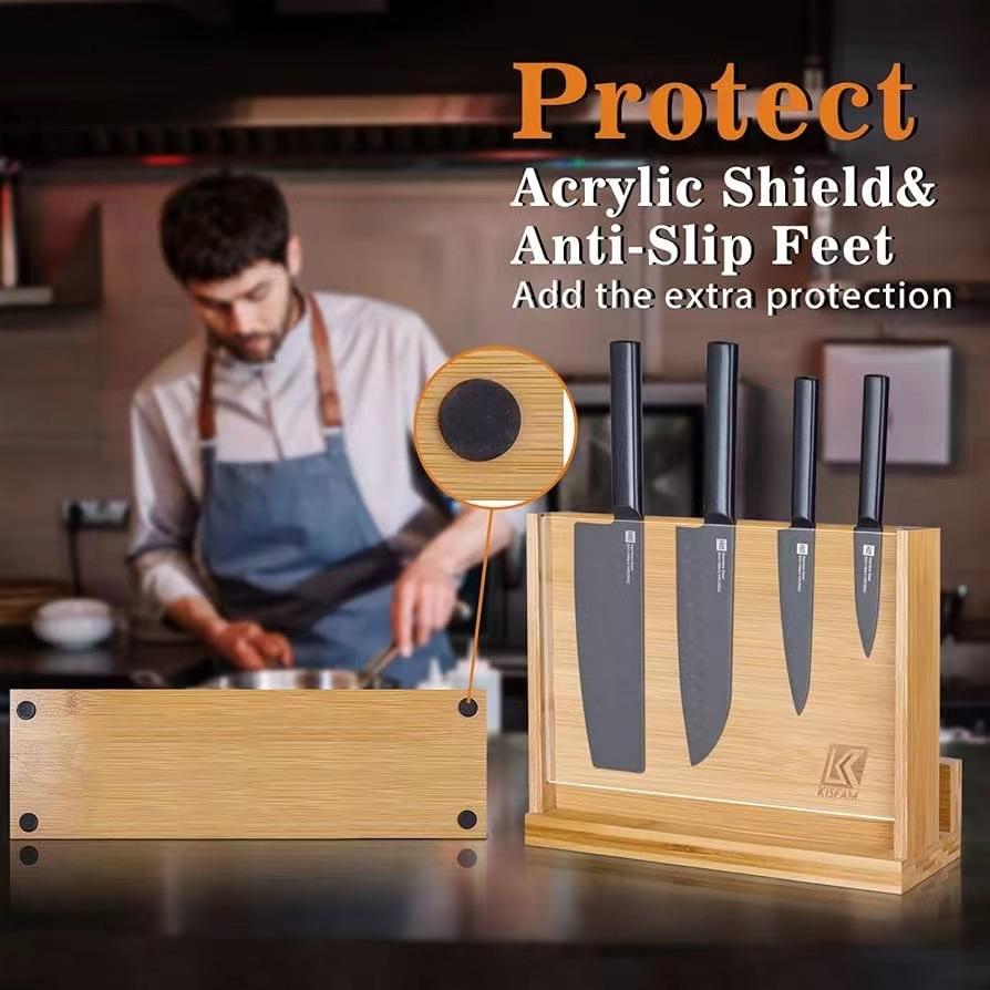Nuevo Soporte para Cuchillos de Bambú de Madera Estante de Almacenamiento Multifuncional Encimera Soporte para Cuchillos de Cocina Estante para Guardar Cuchillos