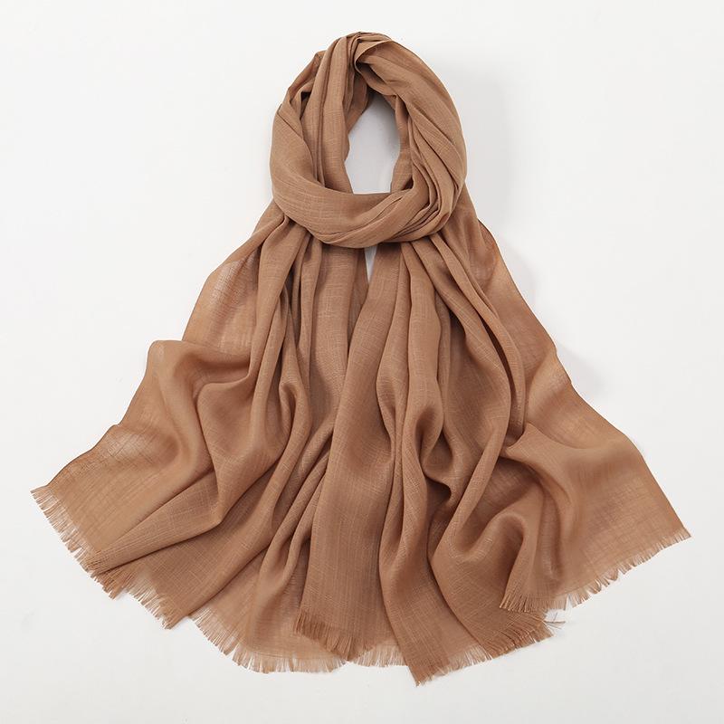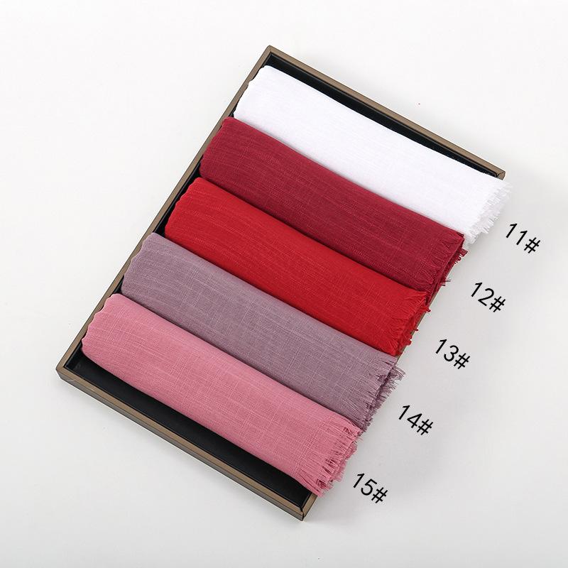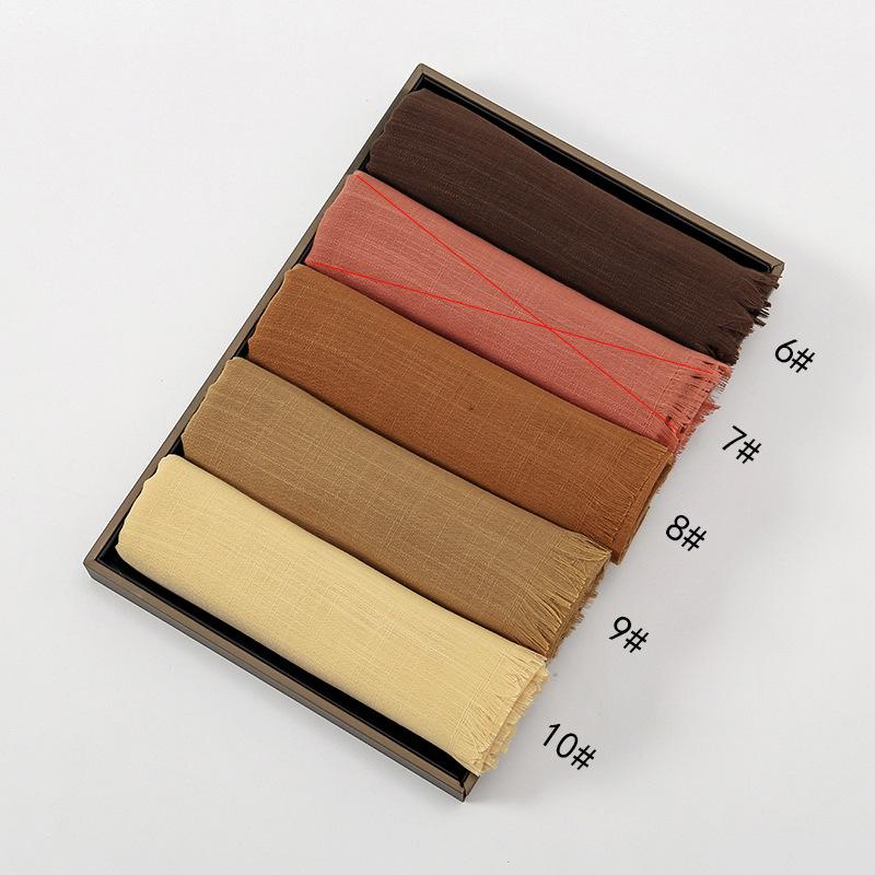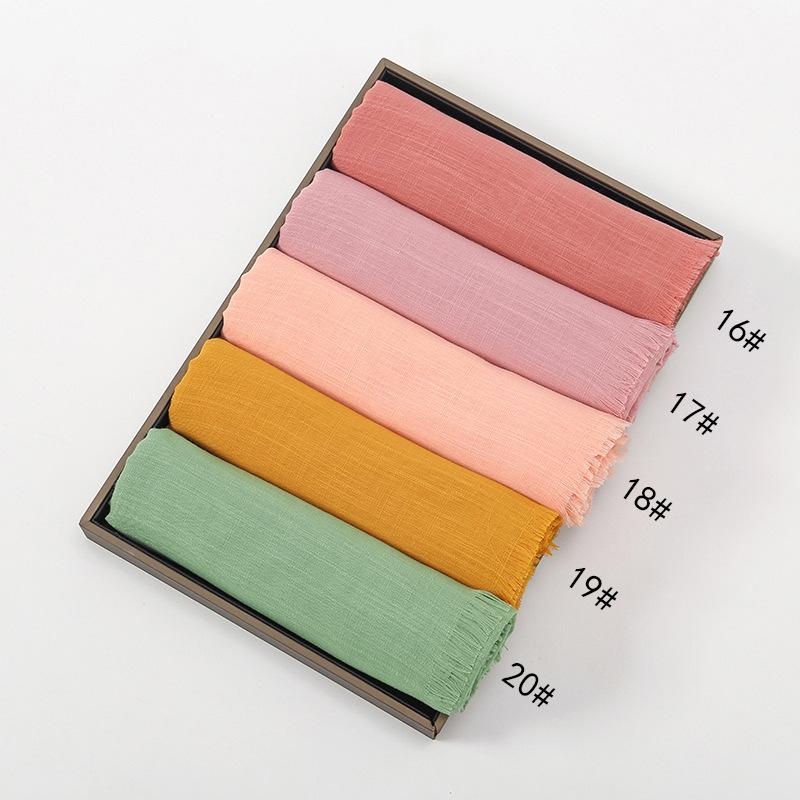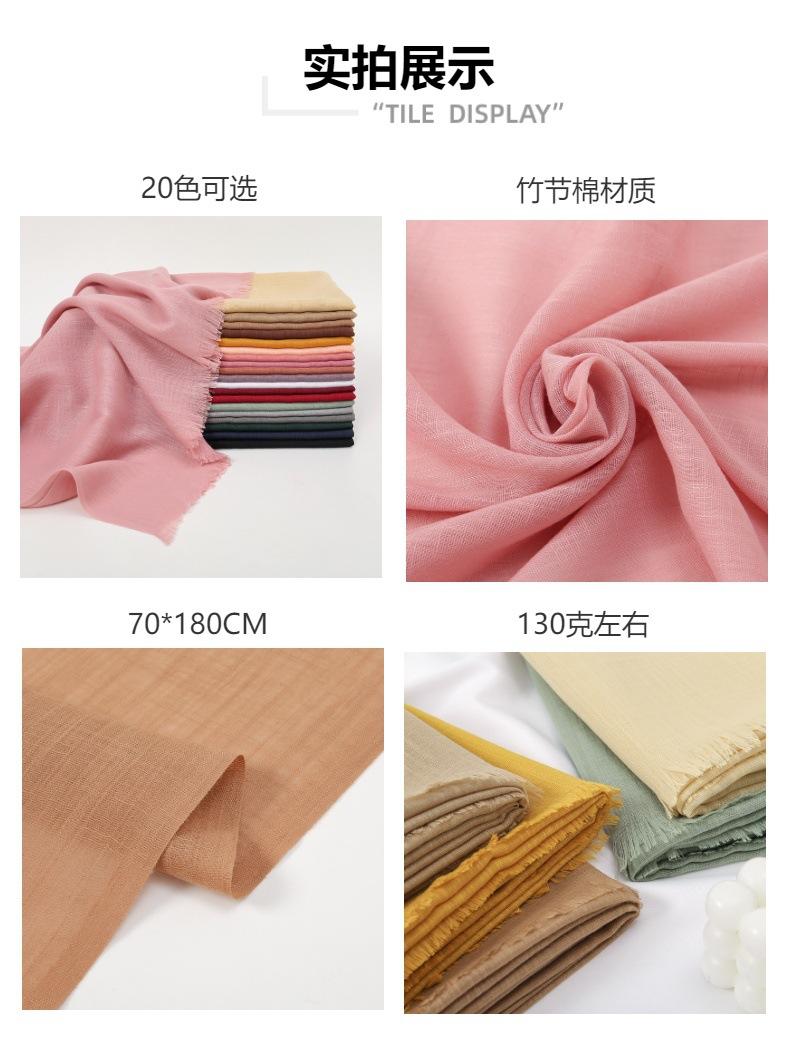 Bufanda Lisa de Algodón de Bambú Nuevo 2024 Transfronteriza con Tacto de Algodón y Lino, Turbante para Mujer con Borde de Flecos, Chal Versátil para Todas las Estaciones