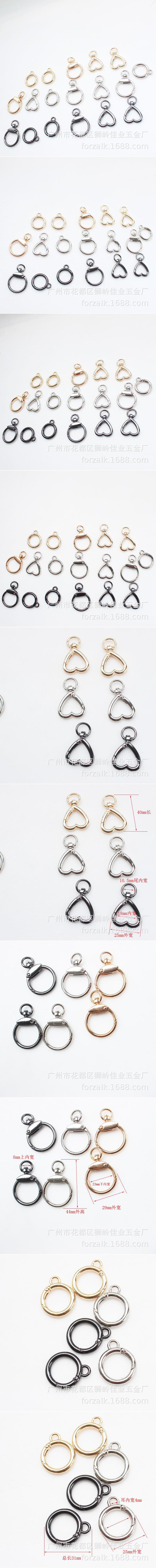 Anillo de resorte hebilla ocho corazón de durazno círculo gancho de amor redondo pequeño anillo de resorte en stock