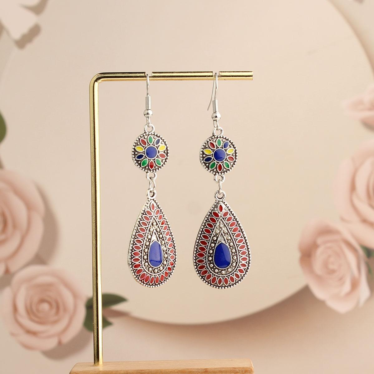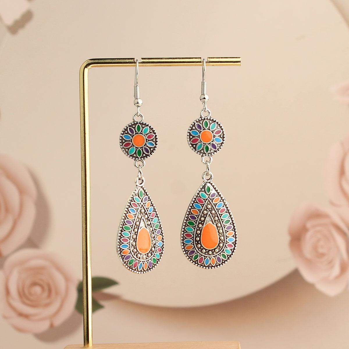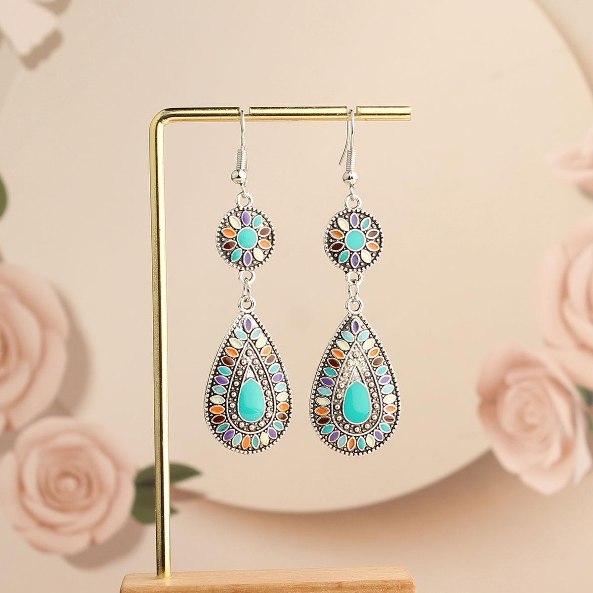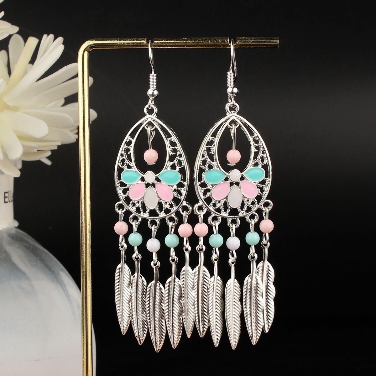 Nuevos Pendientes Étnicos Transfronterizos de Lágrima con Esmalte de Color y Flores, Pendientes Colgantes Versátiles con Borla de Aleación Vintage Bohemia