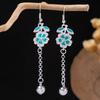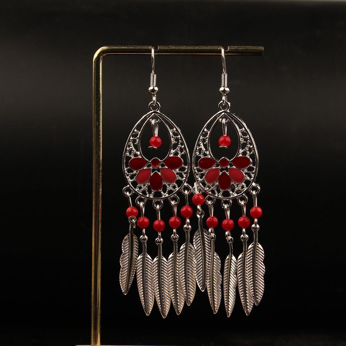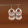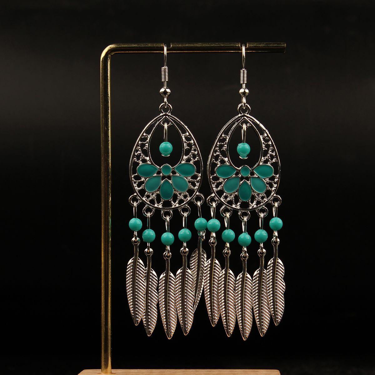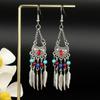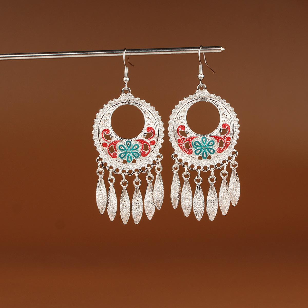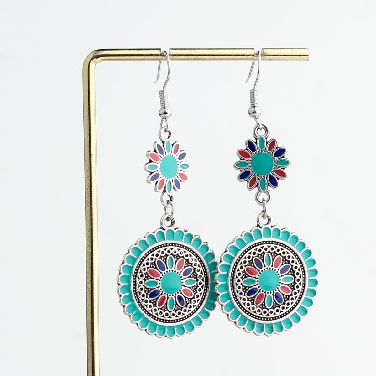 Nuevos Pendientes Étnicos Transfronterizos de Lágrima con Esmalte de Color y Flores, Pendientes Colgantes Versátiles con Borla de Aleación Vintage Bohemia