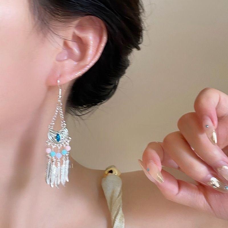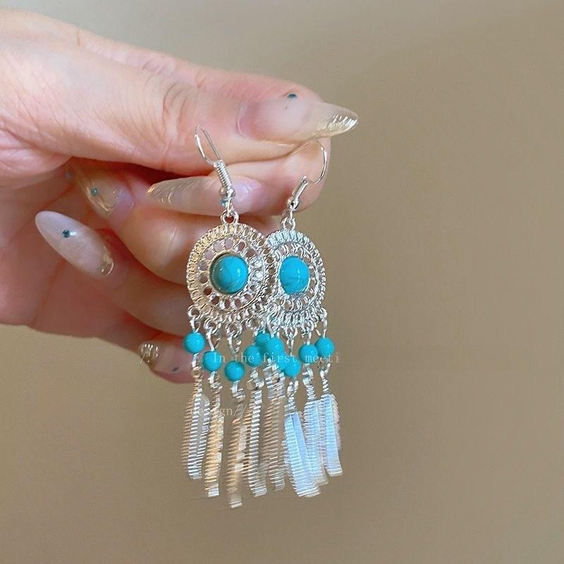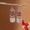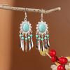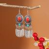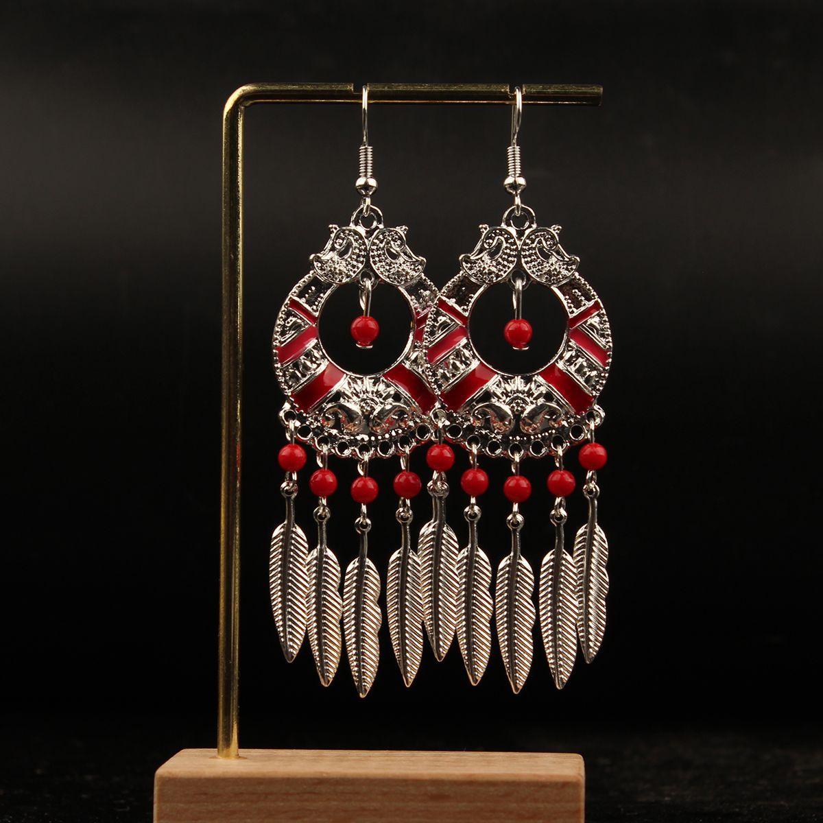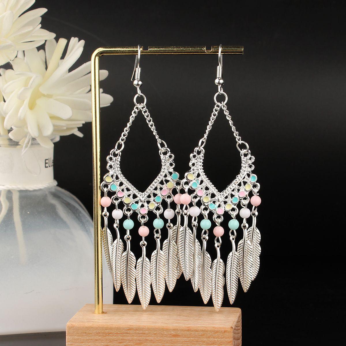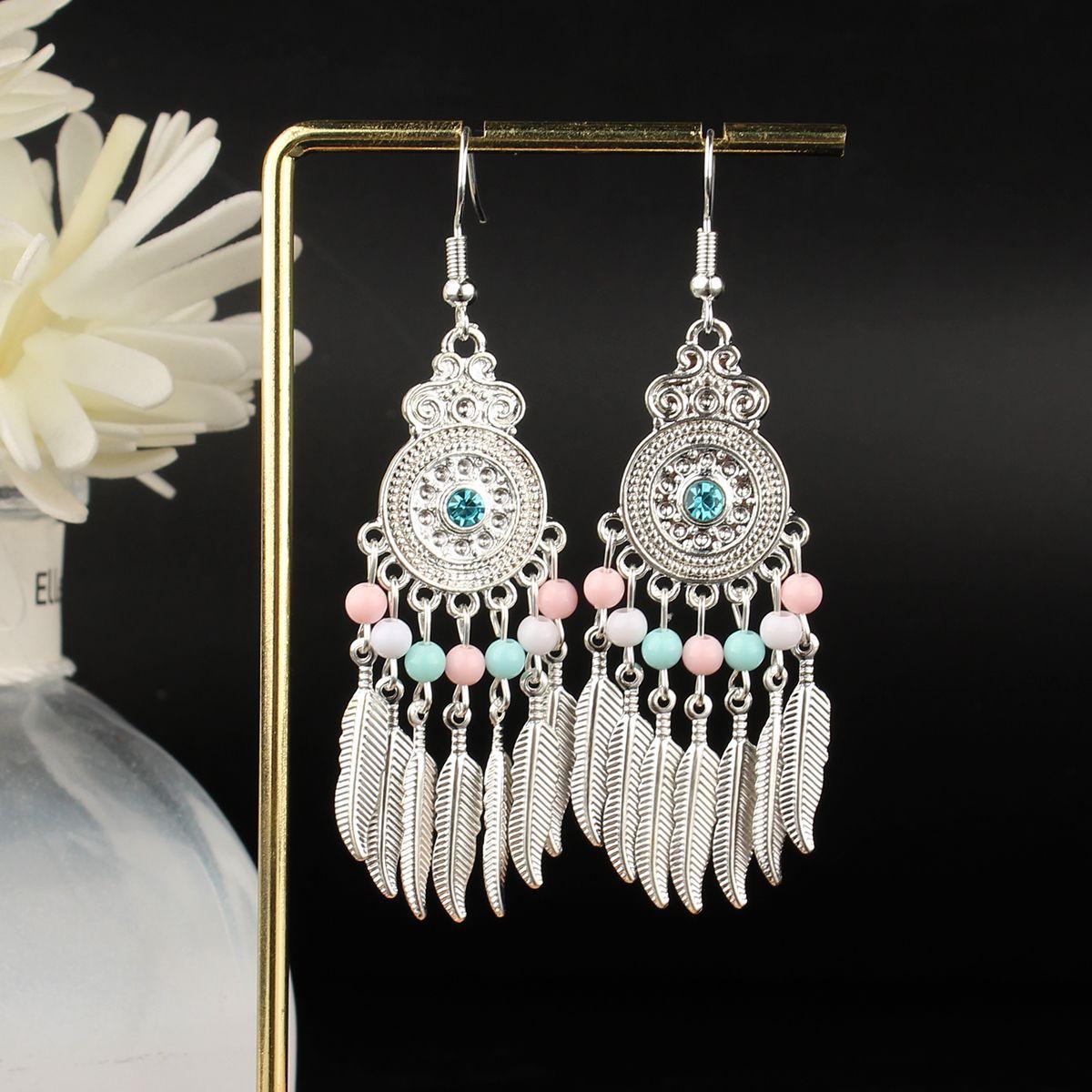 Nuevos Pendientes Étnicos Transfronterizos de Lágrima con Esmalte de Color y Flores, Pendientes Colgantes Versátiles con Borla de Aleación Vintage Bohemia