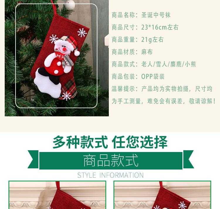 Calcetines navideños medianos de lino nuevos transfronterizos decoraciones navideñas bolsas de regalo calcetines colgantes navideños
