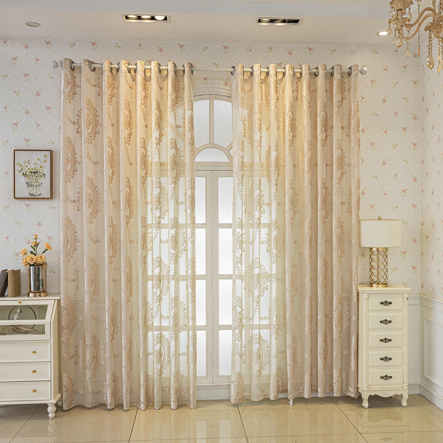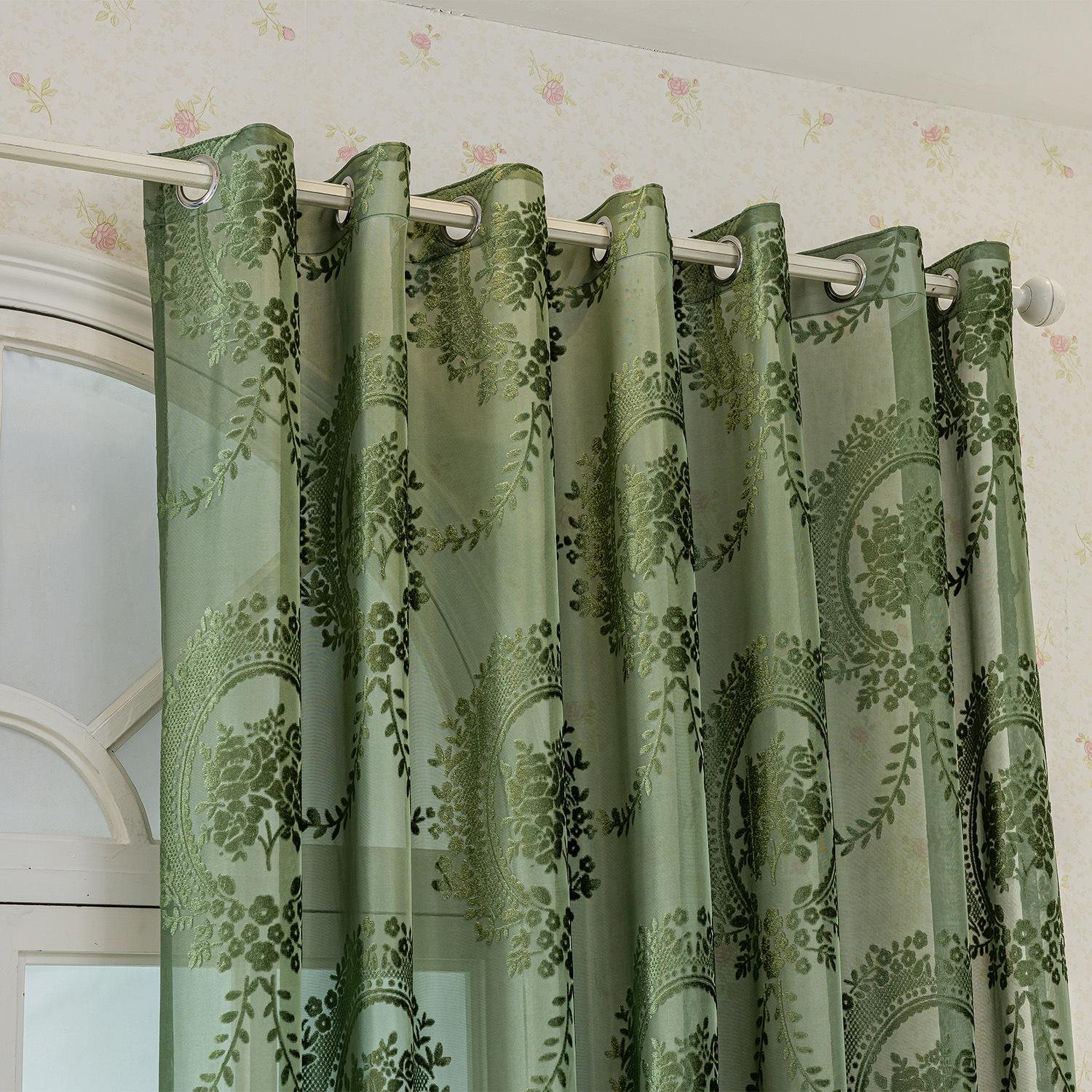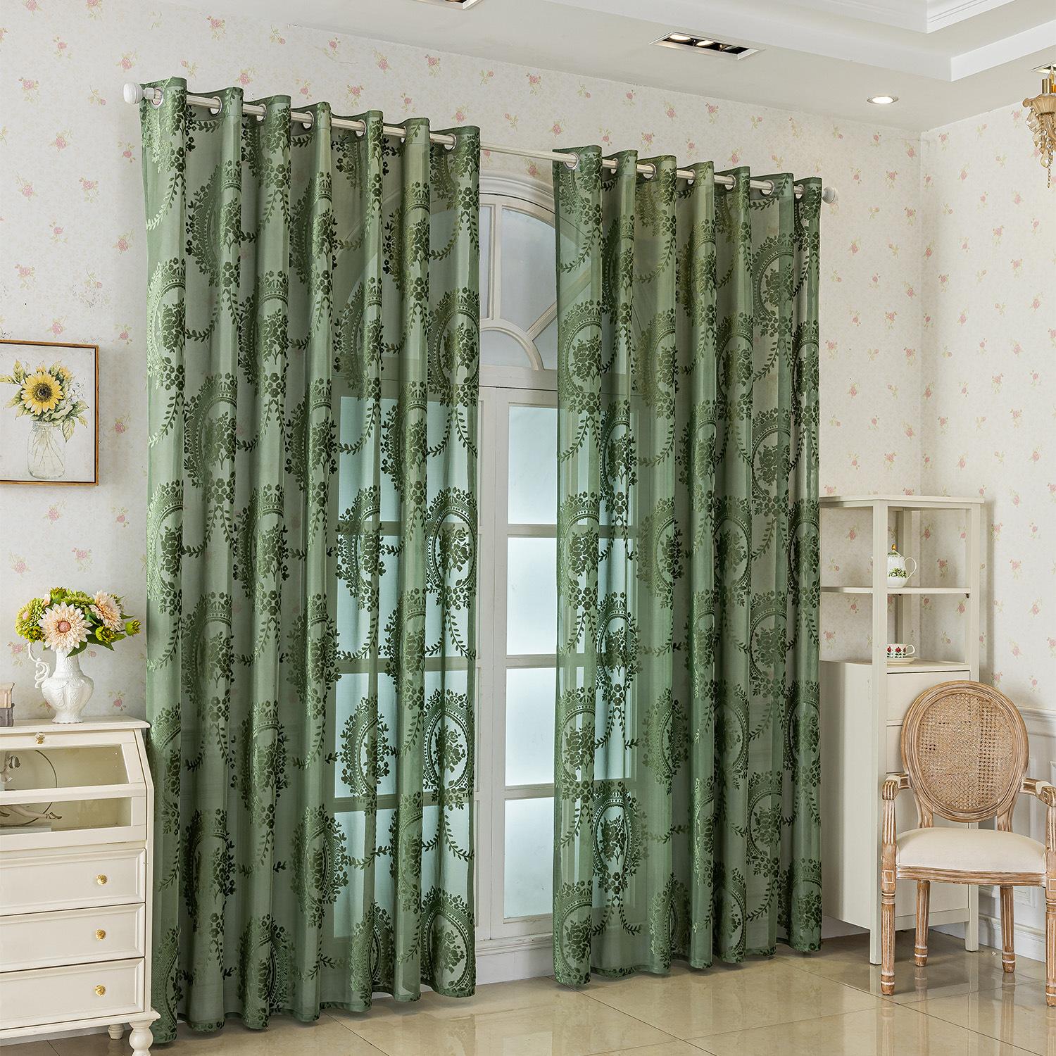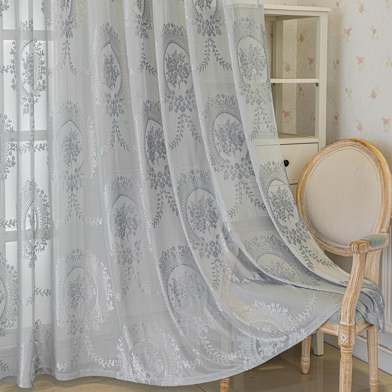Cortinas Jacquard Retro Estampadas Tridimensionales Translúcidas para Ventana Visillo Moderno Pastoral Cortinas de Gasa Sala de Estar Dormitorio Balcón Venta al por Mayor de Fábrica